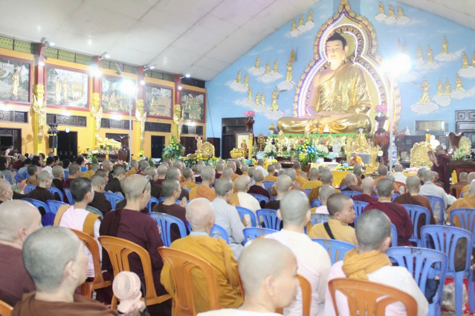 Dịp này, đại chúng cử hành cúng đèn. Nhìn ngọn đèn tỏa sáng lung linh, chúng ta hiểu rằng Phật pháp là nguồn cội của trí tuệ xóa tan tăm tối u mê tại cõi sa-bà.