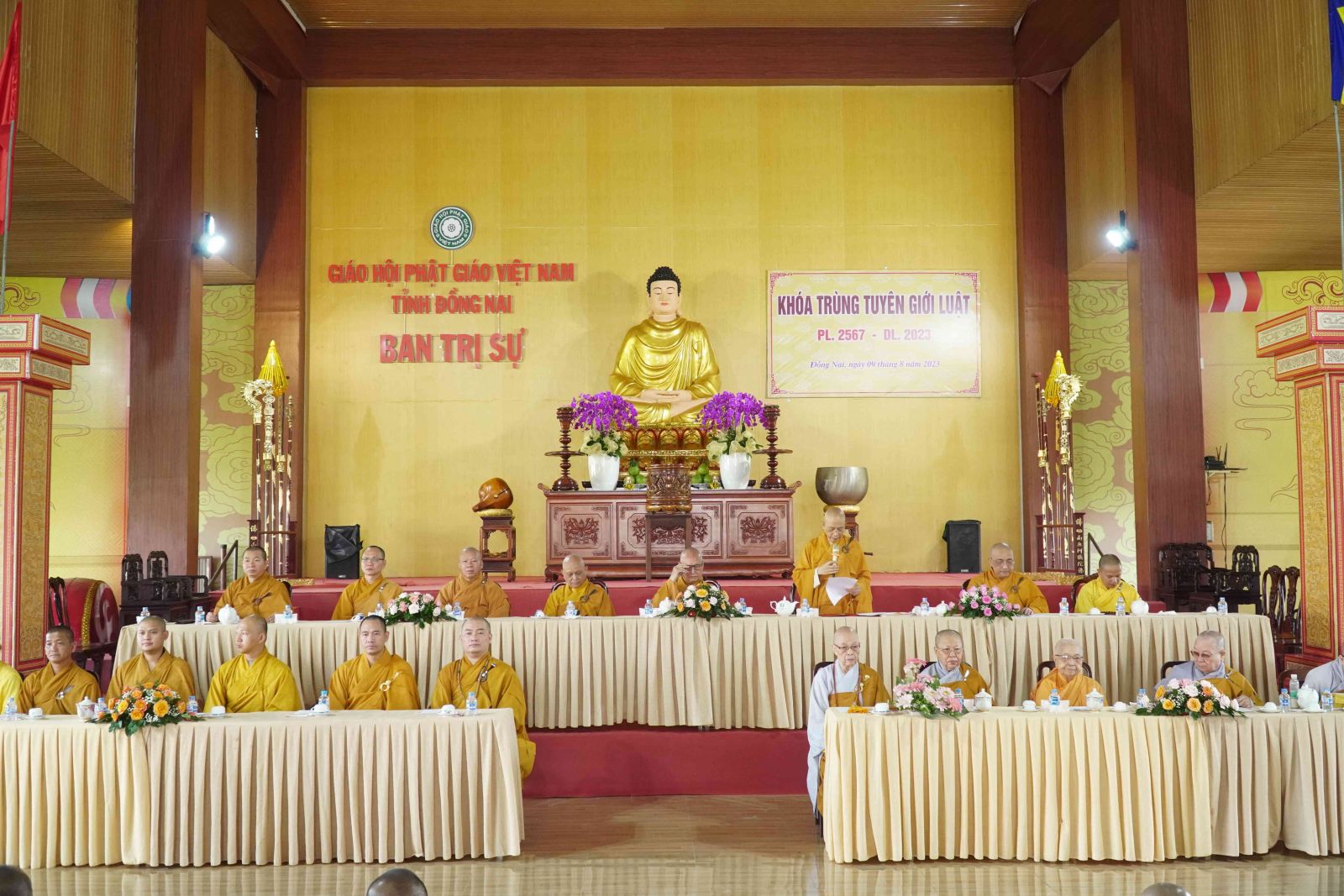 Cùng tham dự có Chư tôn đức Thường trực Ban Trị sự GHPGVN tỉnh; Chư tôn đức Quản lý các Hạ trường, Chư tôn đức Quản lý các Cơ sở Trường TCPH tỉnh Đồng Nai và cùng với hơn 600 Tăng Ni đăng ký tham gia Khóa Trùng tuyên Giới Luật PL. 2567.