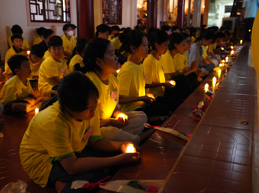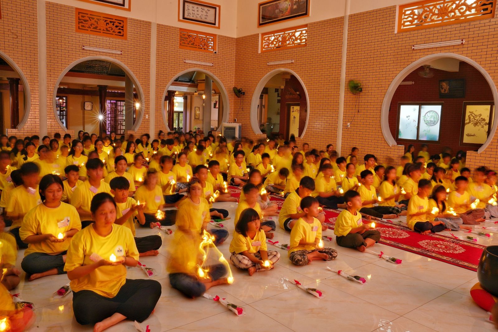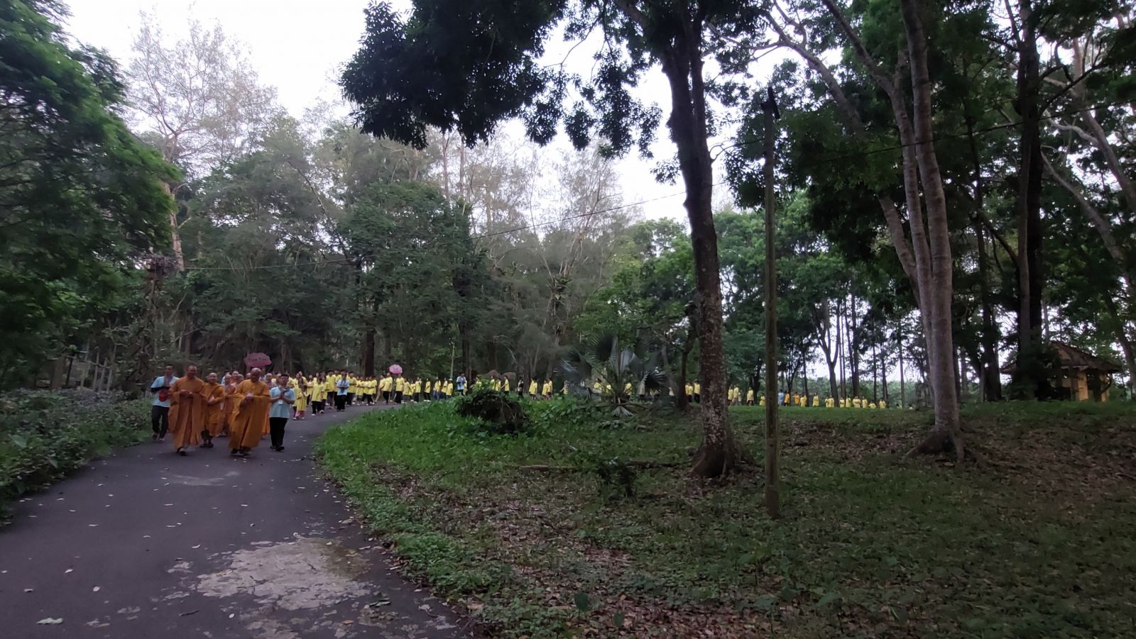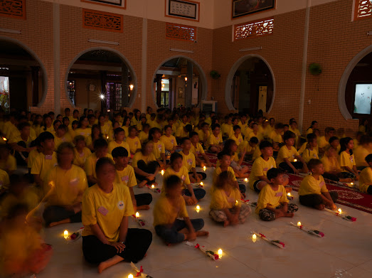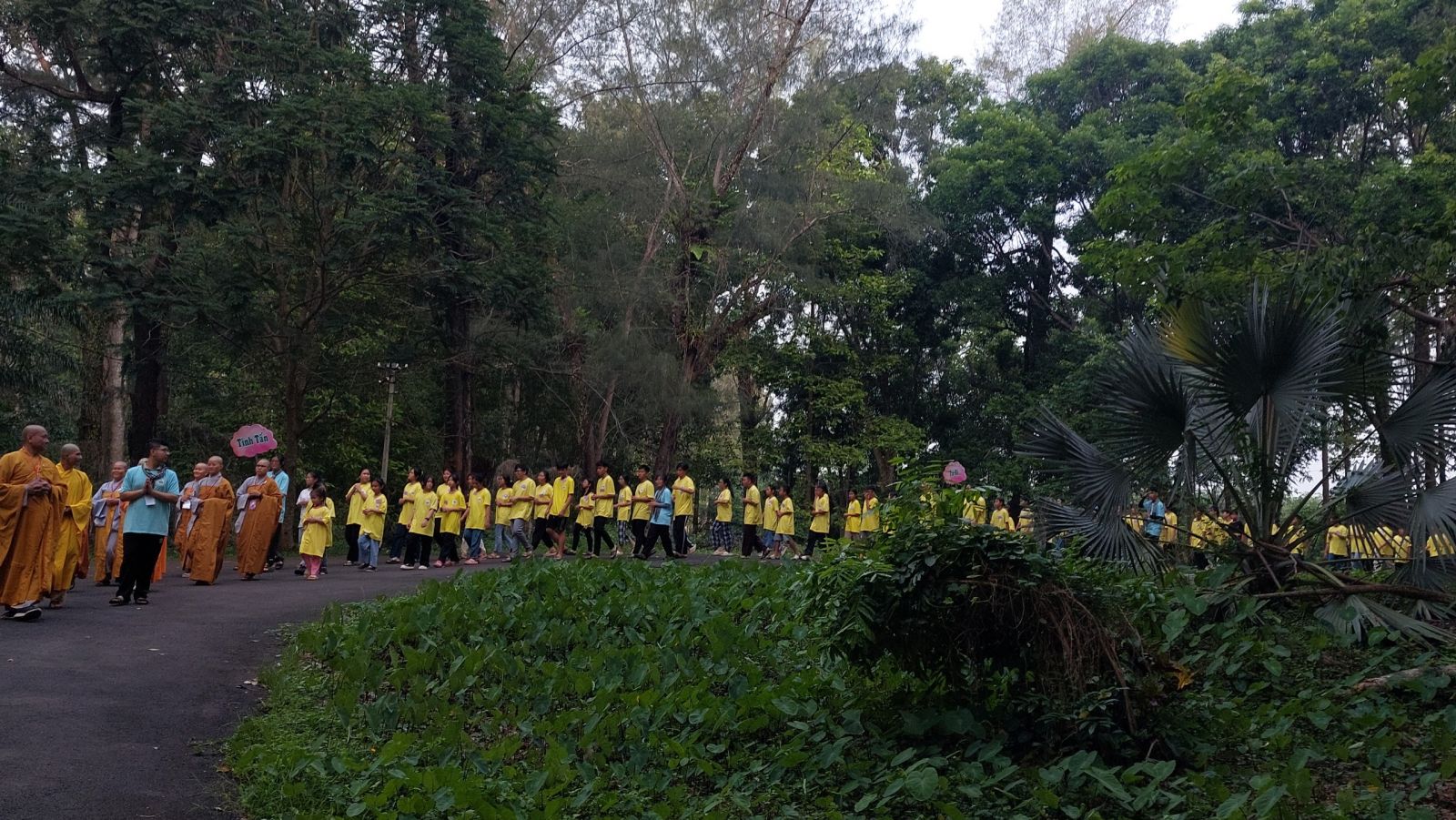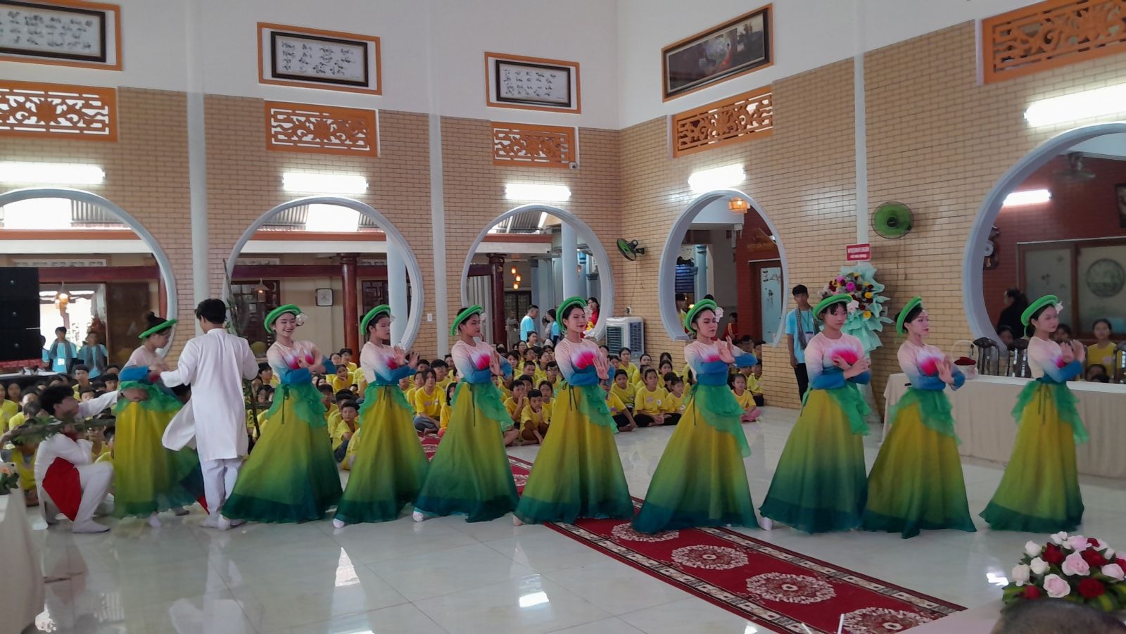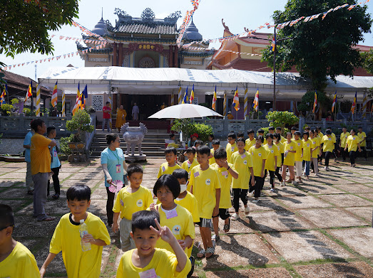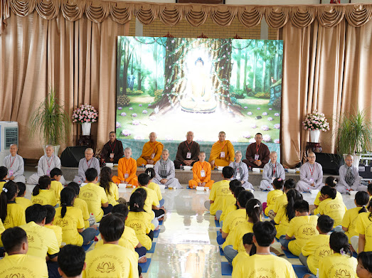 Các em cùng cất cao tiếng hát vui tươi để cung tiễn Chư Tôn Thiền Đức hồi quy khách đường trong niềm hỷ lạc. Các trại sinh
