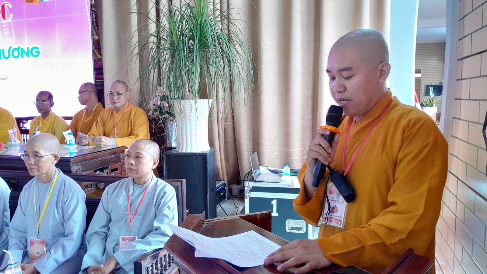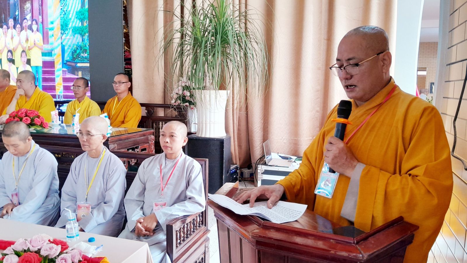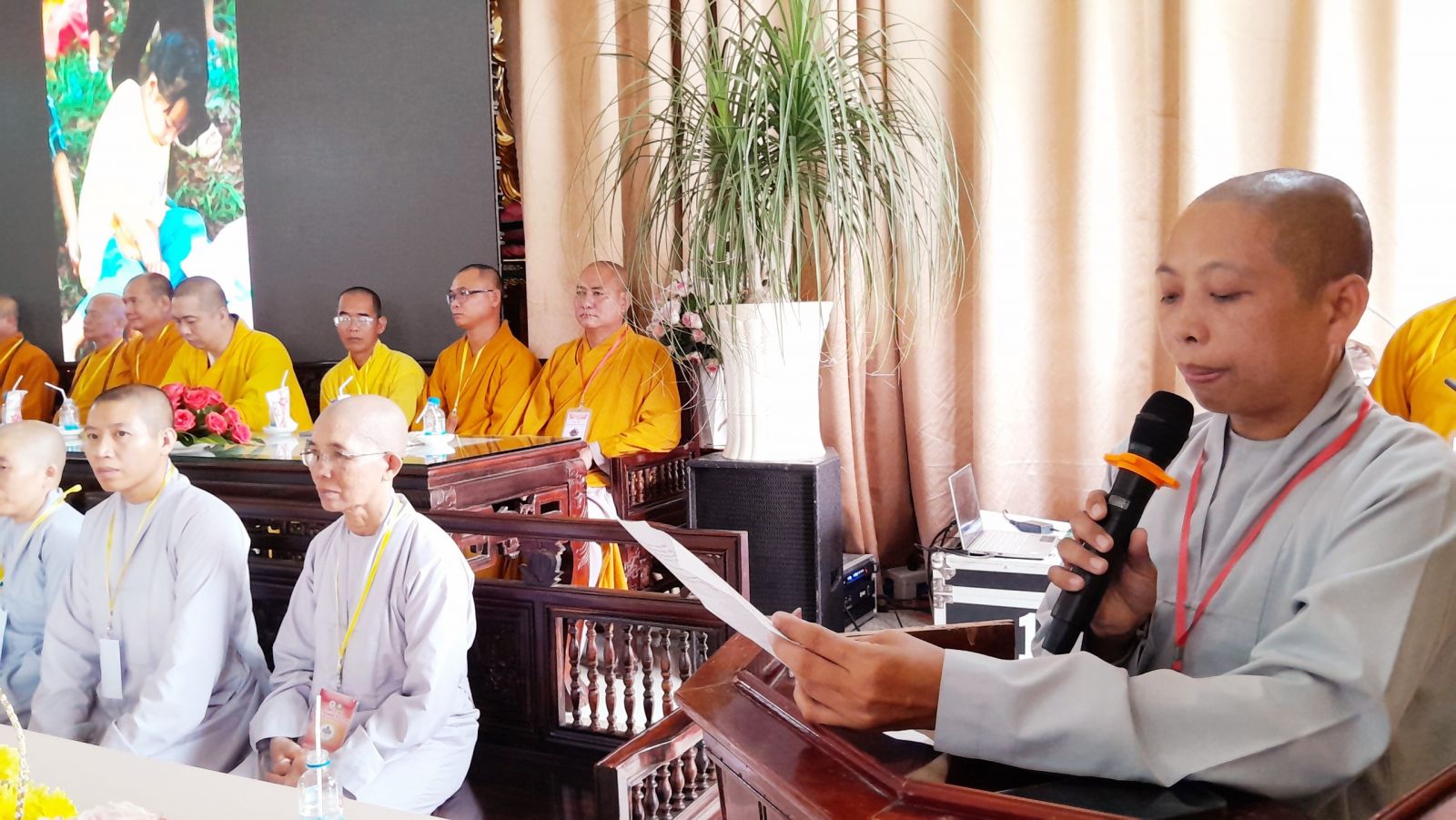 Để kết thúc buổi khai mạc, Sư cô Thích Nữ Tuệ Ý, thay mặt BTC đọc lời cảm tạ tri ân đến tất cả Chư Tôn Đức đã ủng hộ, các chùa đã hỗ trợ ẩm thực trong 3 ngày, các ban: thông tin, y tế, ban trật tự, vệ sinh...đặc biệt là ni chúng và Phật tử Chùa Trúc Viên, là nơi đăng cai tổ chức đã nhiệt tâm vất vả lo lắng trong những ngày qua.