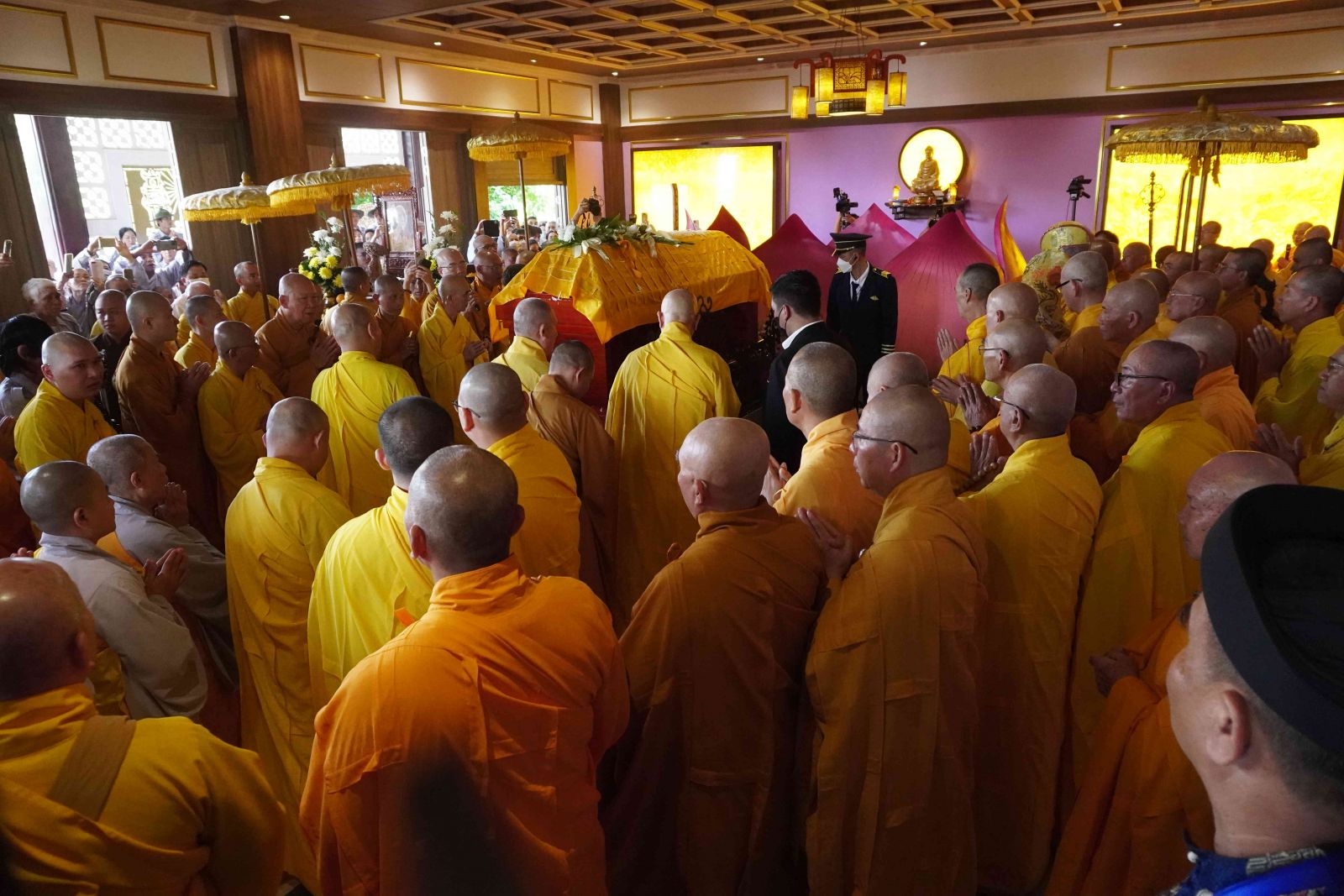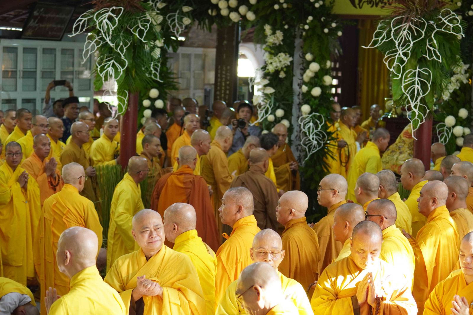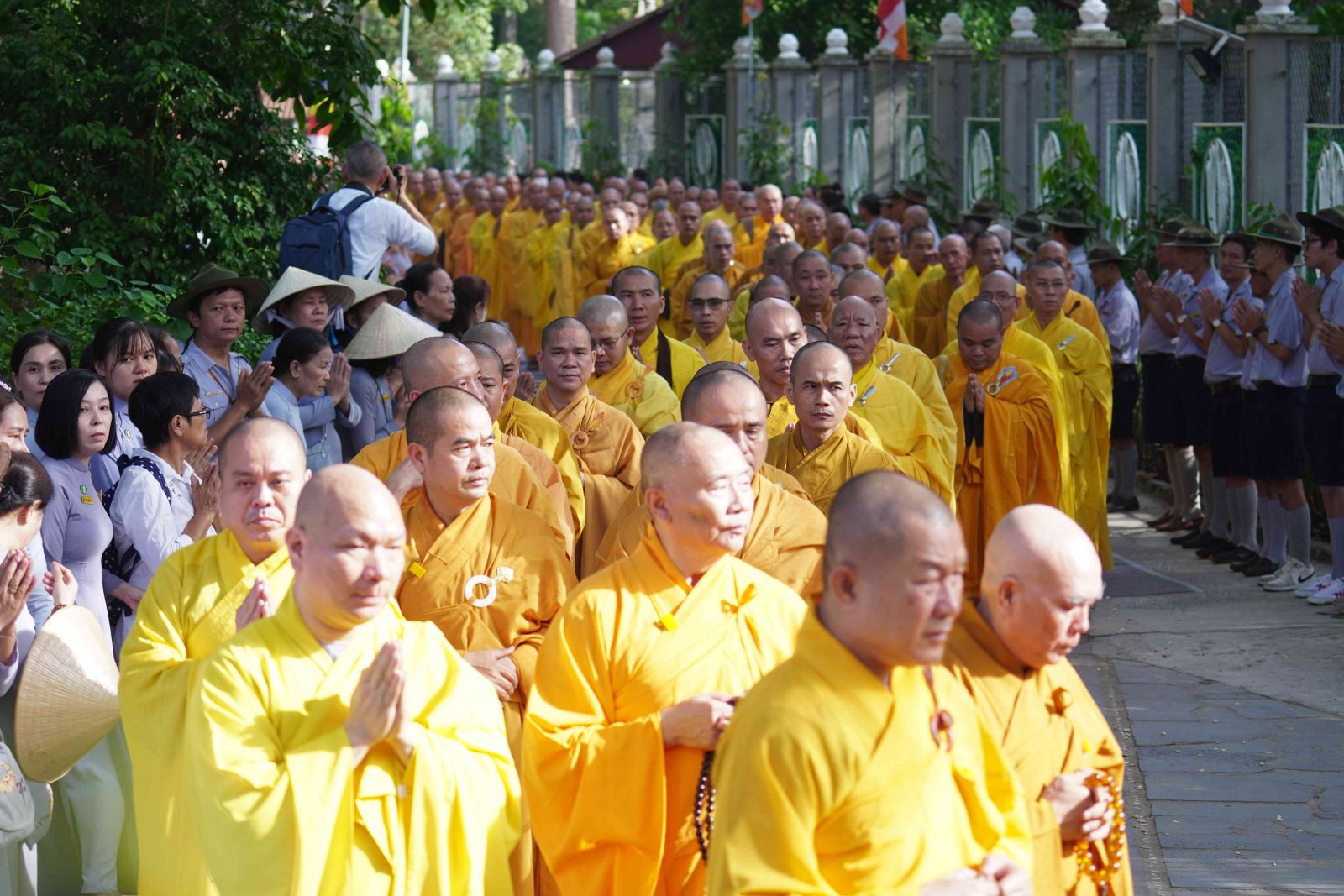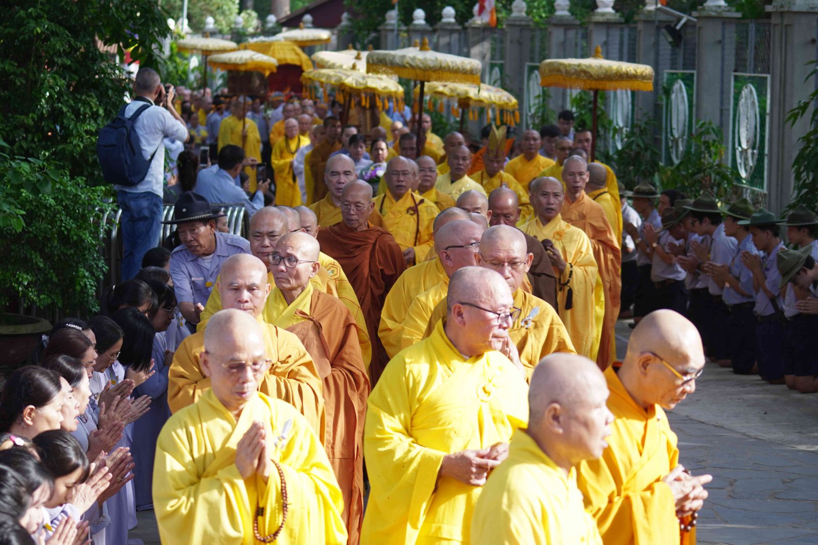 Sau lời cảm tạ, Hòa thượng Chứng minh đã làm lễ phất trần và Phụng tống kim quan Giác linh cố HT. Thích Tuệ Sỹ thăng thượng giá lễ trà tỳ trong tiếng trống trầm hùng, Tăng Ni Phật tử chí thành đảnh lễ cung tiễn Giác linh Ngài cao đăng Phật quốc.
