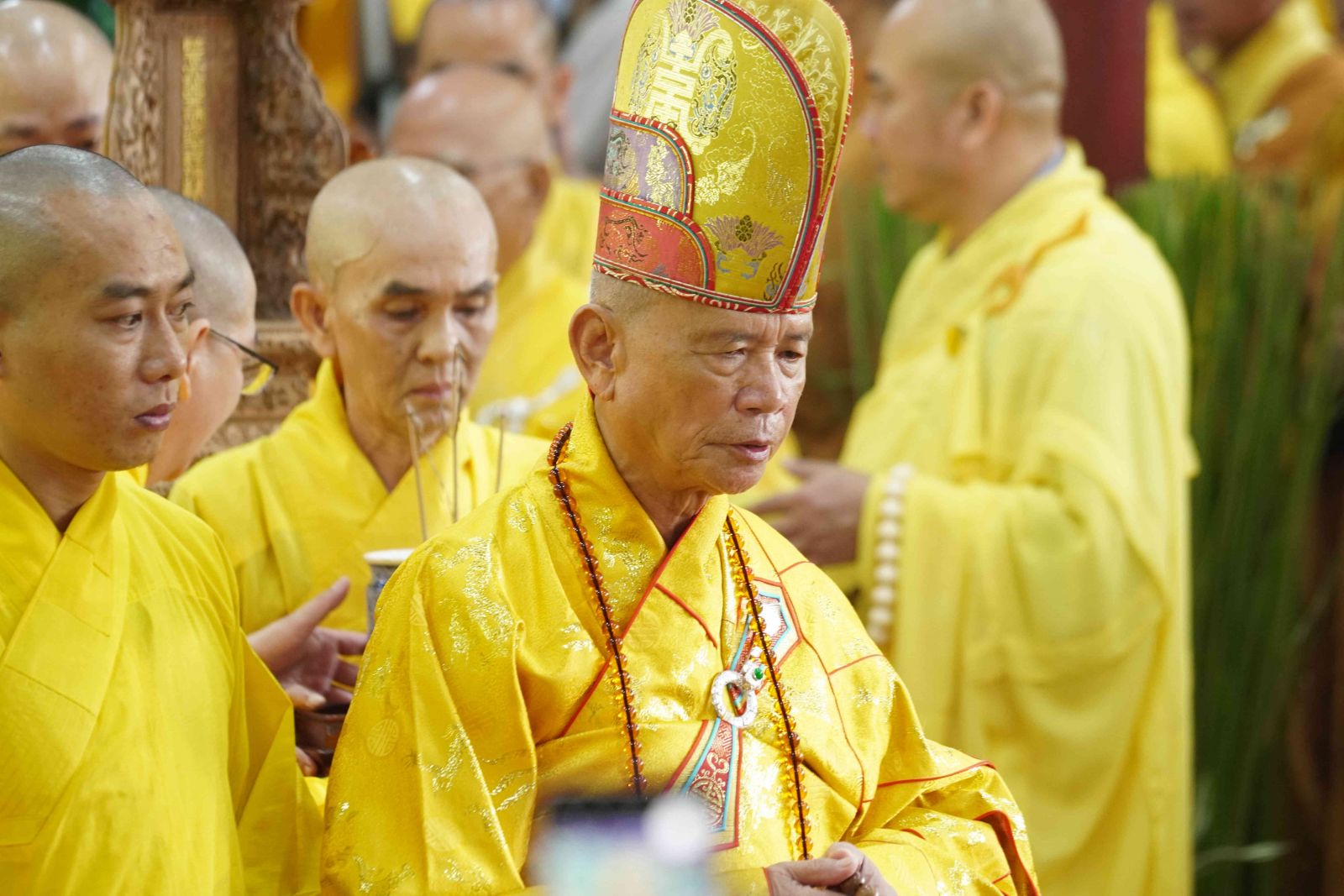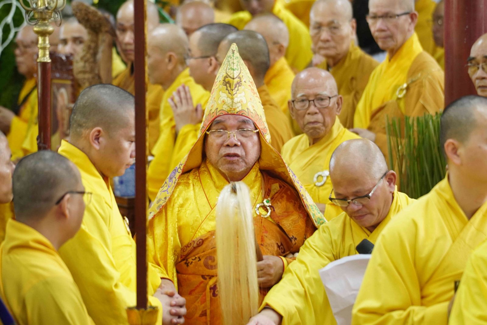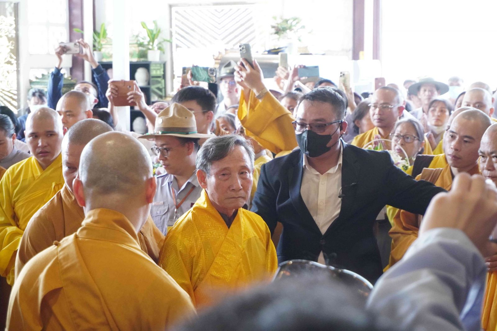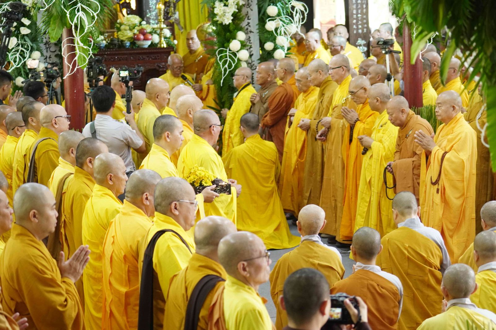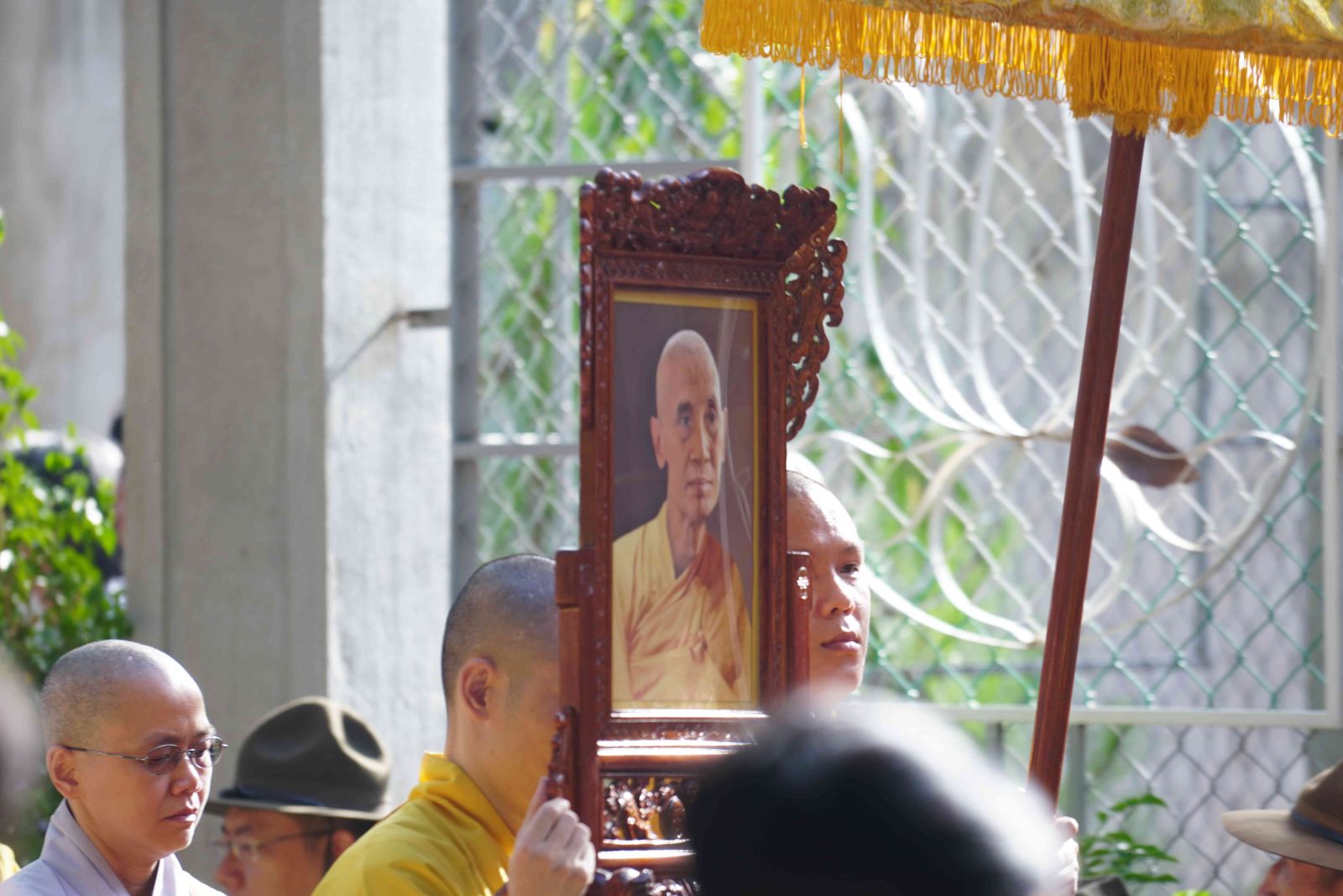 Sau lời cảm tạ, Hòa thượng Chứng minh đã làm lễ phất trần và Phụng tống kim quan Giác linh cố HT. Thích Tuệ Sỹ thăng thượng giá lễ trà tỳ trong tiếng trống trầm hùng, Tăng Ni Phật tử chí thành đảnh lễ cung tiễn Giác linh Ngài cao đăng Phật quốc.