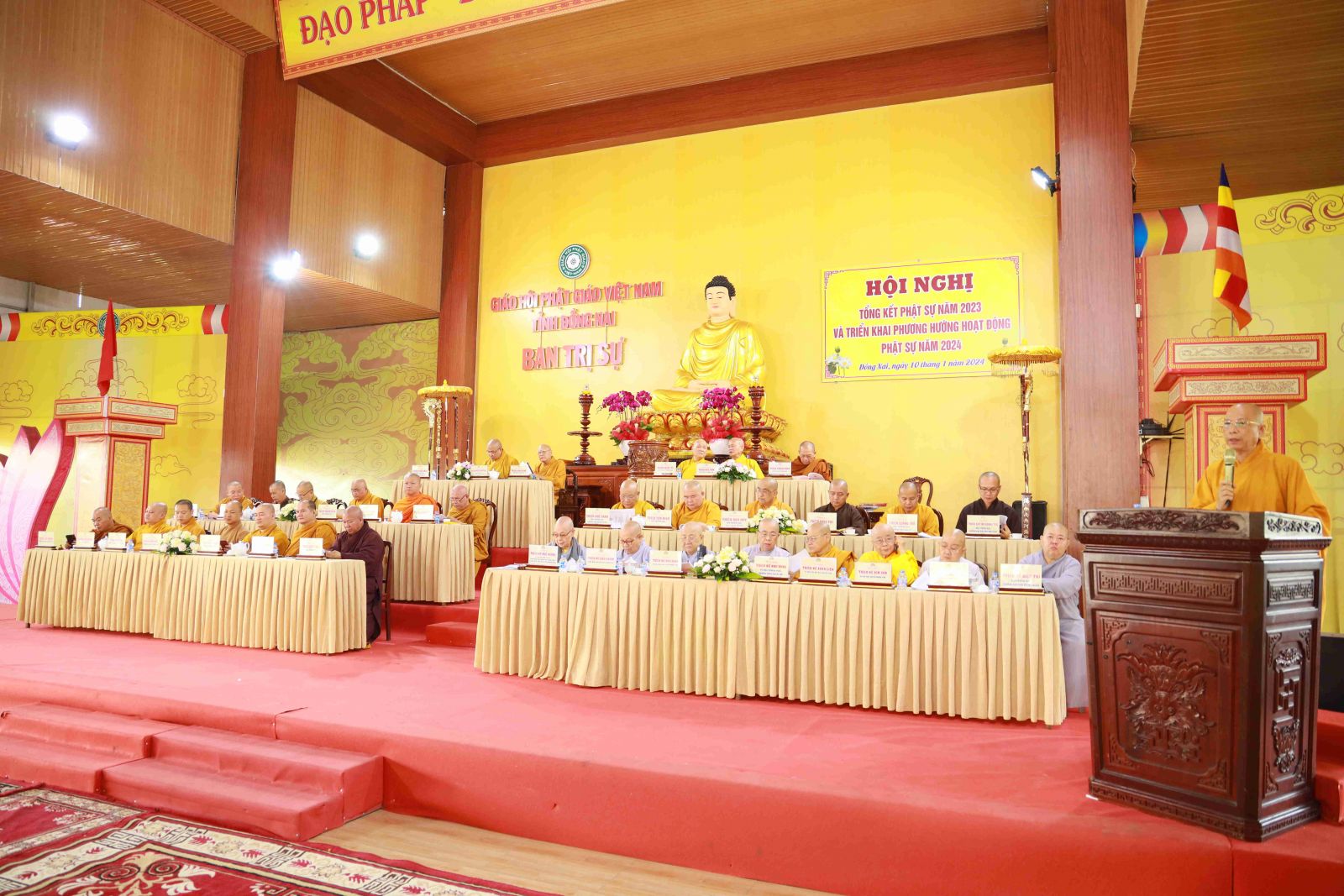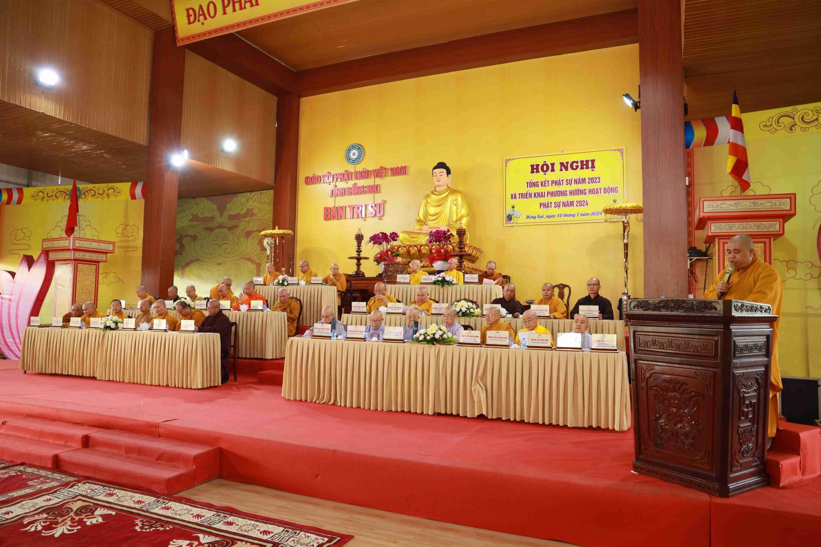Phát biểu khai mạc hội nghị, TT Thích Huệ Khai nhấn mạnh năm 2023 đã khép lại những Phật sự thành tựu, bên cạnh đó vẫn còn những tồn đọng hạn chế. Nhờ sự đoàn kết của toàn tỉnh, các hoạt động Phật sự thành công tốt đẹp, nổi bật nhất là công tác từ thiện xã hội đạt trên 153 tỷ đồng. Thượng tọa trưởng ban mong chư tôn đức Tăng Ni Phật tử đoàn kết hòa hợp trong các công tác để chung tay đưa Phật giáo tỉnh nhà ngày càng phát triển.