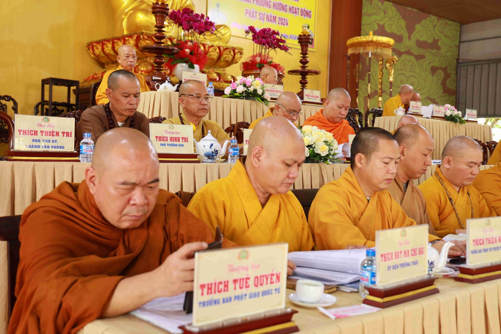 Phương hướng hoạt động Phật sự 2024, về mặt hành chính tổ chức và 12 ban chuyên môn, ban trị sự kêu gọi Tăng Ni Phật tử nỗ lực tu học, phụng sự, chấp hành tốt pháp luật nhà nước.