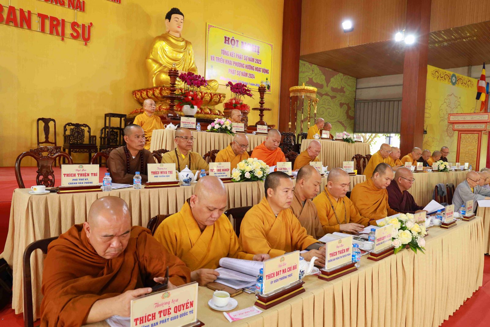 Báo cáo hoạt động Phật sự 2023, ĐĐ. Thích Thiện Trí – Phó thư ký, Chánh Văn phòng Ban Trị sự tỉnh đã tóm tắt sơ lược các Phật sự đã đạt thành quả: Phổ biến triển khai các văn bản của T.ƯGH. Sau đại hội, kiện toàn nhân sự toàn tỉnh 521 vị tôn túc giáo phẩm. Kiện toàn nhân sự các ban chuyên môn, tổ chức sinh hoạt hội nghị hành chính giáo hội.