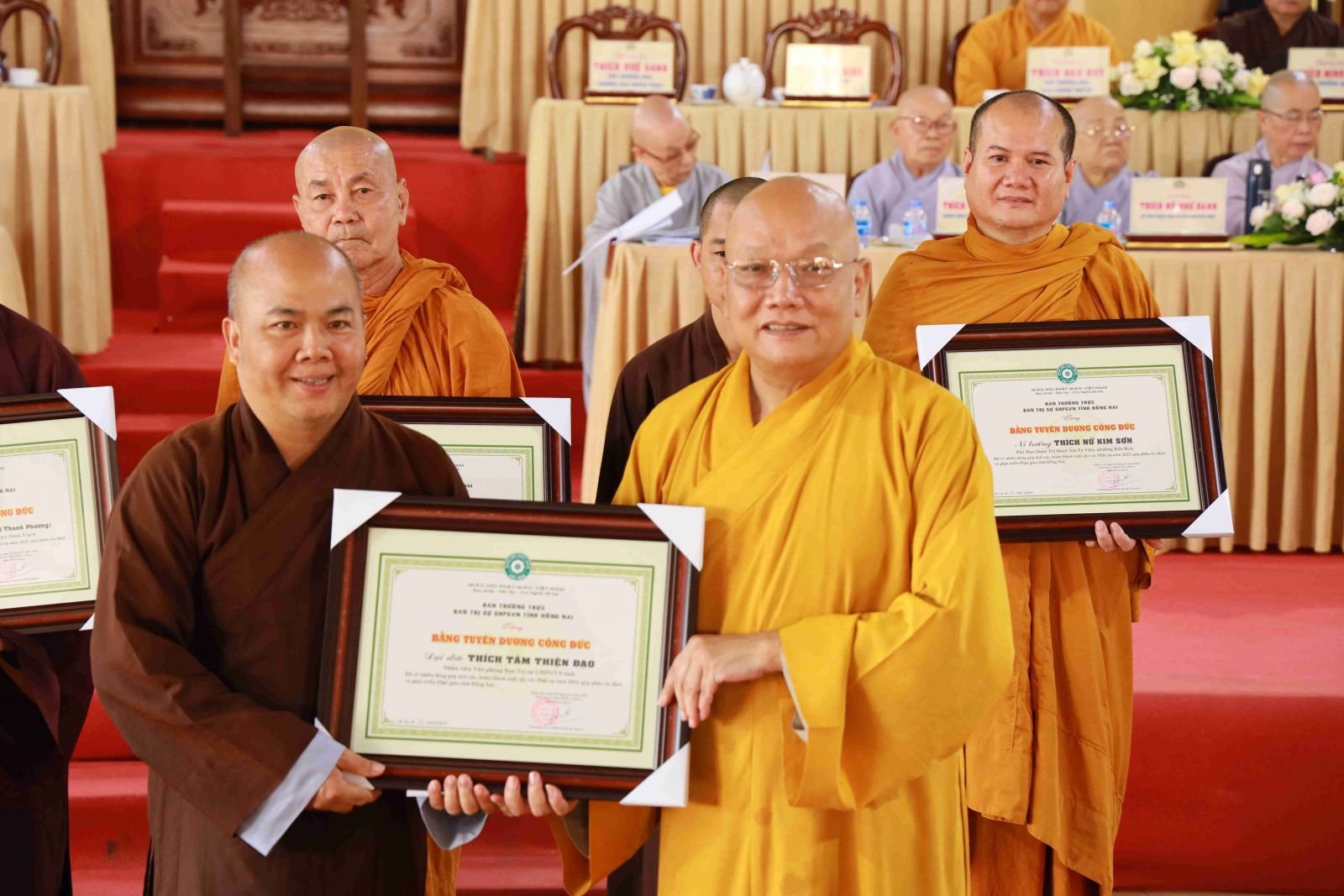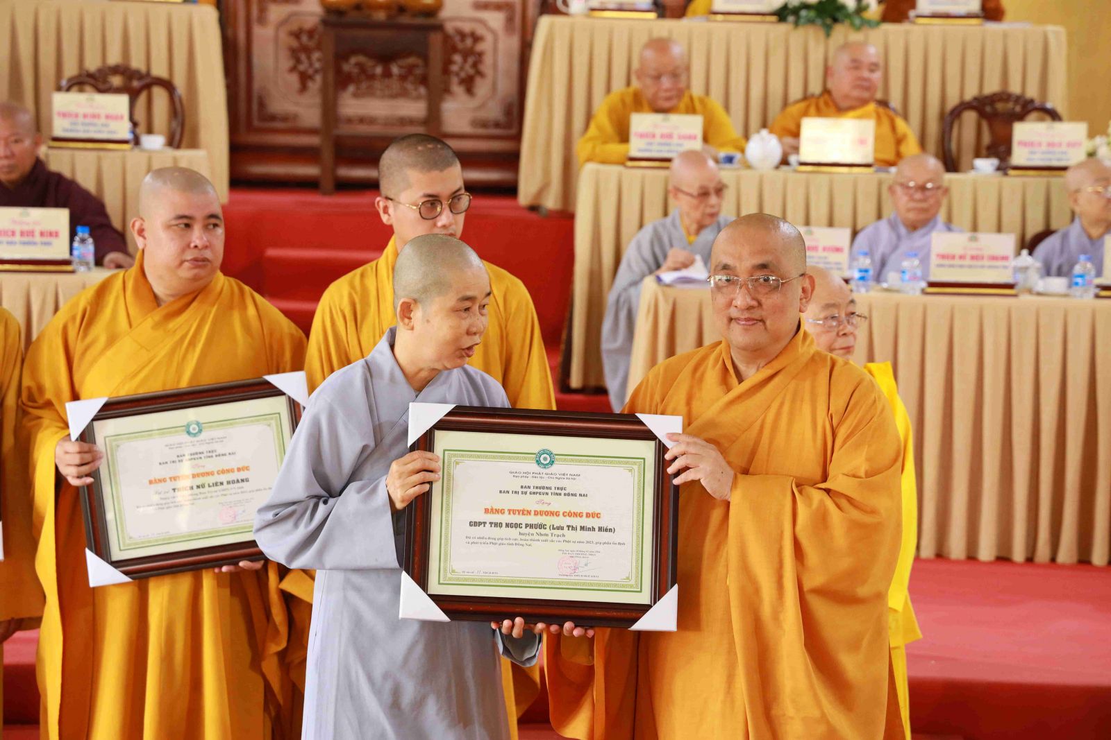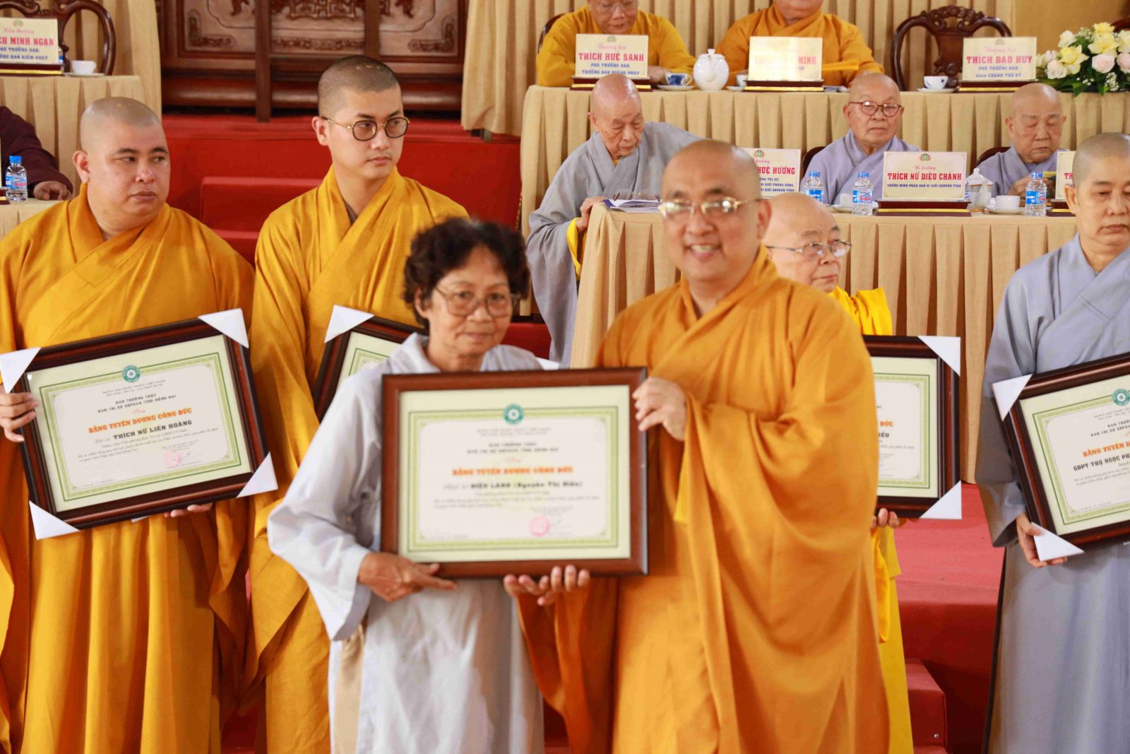 Tại hội nghị, TT. Thích Phước Nguyên, trao tặng bằng tuyên dương công đức của T.ƯGH đến 2 tập thể, 21 cá nhân đã có nhiều đóng góp cho GH. Ban trị sự tỉnh tặng bằng tuyên dương công đức đến 2 tập thể, 42 cá nhân nỗ lực phụng sự. Dip này, BTS tặng 80 phần qùa từ thiện tới UBMTTQ P Hiệp Hòa