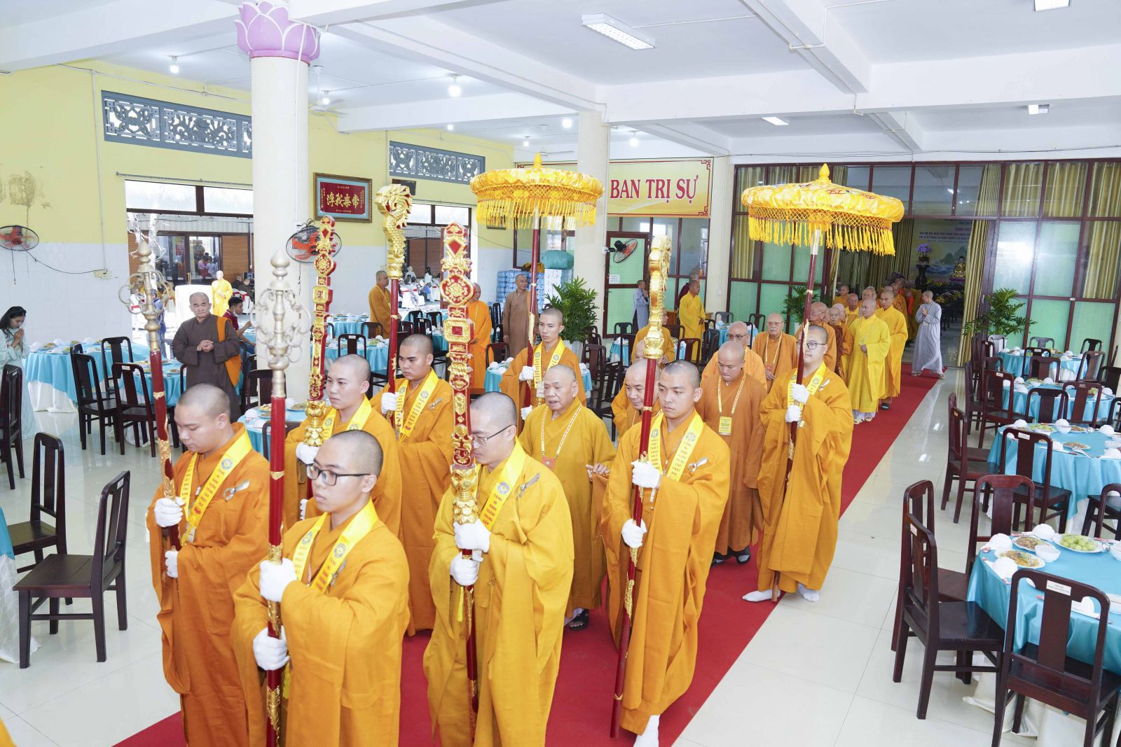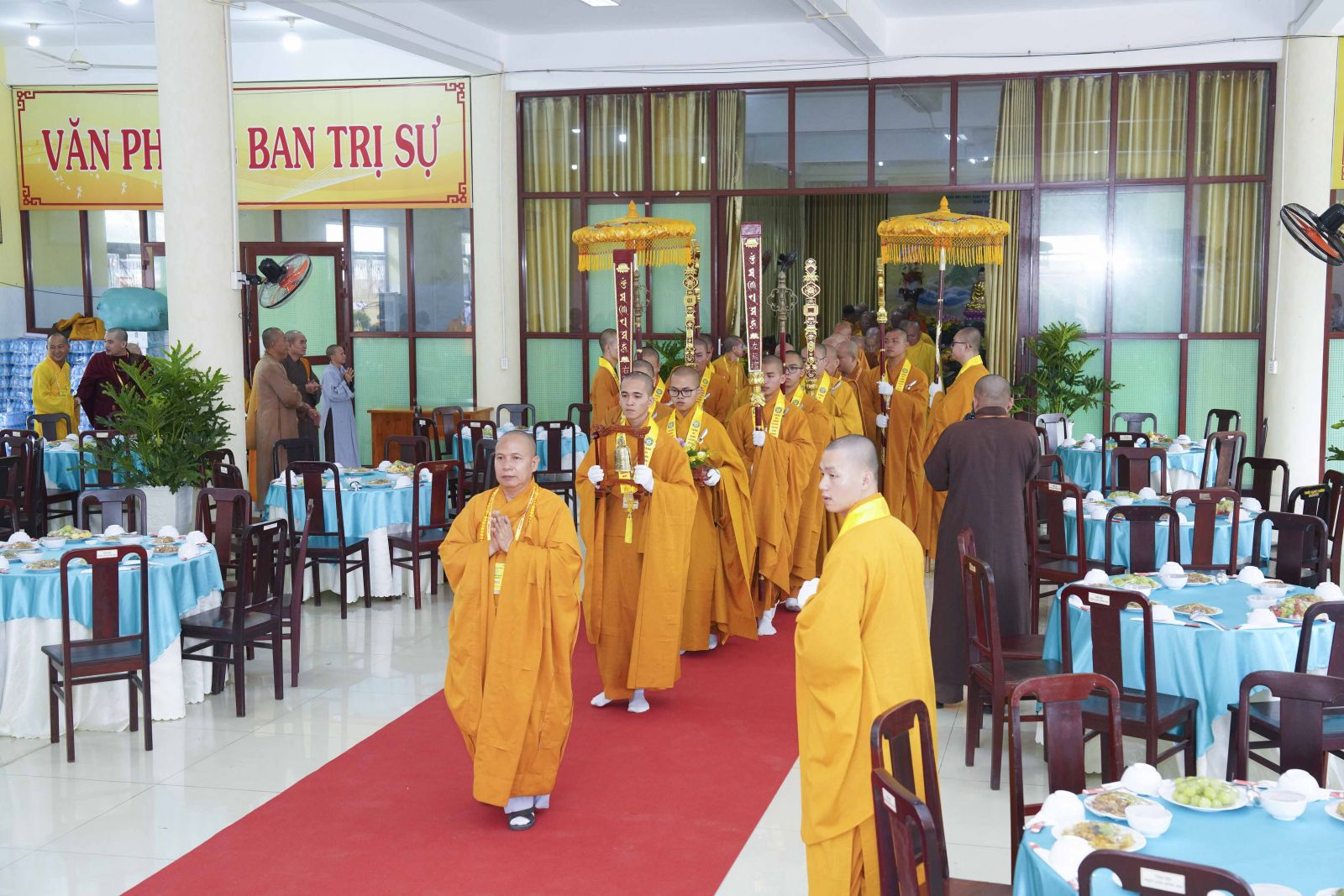 Buổi lễ có sự quang lâm chứng minh của Trưởng lão HT. Thích Thiện Pháp – Ủy viên Thường trực HĐCM, Phó Chủ tịch Thường trực HĐTS; HT. Thích Thiện Đạo – Thành viên HĐCM, Chứng minh Ban Trị sự GHPGVN tỉnh; cùng chư tôn giáo phẩm Chứng minh Ban Trị sự tỉnh; Về Ban Trị sự tỉnh có TT. Thích Huệ Khai - Ủy viên Thường trực HĐTS, Trưởng Ban Trị sự GHPGVN tỉnh, Trưởng Ban Tổ chức; HT. Thích Bửu Chánh - Ủy viên Thư ký HĐTS, Phó trưởng ban Thường trực Ban Trị sự GHPGVN tỉnh, Phó Ban Tổ chức; HT. Thích Tĩnh Cường - Ủy viên HĐTS, Phó trưởng ban Thường trực Ban Trị sự tỉnh, Phó ban Tổ chức; TT. Pháp Quyền - Ủy viên HĐTS, Phó ban kiêm Chánh Thư ký Ban Trị sự GHPGVN tỉnh; cùng chư Tôn đức Phó Ban Trị sự, Trưởng các Ban ngành chuyên môn và sự tham dự của chư Tăng Ni các tự viện trong tỉnh cùng đông đảo quý Phật tử gần xa. Không gian buổi lễ được trang hoàng trang nghiêm, thể hiện rõ nét văn hóa Phật giáo truyền thống, góp phần tạo nên bầu không khí thanh tịnh, hoan hỷ và đầy ý nghĩa.