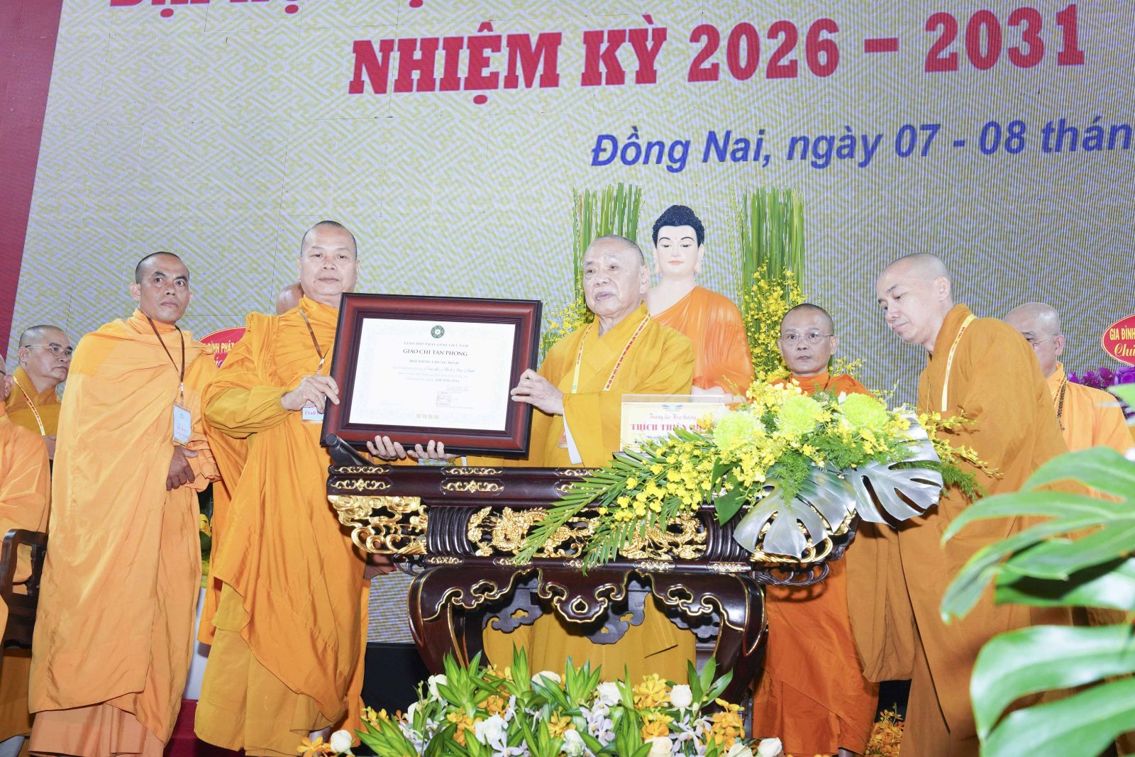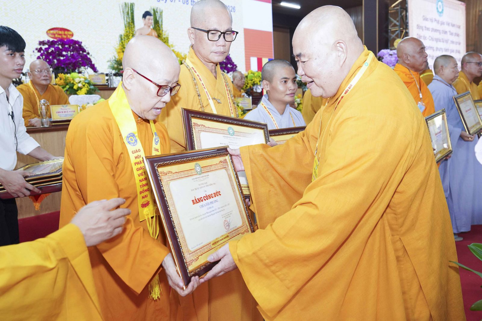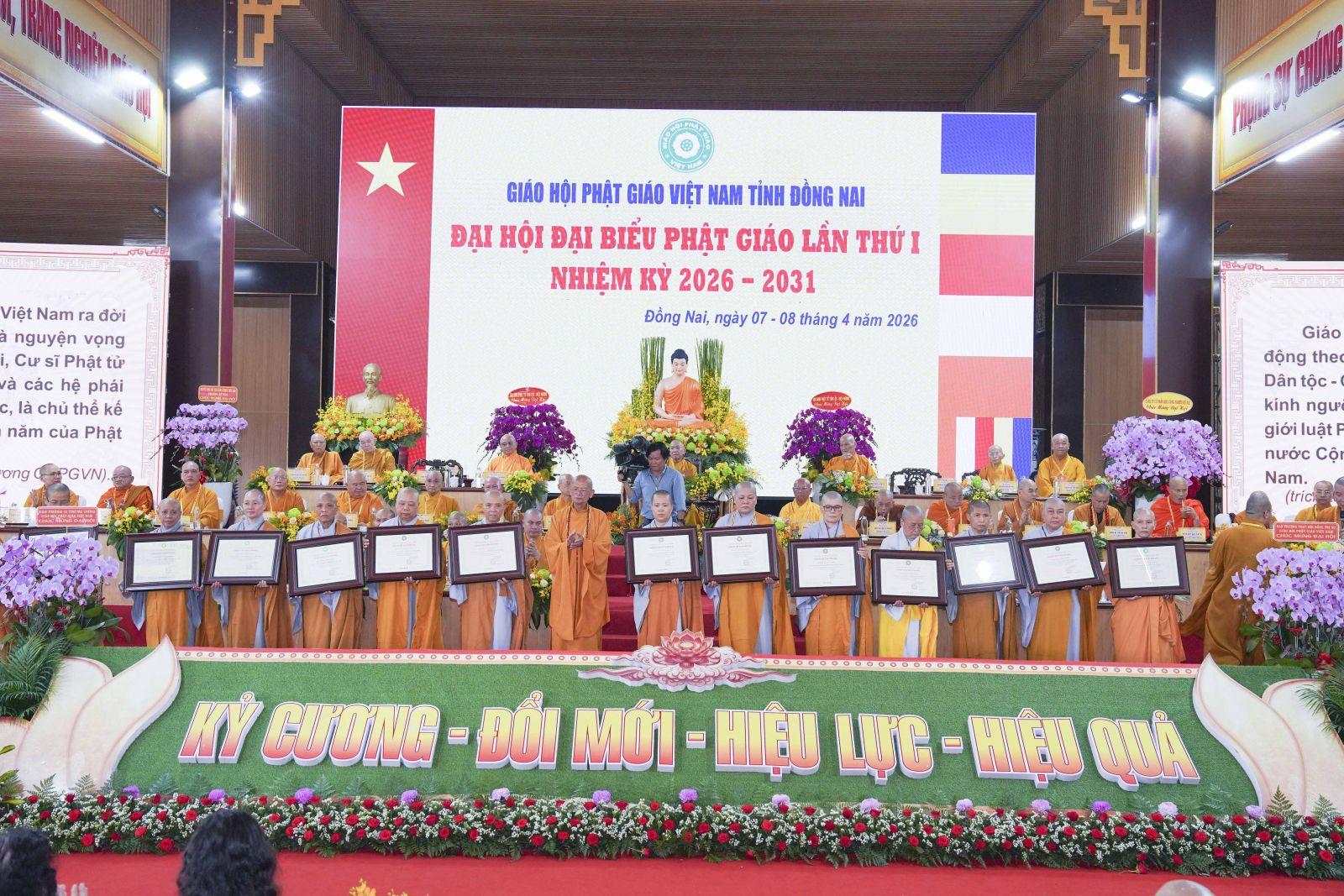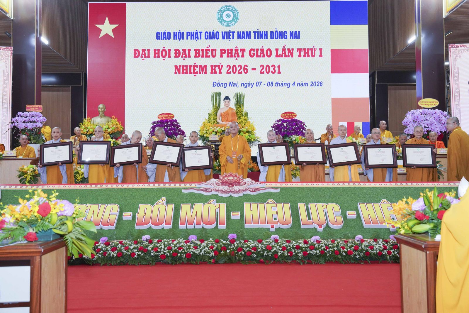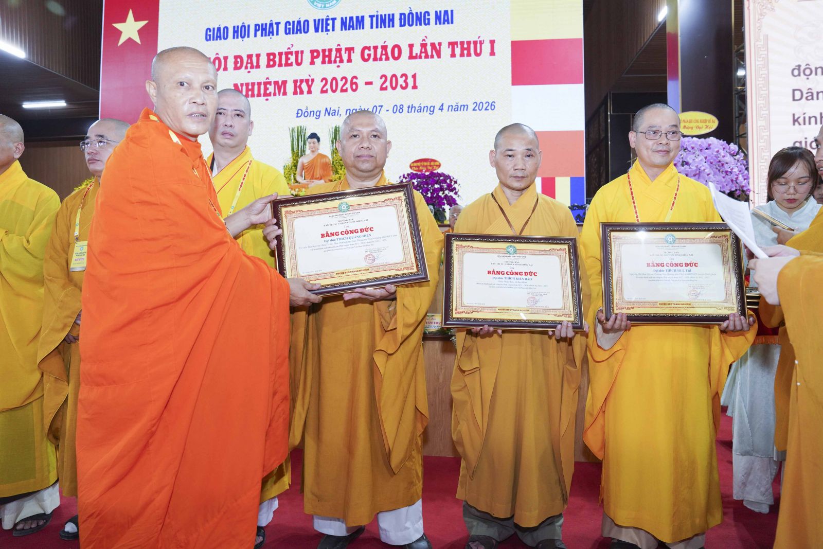 Nhân dịp này, Ban Trị sự Phật giáo tỉnh Đồng Nai cũng đã trao tặng Bằng tuyên dương công đức đến chư tôn đức đã có nhiều đóng góp thiết thực cho sự phát triển chung của Phật giáo tỉnh nhà. Những phần thưởng cao quý này là sự tri ân sâu sắc của Giáo hội đối với tinh thần phụng sự vô ngã, vị tha của chư Tăng Ni, đồng thời là nguồn động viên lớn lao để tiếp tục phát huy các giá trị tốt đẹp trong thời gian tới.