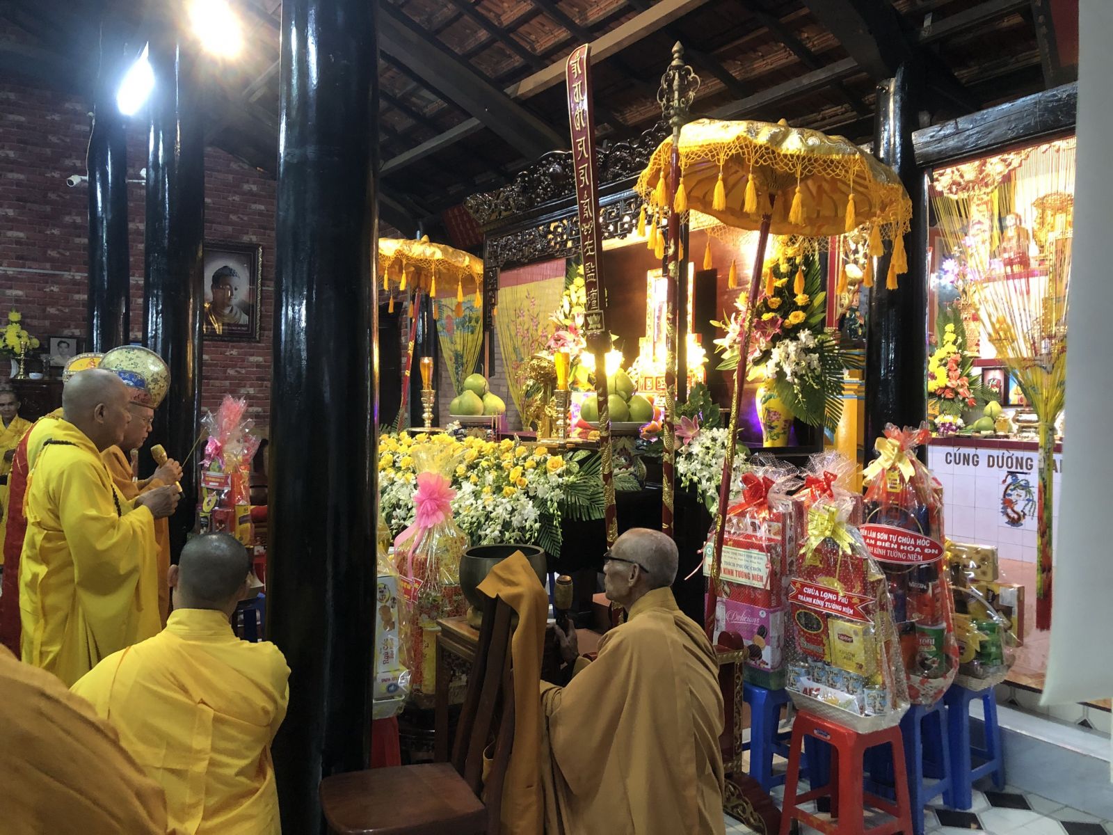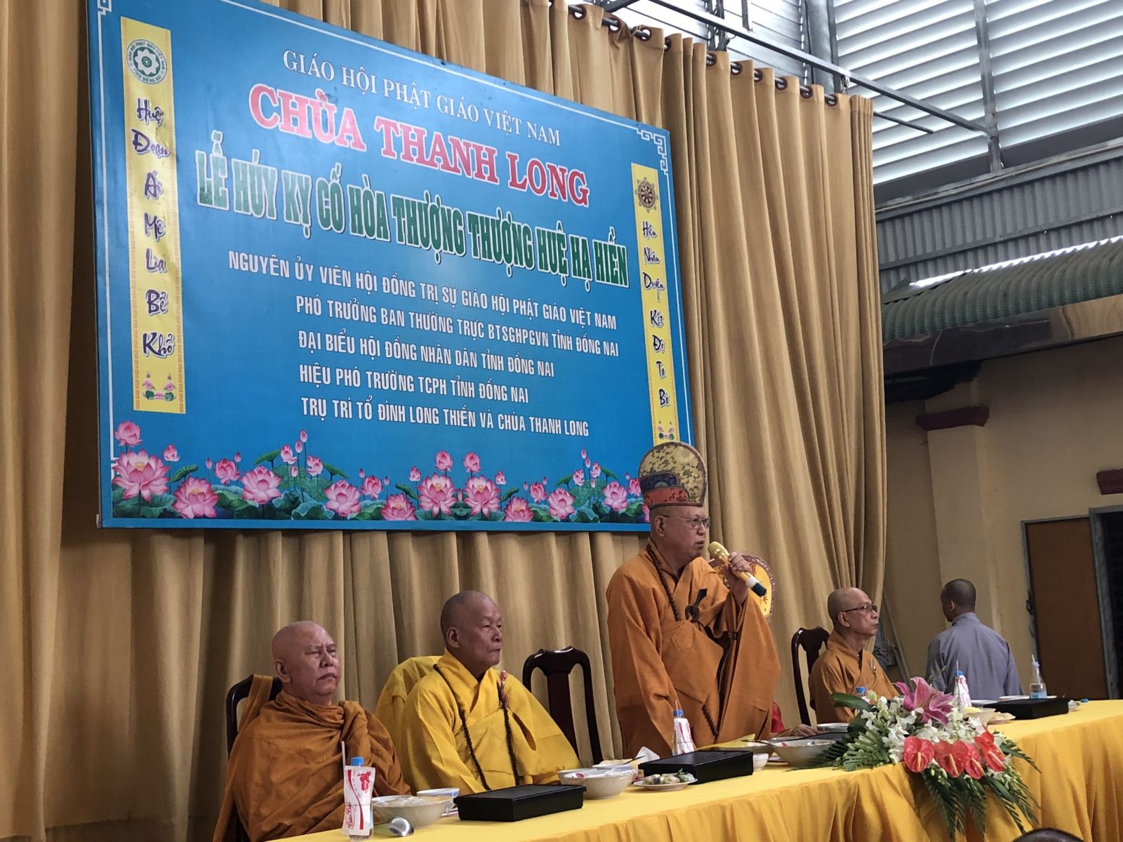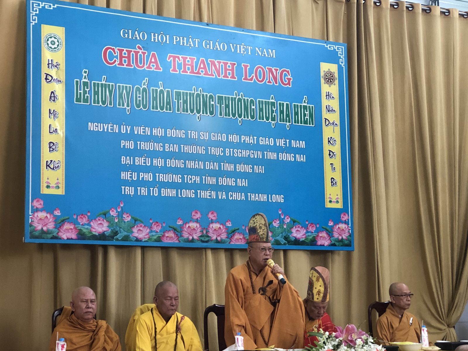NAM MÔ LONG THIỀN TỔ ĐÌNH, THANH LONG TỰ, TỪ LÂM TẾ CHÁNH TÔNG TỨ THẬP NHẤT THẾ HÚY NHẬT CAO thượng HUỆ hạ HIỀN, LƯƠNG CÔNG HÒA THƯỢNG GIÁC LINH CHỨNG MINH.