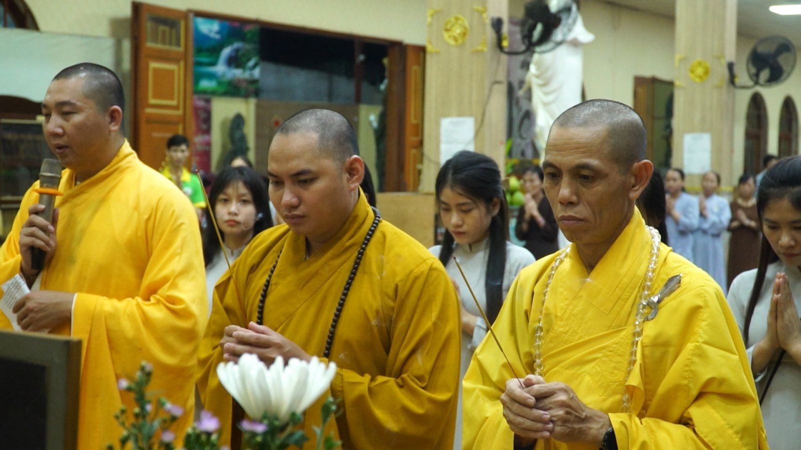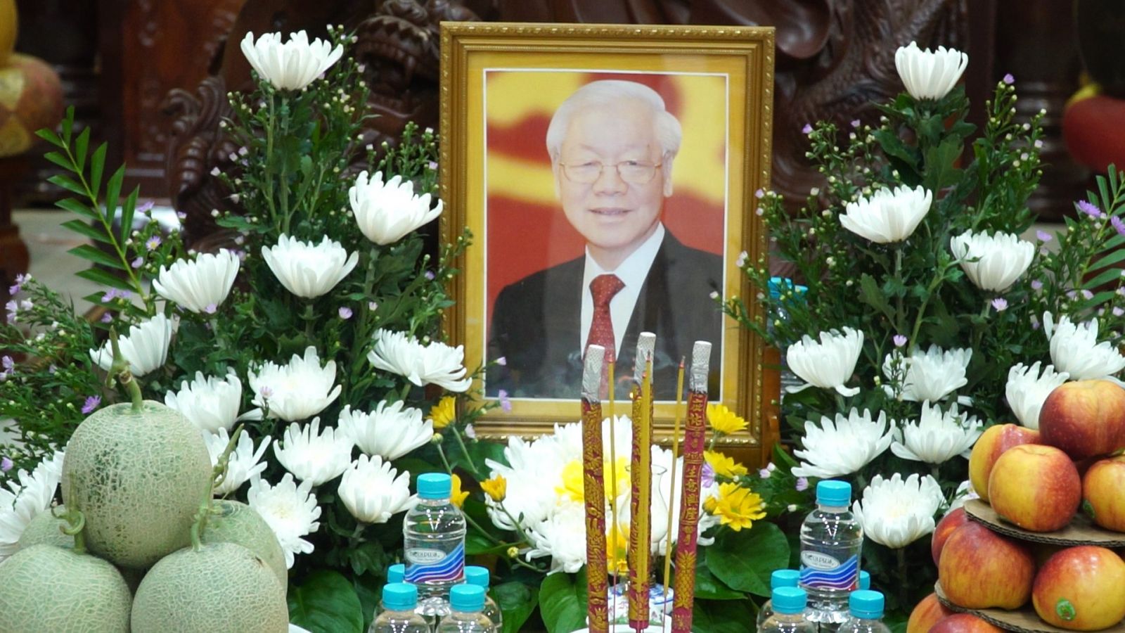 Chư tôn đức quang lâm đối trước di ảnh cố Tổng Bí Thư Nguyễn Phú Trọng tưởng niệm tỏ lòng biết ơn sâu sắc, người đã hi sinh cho tổ quốc, cho quê hương đất mẹ, cho đồng bào. Trước sự ra đi của Tổng Bí Thư Nguyễn Phú Trọng, chư tôn đức cùng nam nữ Phật tử nhất tâm cầu nguyện dâng nén tâm hương, dâng trà tưởng niệm.
