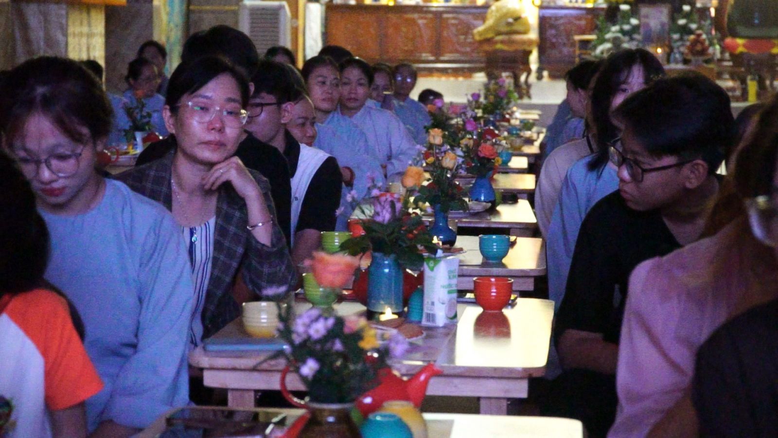Buổi Thiền trà cũng là nơi đón nhận những lời chia sẻ cảm động của Phật tử trẻ, cũng như Phật tử đã làm ông bà, cha mẹ nhớ đến công ơn sinh thành và sự hi sinh của Cha đưa mọi người chở về với cội nguồn mái ấm gia đình.