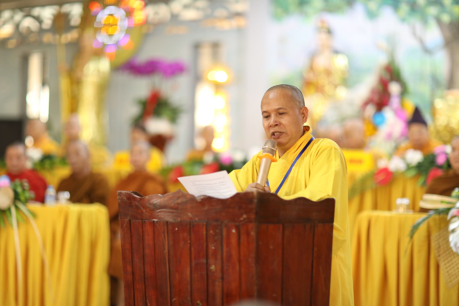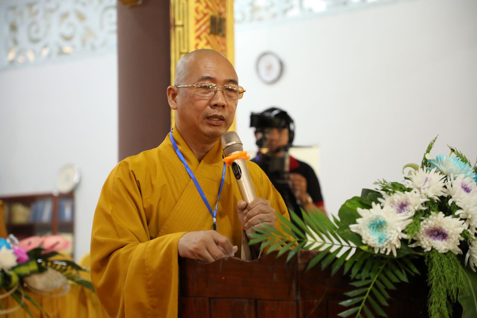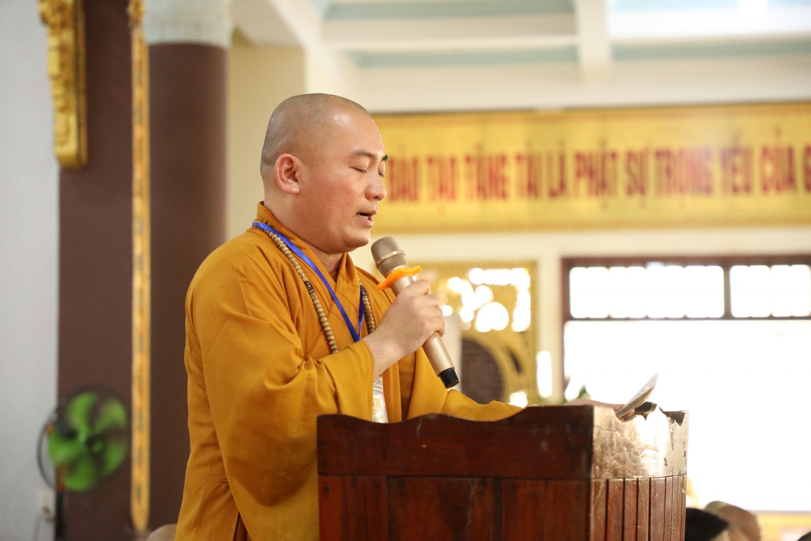 Tiếp theo buổi lễ, TT. Thích Quảng Trí đã báo cáo tổng kết Khóa IX và báo cáo kết quả tuyển sinh Khóa XI của trường TCPH tỉnh Đồng Nai.
