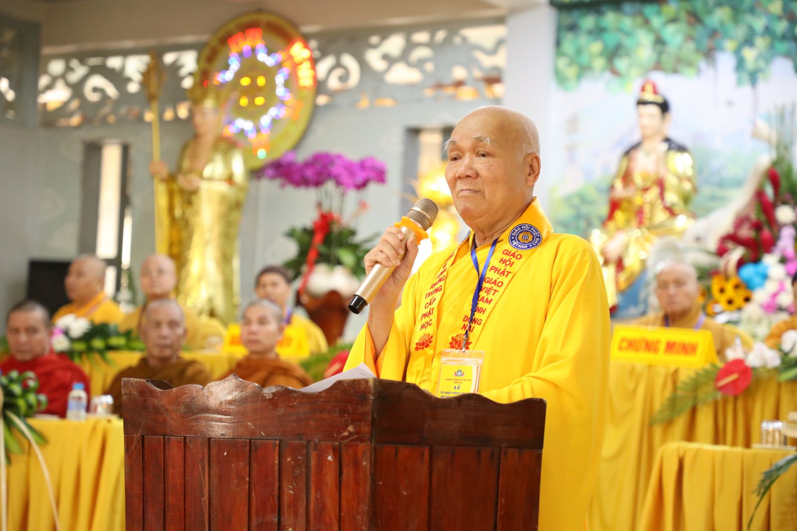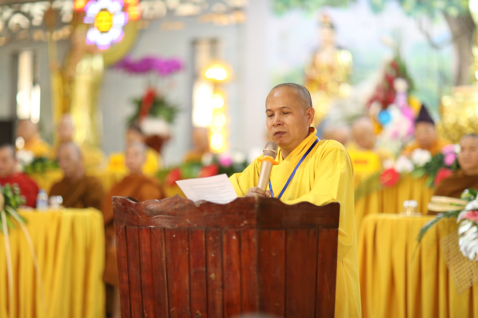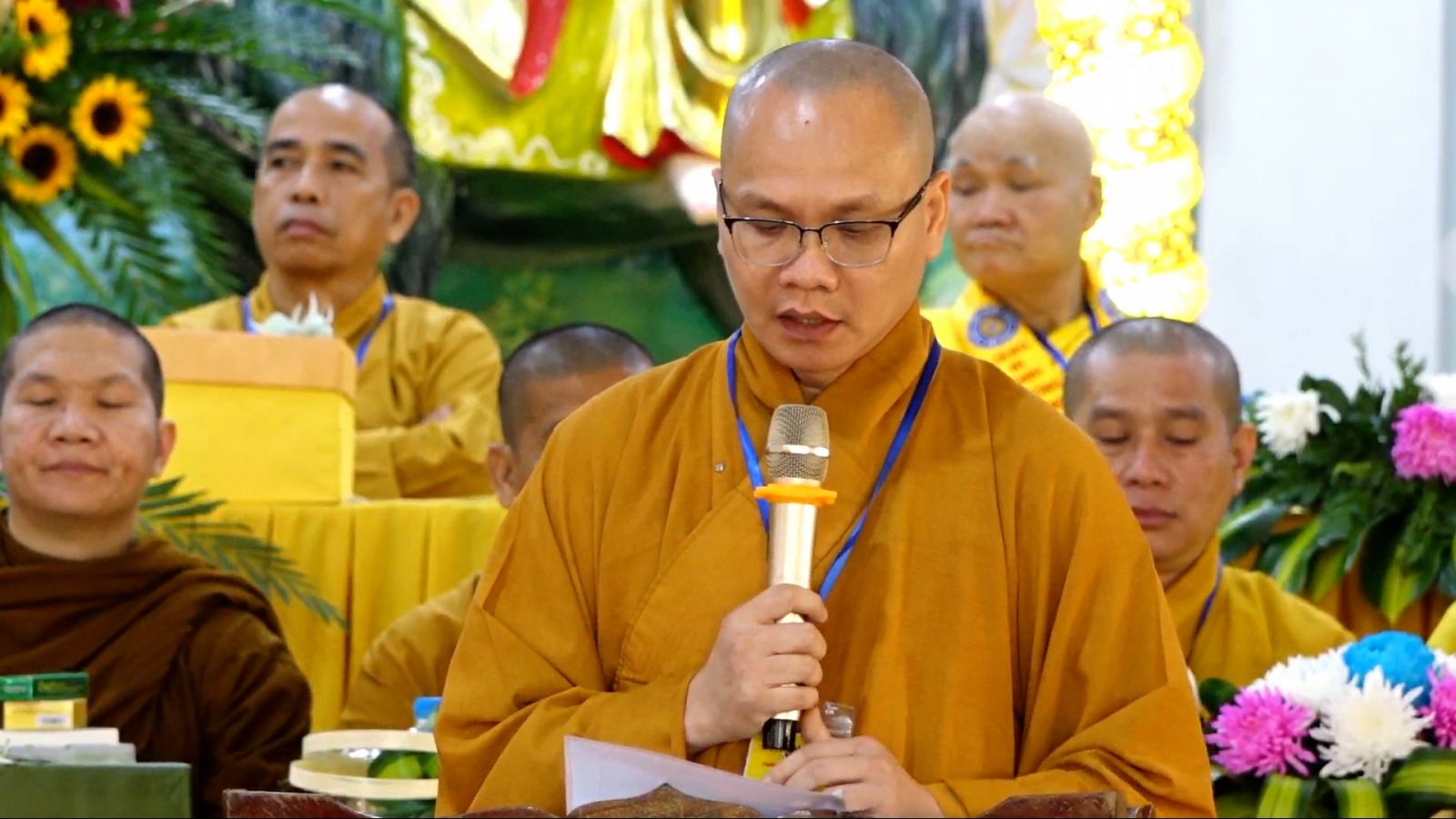 Tiếp theo buổi lễ, TT. Thích Quảng Trí đã báo cáo tổng kết Khóa IX và báo cáo kết quả tuyển sinh Khóa XI của trường TCPH tỉnh Đồng Nai.