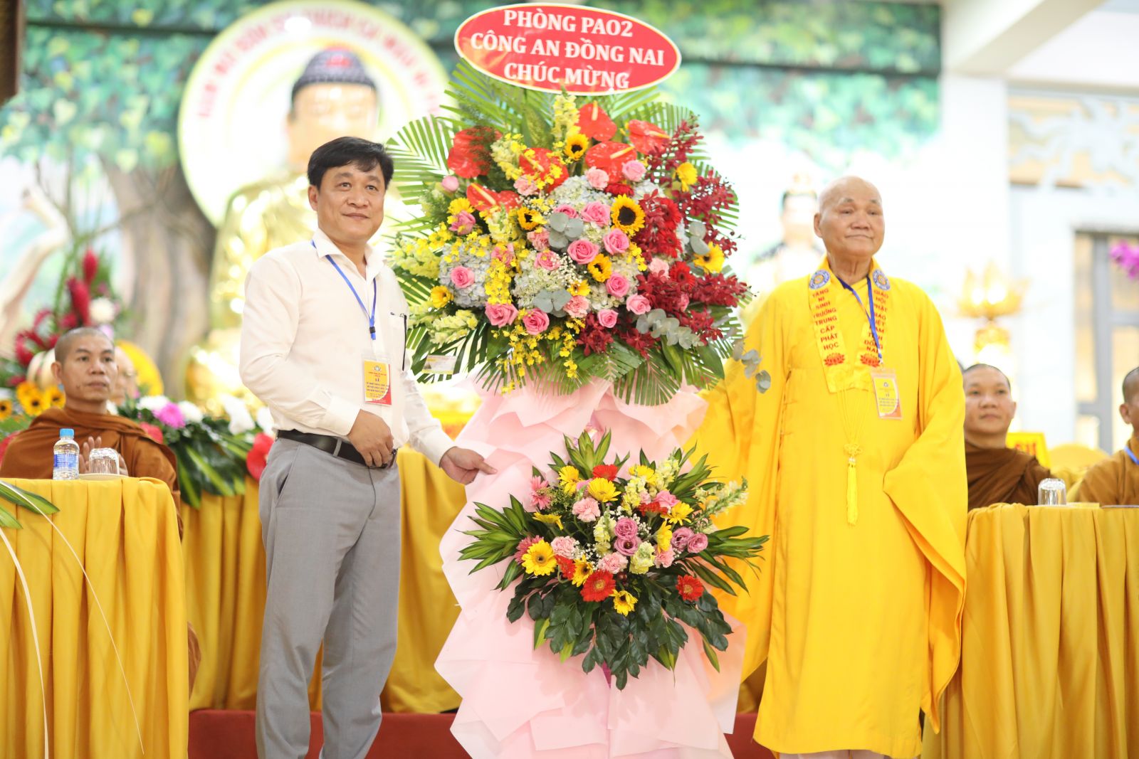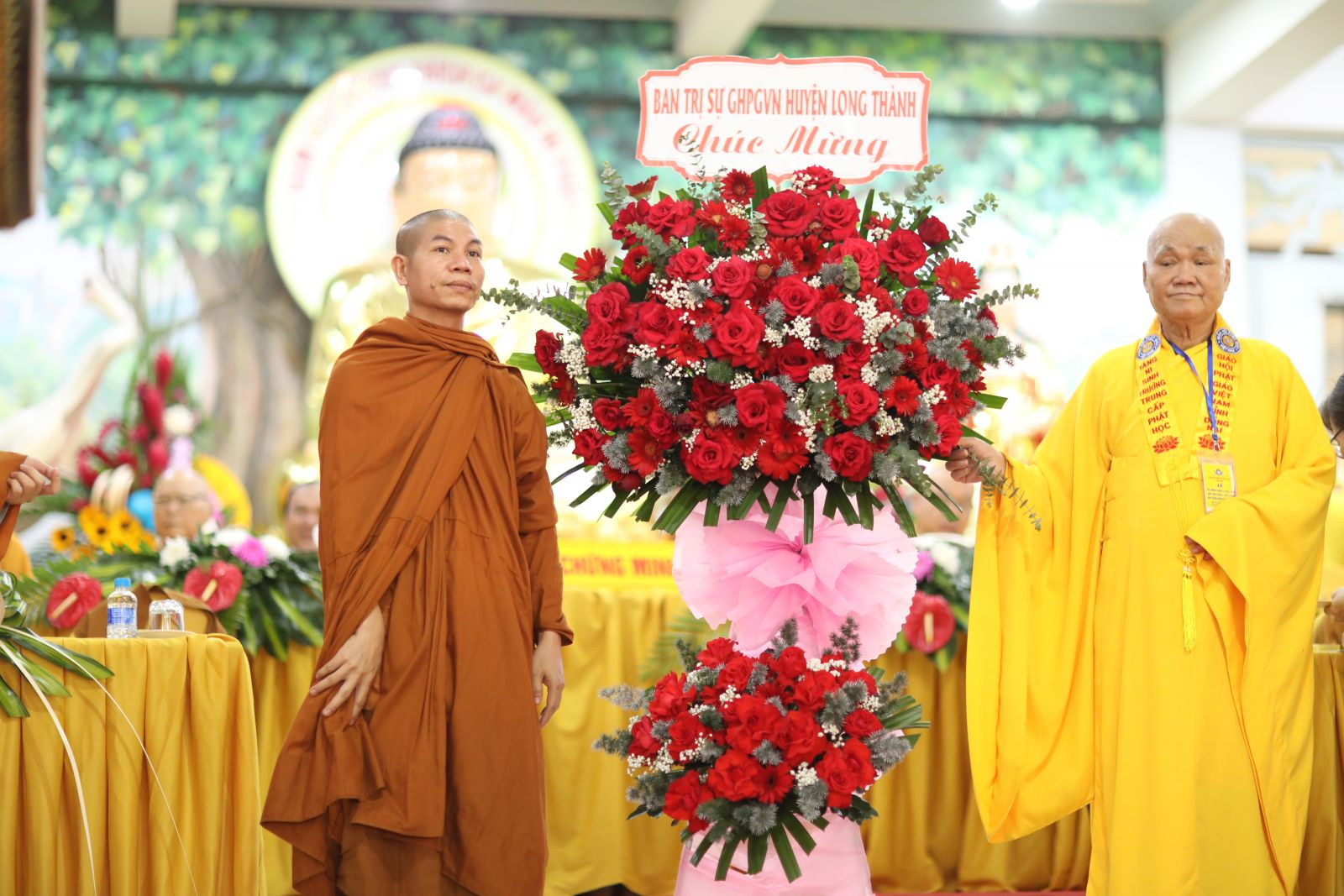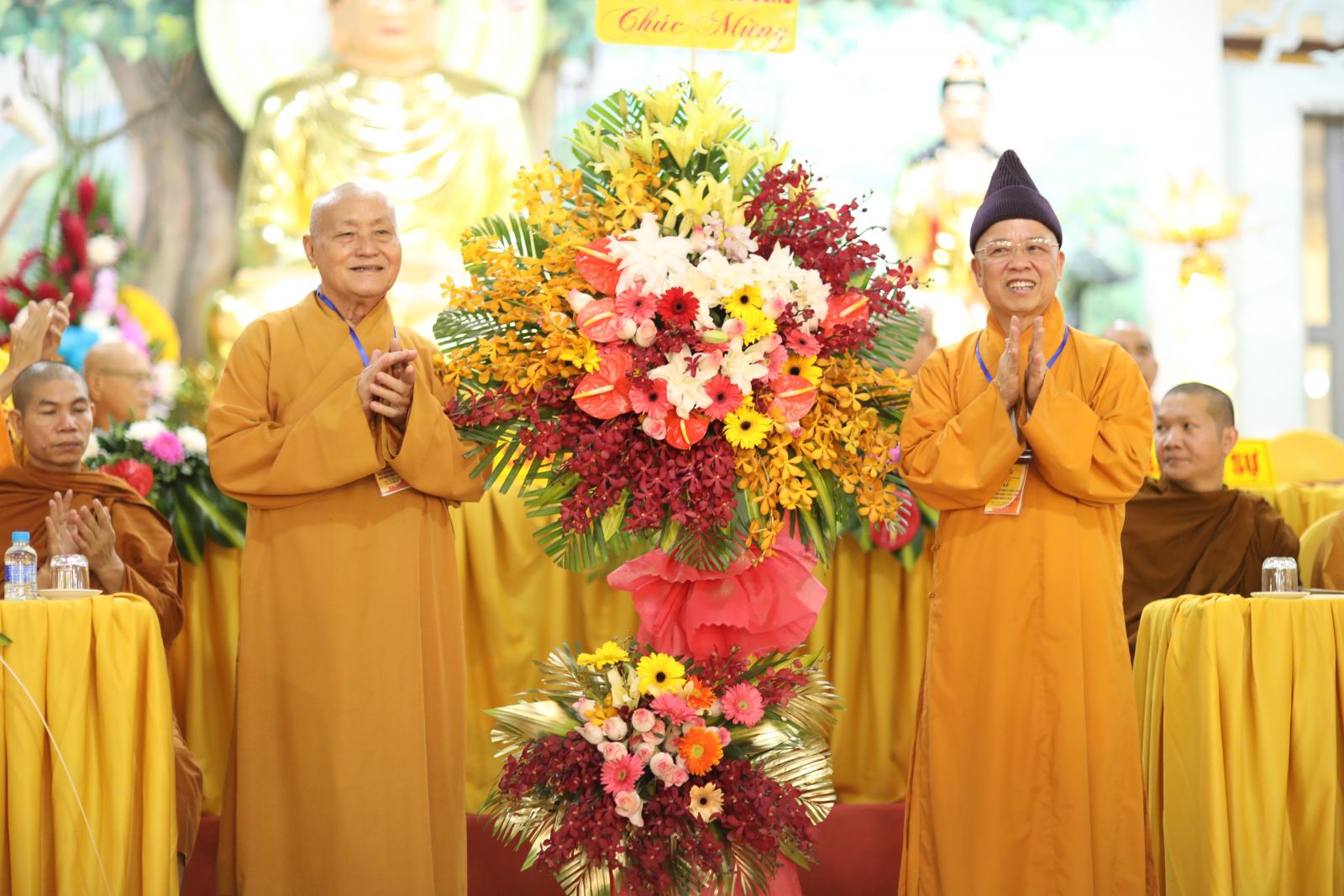 Buổi lễ cũng đón nhận những lẳng hoa tươi thắm của các cấp lãnh đạo Giáo hội Phật giáo Việt Nam, các cấp lãnh đạo chính quyền và các đơn vị, các nhà hảo tâm, mạnh thường quân đã bảo trợ cho Tăng Ni sinh yên tâm tu học tại trường.