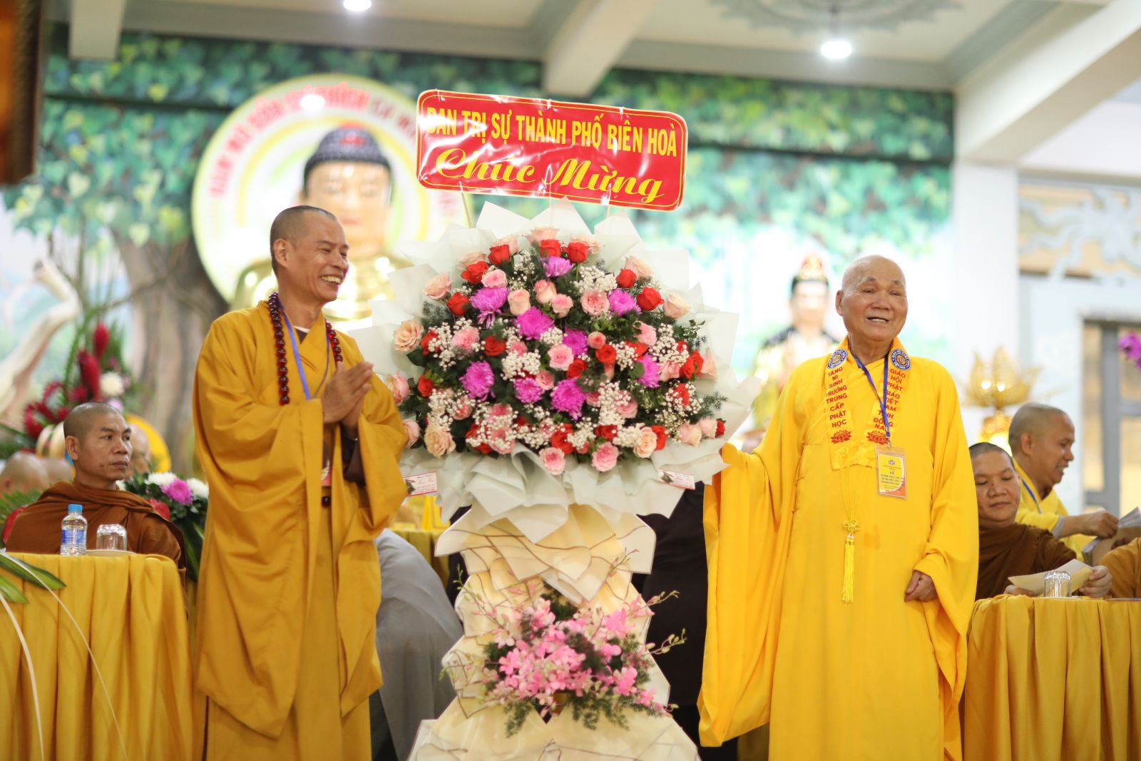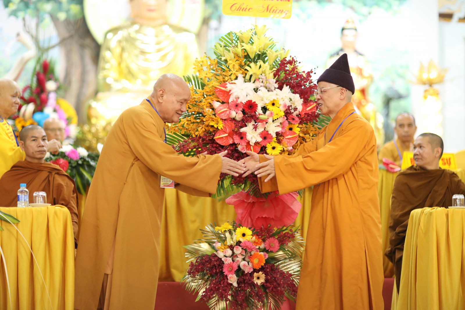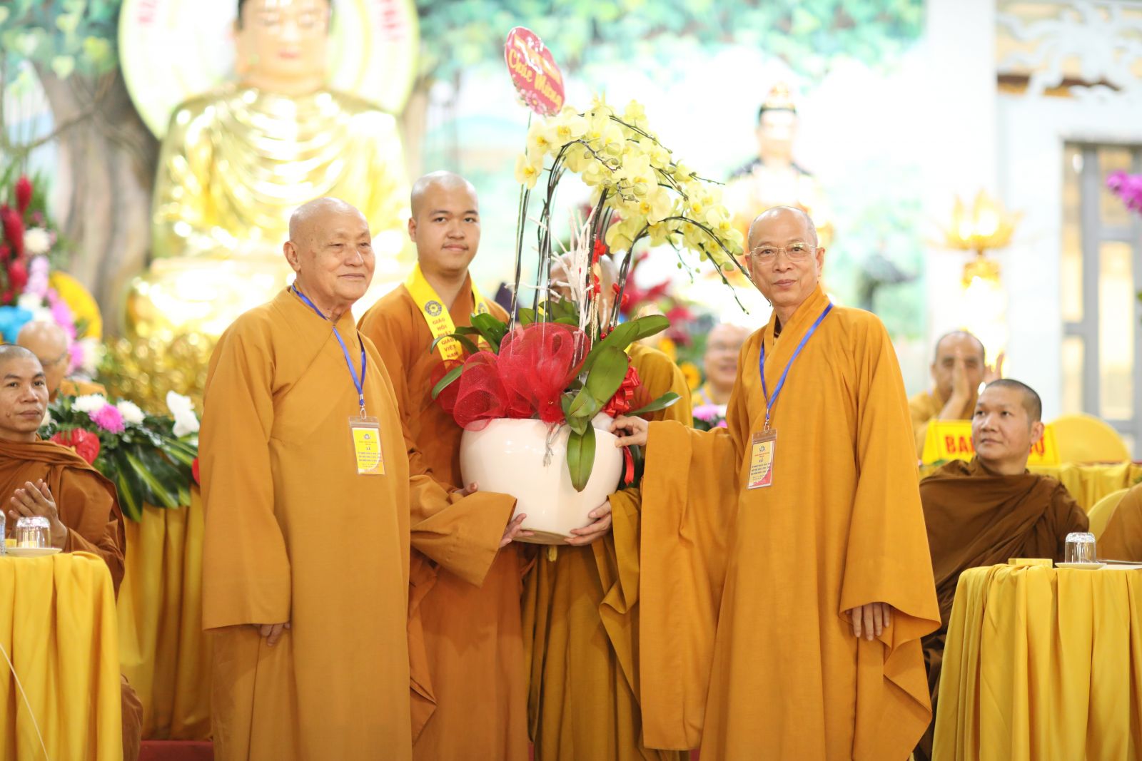 Buổi lễ cũng đón nhận những lẳng hoa tươi thắm của các cấp lãnh đạo Giáo hội Phật giáo Việt Nam, các cấp lãnh đạo chính quyền và các đơn vị, các nhà hảo tâm, mạnh thường quân đã bảo trợ cho Tăng Ni sinh yên tâm tu học tại trường.