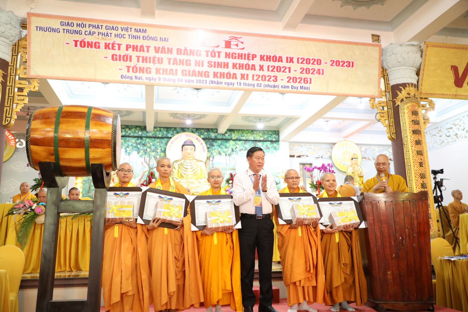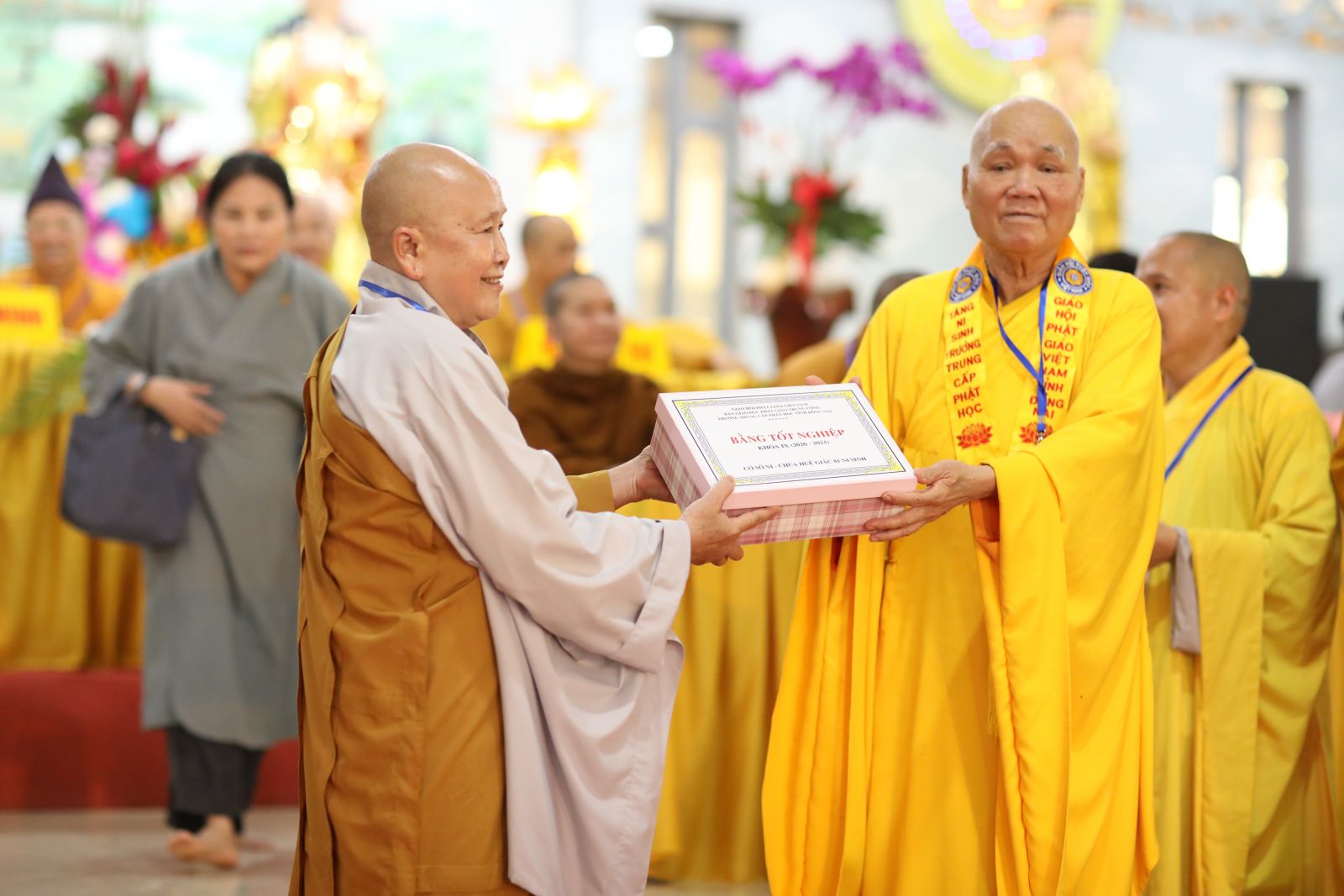Buổi lễ cũng trao văn bằng tốt nghiệp đại diện cho các cơ sở và trao tặng học bổng khuyến học, trao tặng những phần quà cho các vị thủ vĩ của khóa IX và những vị có biểu dương xuất sắc trong khóa học.