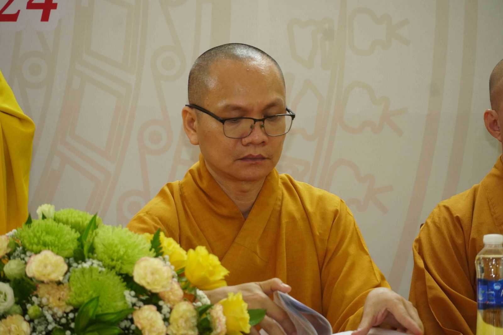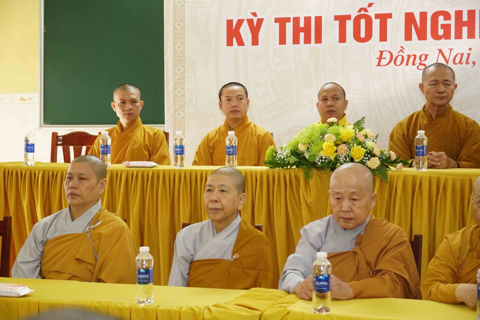 Tiếp đó, ĐĐ. Thích Đạt ma Quang Tuệ - Trưởng ban Điều hành Trường trung cấp Phật học tỉnh Đồng Nai đã thông qua danh sách ban Giám khảo kỳ thi tốt nghiệp khóa X và phân chia các khu vực cho Tăng Ni sinh trong kỳ thi này.
