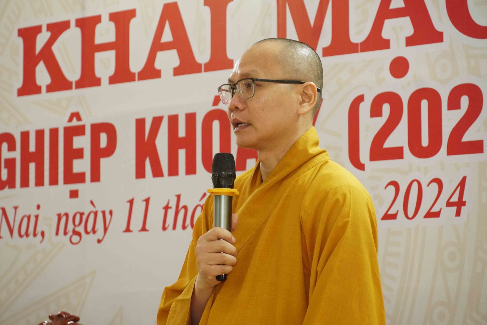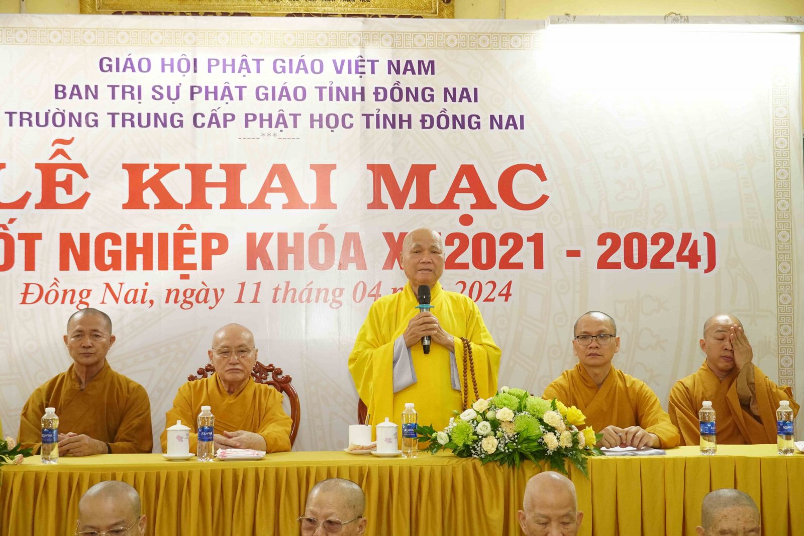 Tại buổi lễ Khai mạc, HT. Thích Nhật Quang – Hiệu trưởng Trường trung cấp Phật học tỉnh Đồng Nai đã huấn từ đối với Tăng Ni sinh, Ngài chia sẻ: là Tăng Ni sinh dù có lớn nhỏ, mới xuất gia hay đã xuất gia lâu năm, khi sống chung trong môi trường Phật học, hãy thực hiện nếp sống lục hòa cộng trụ, thương yêu, quan tâm, giúp đỡ lẫn nhau, cùng tiến bộ trên con đường giác ngộ. Hòa thượng mong muốn Tăng Ni sinh phải nghiêm túc chấp hành nội quy của nhà trường, nỗ lực tu học, trau dồi đạo đức, oai nghi tế hạnh, huân tu Giới Định Tuệ để trở thành người “kế vãng khai lai”, “truyền đăng tục diệm” cho Phật giáo trong tương lai.