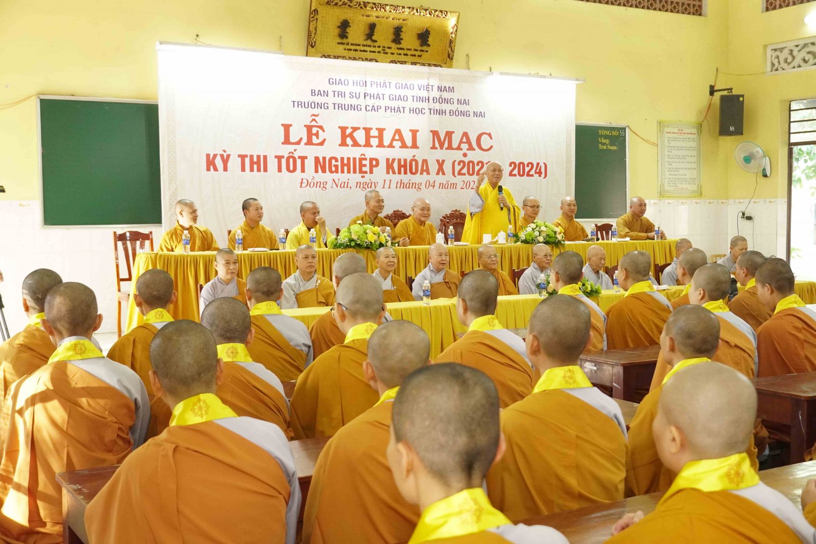 Phát biểu tại buổi khai mạc, HT. Thích Phước Tú – Hiệu phó Thường trực kiêm Chánh Thư ký trường Trung cấp Phật học đã tán dương Tăng Ni sinh trong thời gian qua đã thực học, thực tu đúng với nội quy nhà trường. Đồng thời Hòa thượng cũng mong muốn rằng trong kỳ thi tốt nghiệp này Tăng Ni sinh sẽ thể hiện hết thực học của mình để làm nền tảng tiếp nối sự nghiệp Hoằng pháp của Giáo hội, là những Tăng Ni trẻ có tài, có tâm để tiếp tục phát triển mạng mạch của Phật pháp.