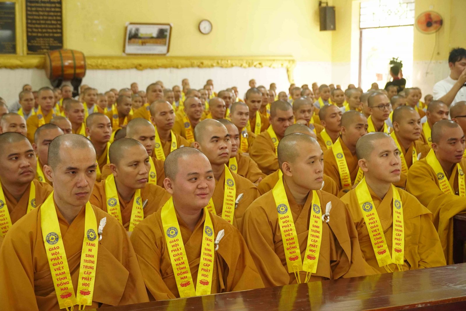 Quang lâm chứng minh có HT. Thích Nhật Quang - Uỷ viên Thường trực HĐCM, Chứng minh Ban Trị sự GHPGVN tỉnh, Hiệu trưởng trường Trung cấp Phật học tỉnh Đồng Nai; HT. Thích Phước Tú - Phó Trưởng ban Giáo dục Phật giáo TƯ GHPGVN, Hiệu phó Thường trực kiêm Chánh Thư ký Trường Trung cấp Phật học tỉnh Đồng Nai; Đ Đ. Thích Đạt ma Quang Tuệ - Uỷ viên HĐTS, Phó Ban Trị sự, Trưởng ban Giáo dục Phật giáo tỉnh, Trưởng ban Điều hành Trường trung cấp Phật học tỉnh ; TT. Thích Quảng Trí - Phó Ban Trị sự, Trưởng ban Nghi lễ, Phó ban Điều hành; ĐĐ. Thích Thiện Mỹ - Trưởng ban Thông tin Truyền thông GHPGVN tỉnh; ĐĐ. Thích Chơn Nghĩa - Trưởng ban Từ thiện xã hội GHPGVN tỉnh, Trưởng ban Quản viện cơ sở Quan Âm Tu Viện; TT. Thích Minh Từ - Phó chánh thư ký; TT. Thích Minh Khai - Trưởng ban quản viện cơ sở Tăng; NT. Thích Như Tịnh - Trưởng ban Quản viện cơ sở Ni Thiền viện Linh Chiếu: NT. Thích nữ Như Đức Trưởng ban Quản viện cơ sở Ni Thiền viện Viên Chiếu, NT. Thích nữ Xuân Liên - Trưởng ban Quản viện cơ sở Tịnh xá Ngọc Uyển; NT. Thích nữ Thuần Ẩn - Trưởng ban Quản viện cơ sở Ni; cùng chư Tôn đức ban Điều hành, ban Quản viện các cơ sở, và gần 300 Tăng Ni sinh lớp Trung cấp Phật học khóa X cùng tham dự.