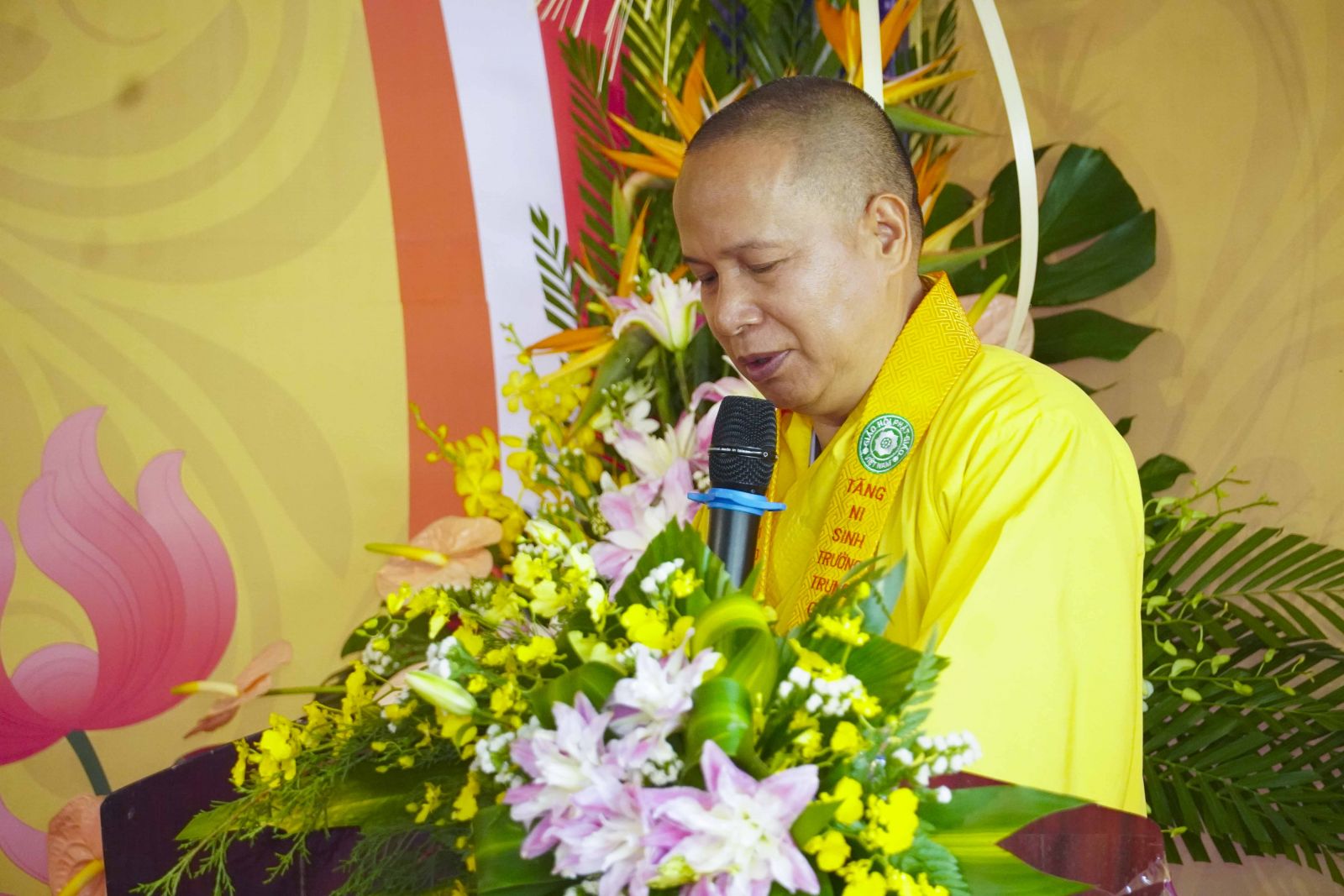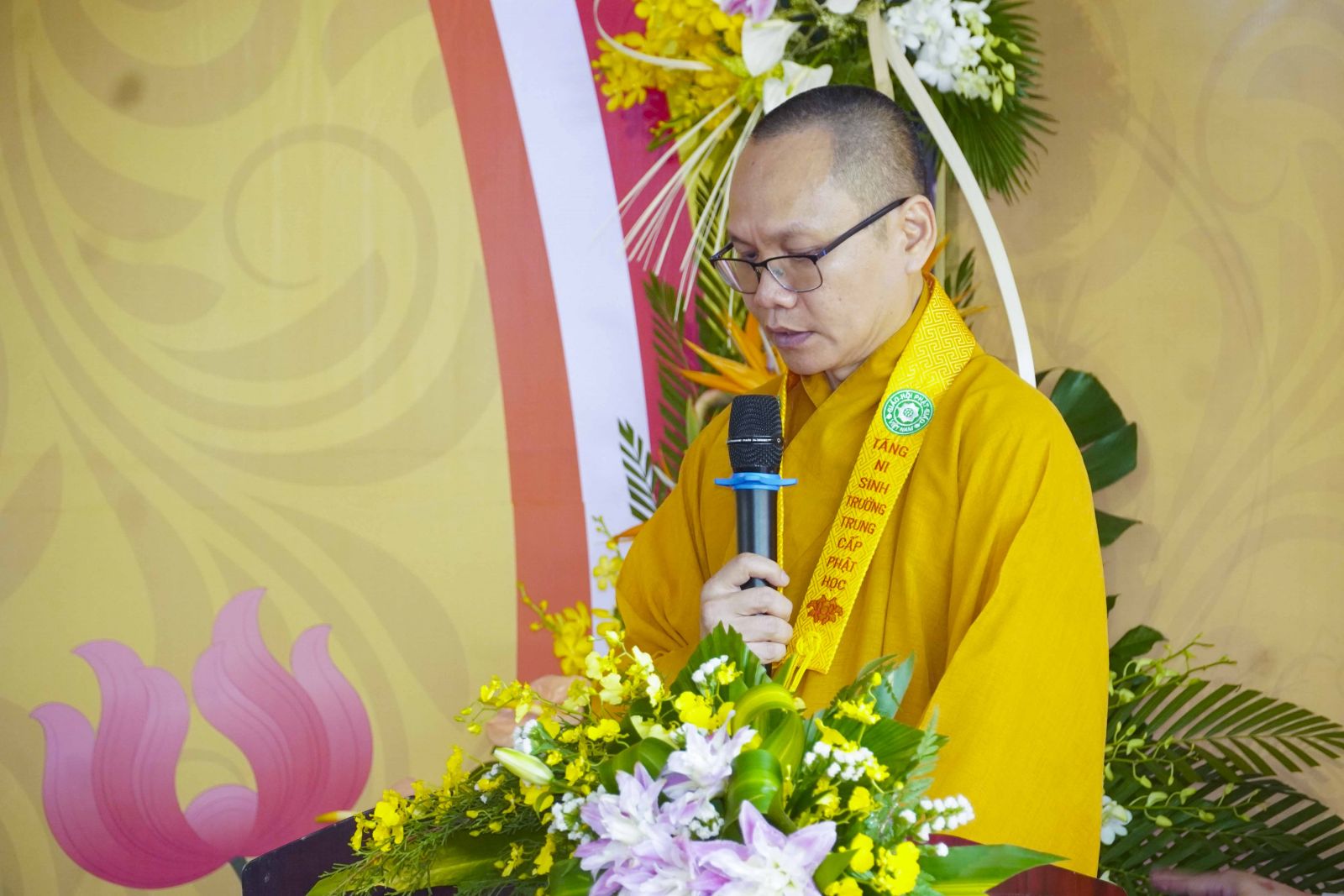 Ban đạo từ tại buổi lễ, TT. Thích Phước Đạt đã tán thán công đức của Ban Giám hiệu nhà trường trong việc kiến lập môi trường tu học trang nghiêm, kỷ cương và giàu tính giáo dục. Chư Tôn đức cũng ân cần sách tấn Tăng Ni sinh, nhấn mạnh tầm quan trọng của việc giữ gìn giới luật, nuôi dưỡng đạo tâm và không ngừng trau dồi trí tuệ. Đối với những vị đã tốt nghiệp, cần tiếp tục học hỏi, hành trì và dấn thân phụng sự; đối với những vị vừa bước vào khóa học mới, cần xác lập chí nguyện kiên định, tinh tấn tu học, xứng đáng là người kế thừa mạng mạch Phật pháp.