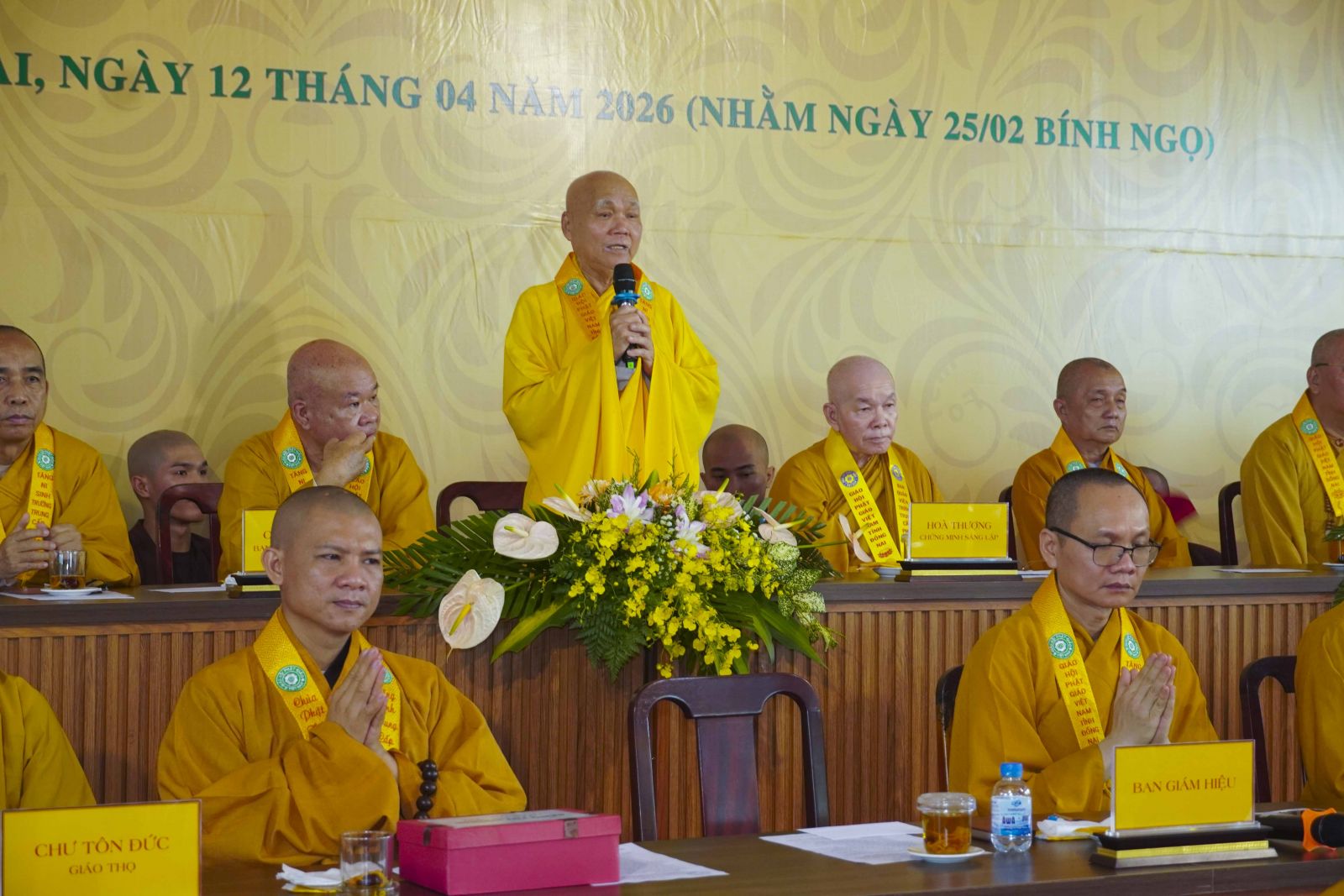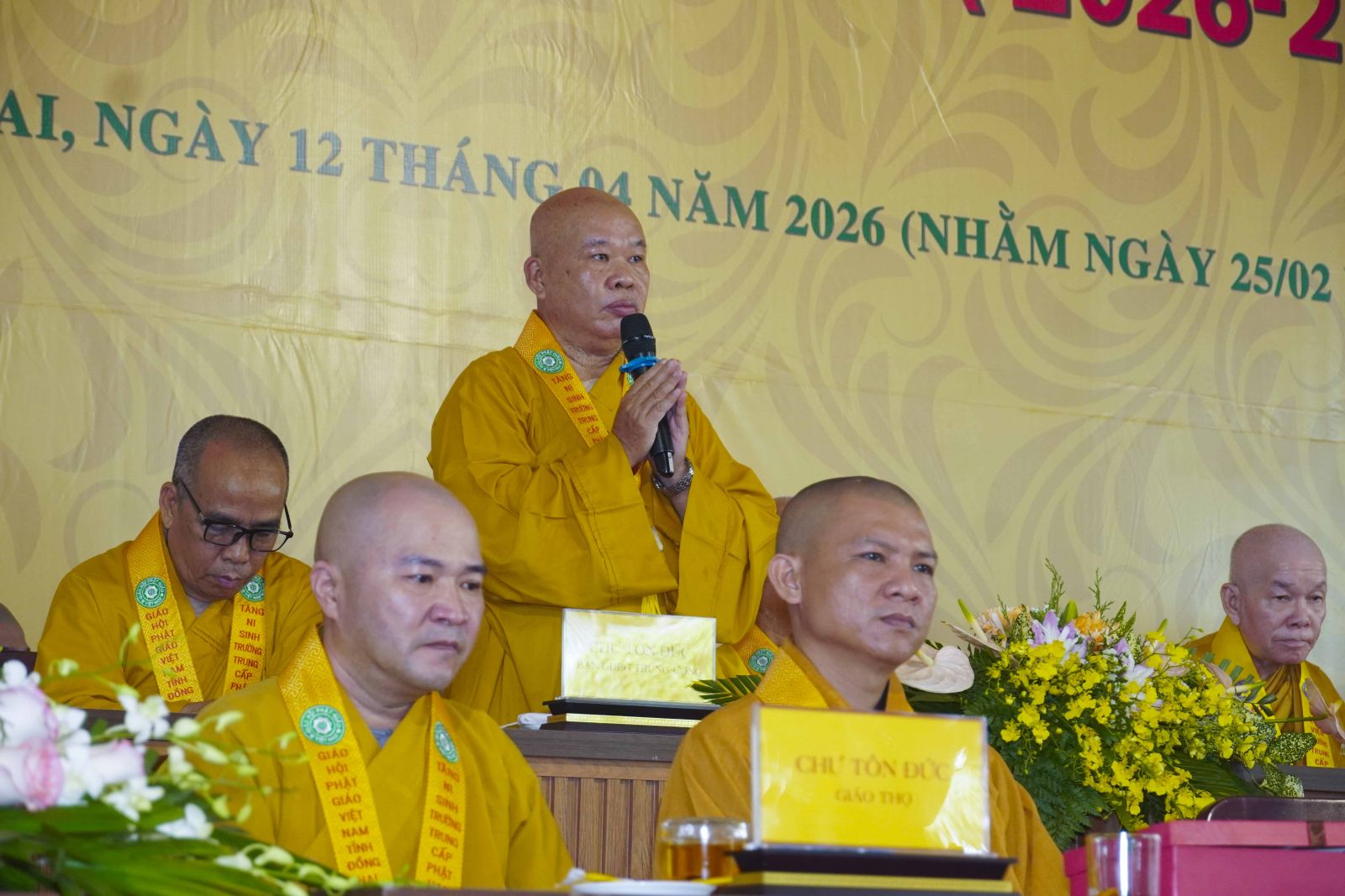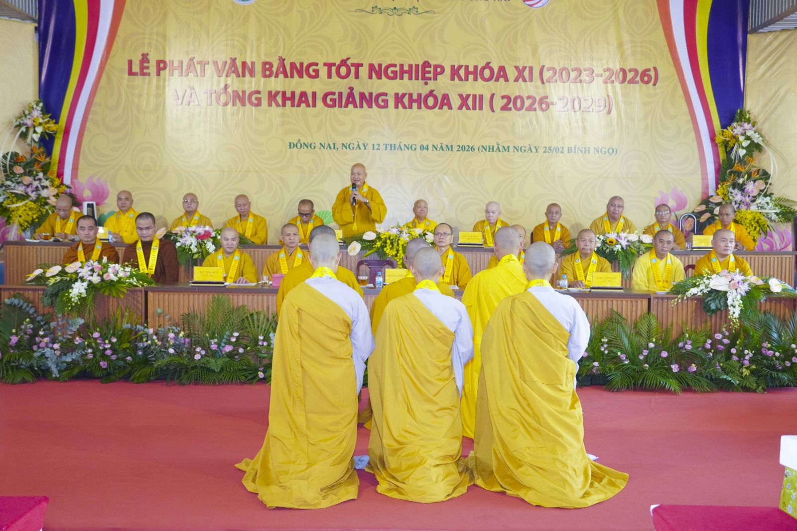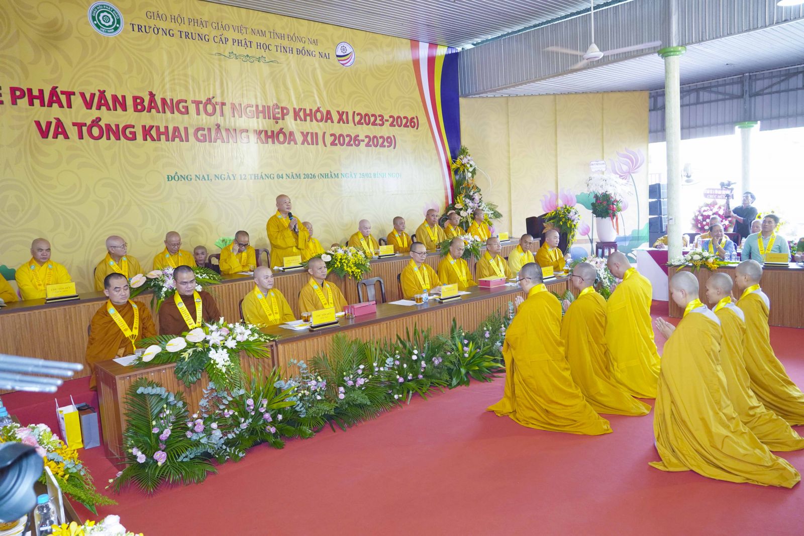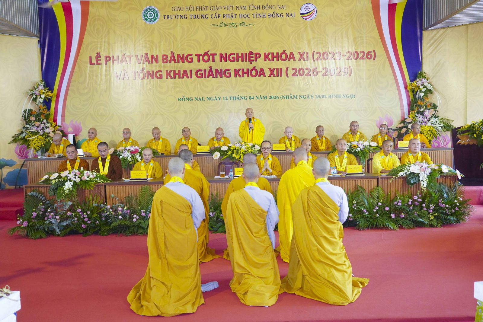 Phát biểu khai mạc buổi lễ, Thượng tọa Thích Đạt Ma Quang Tuệ – Hiệu trưởng Trường Trung cấp Phật học tỉnh Đồng Nai – đã nhấn mạnh ý nghĩa trọng đại của sự kiện. Theo đó, lễ tốt nghiệp không chỉ là sự khép lại một chặng đường ba năm tu học miên mật, mà còn mở ra một hành trình mới, nơi mỗi hành giả tiếp tục trau dồi giới – định – tuệ, đem giáo pháp ứng dụng vào đời sống, phụng sự Đạo pháp và Dân tộc. Đồng thời, việc khai giảng khóa XII chính là sự tiếp nối truyền thống đào tạo Tăng tài, góp phần xây dựng nền tảng vững chắc cho sự phát triển lâu dài của Giáo hội.