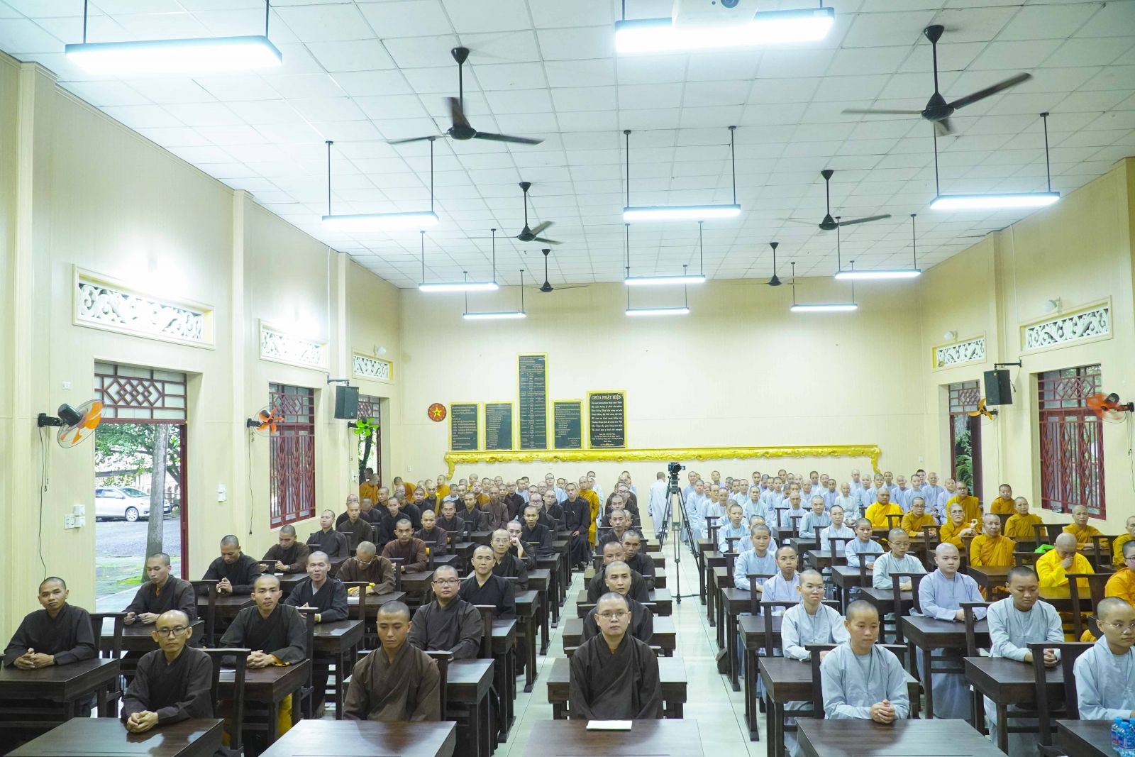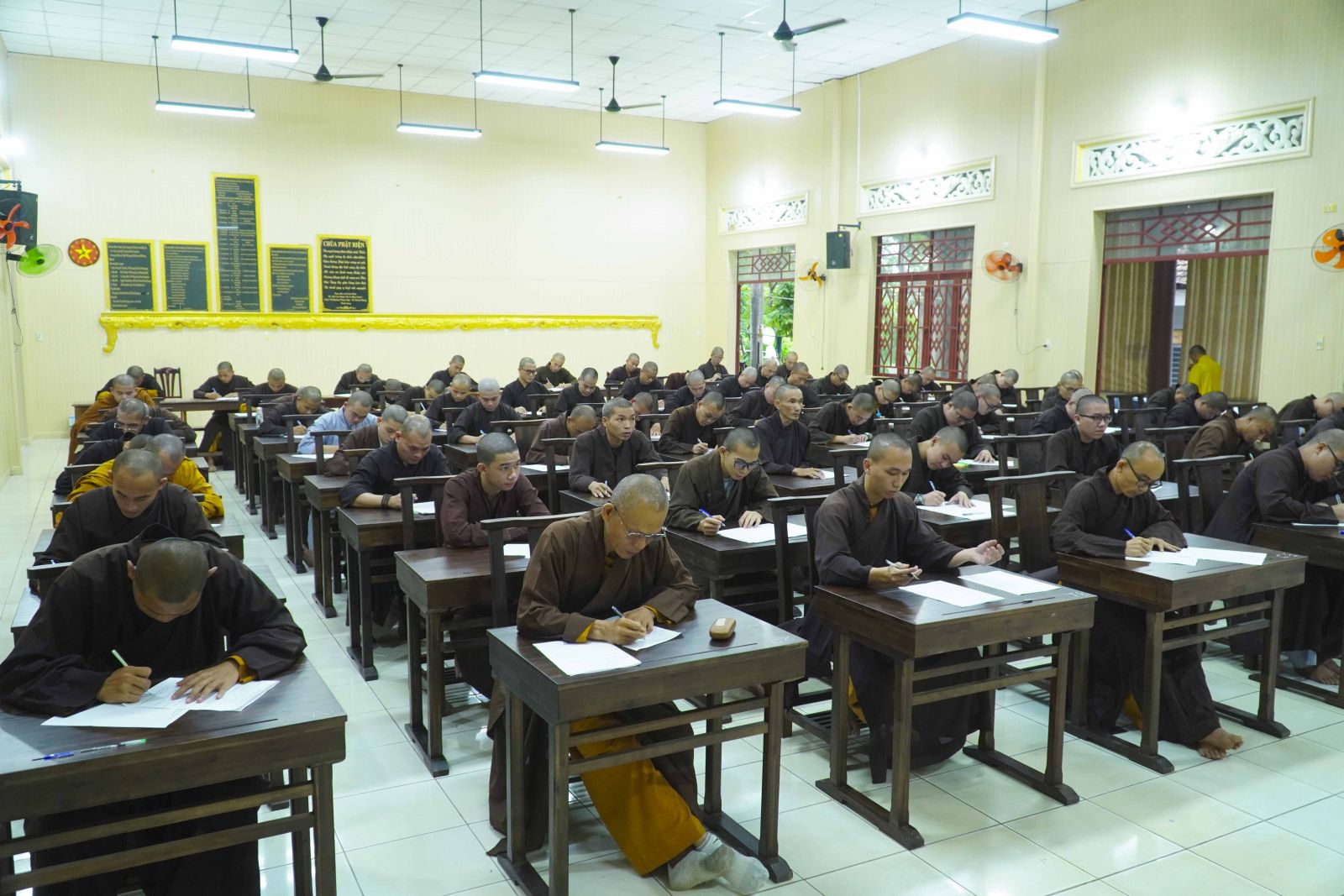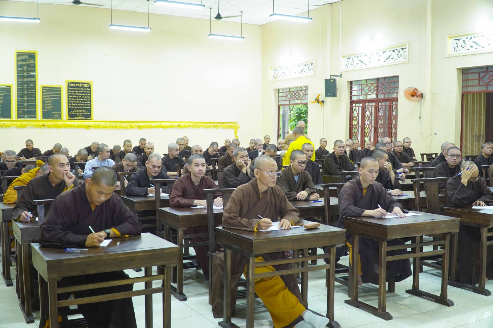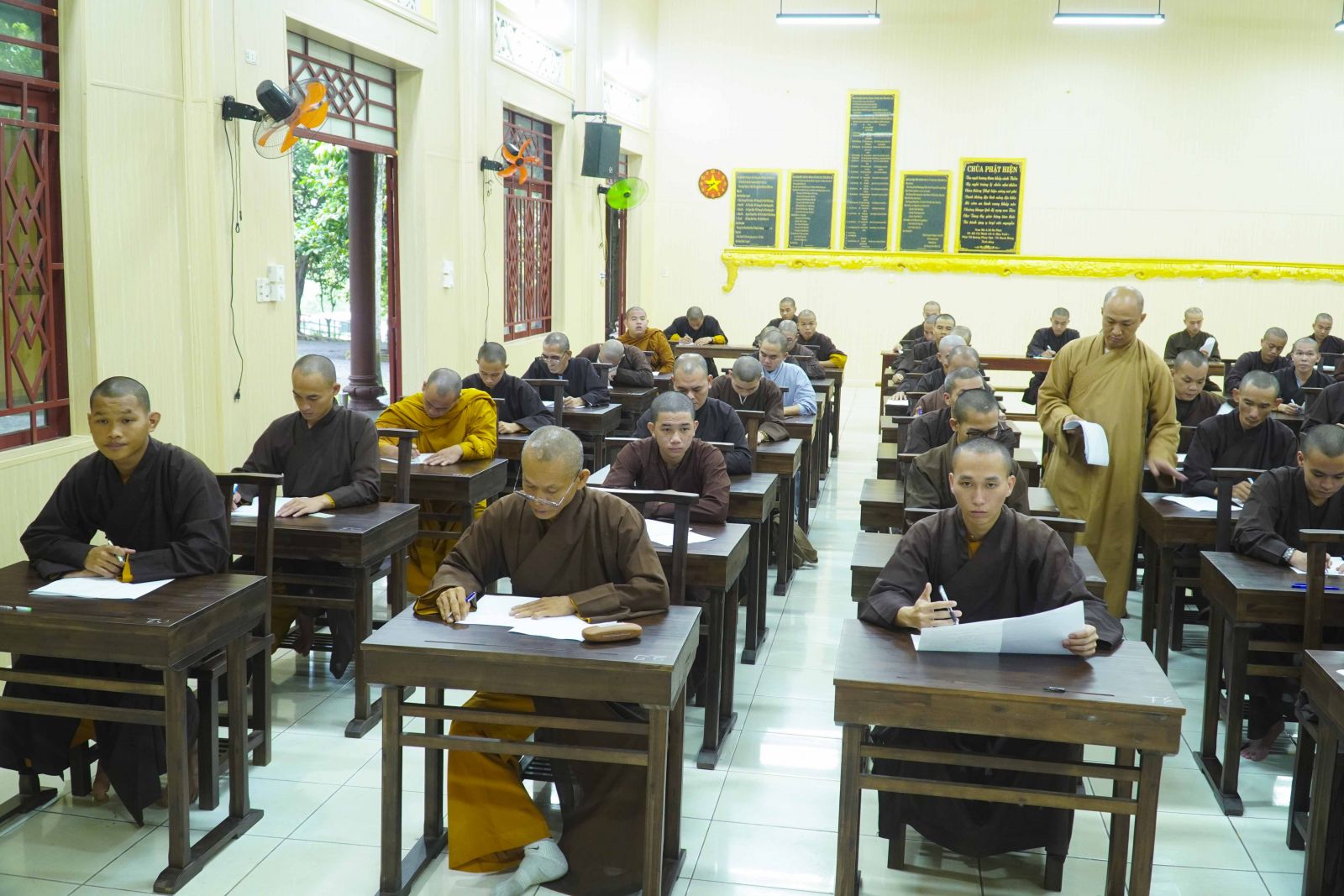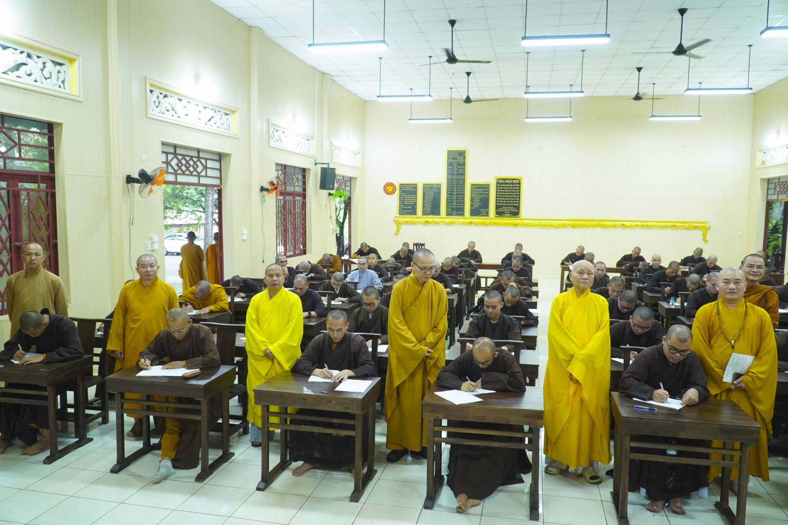 Sau lời Đạo từ của Hòa thượng Chứng minh, Tăng Ni sinh đã bước vào môn thi đầu tiên là Phật Pháp Căn Bản – thời gian: 90 phút và môn thi: Việt Văn – 90 phút.