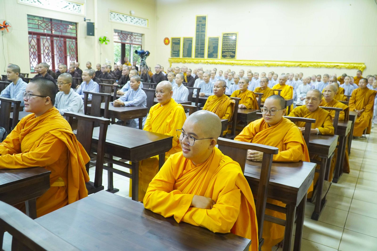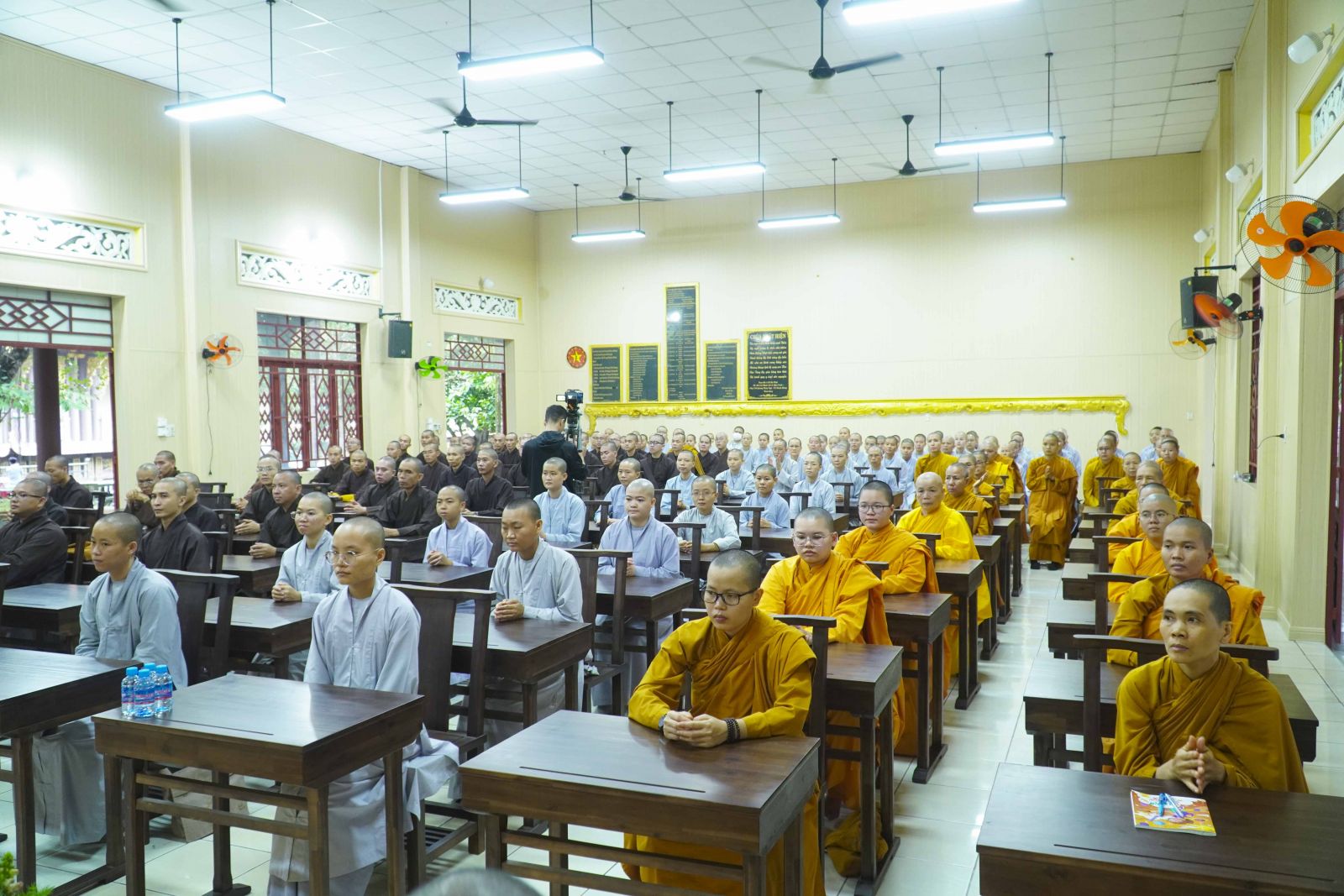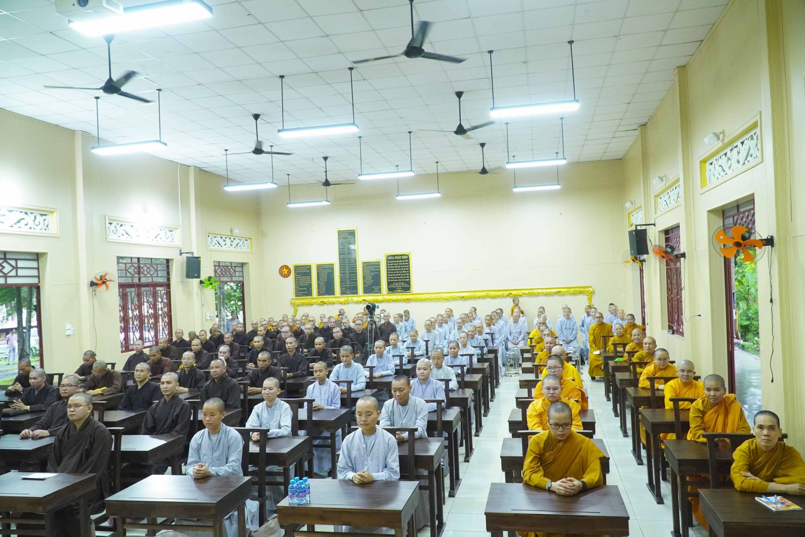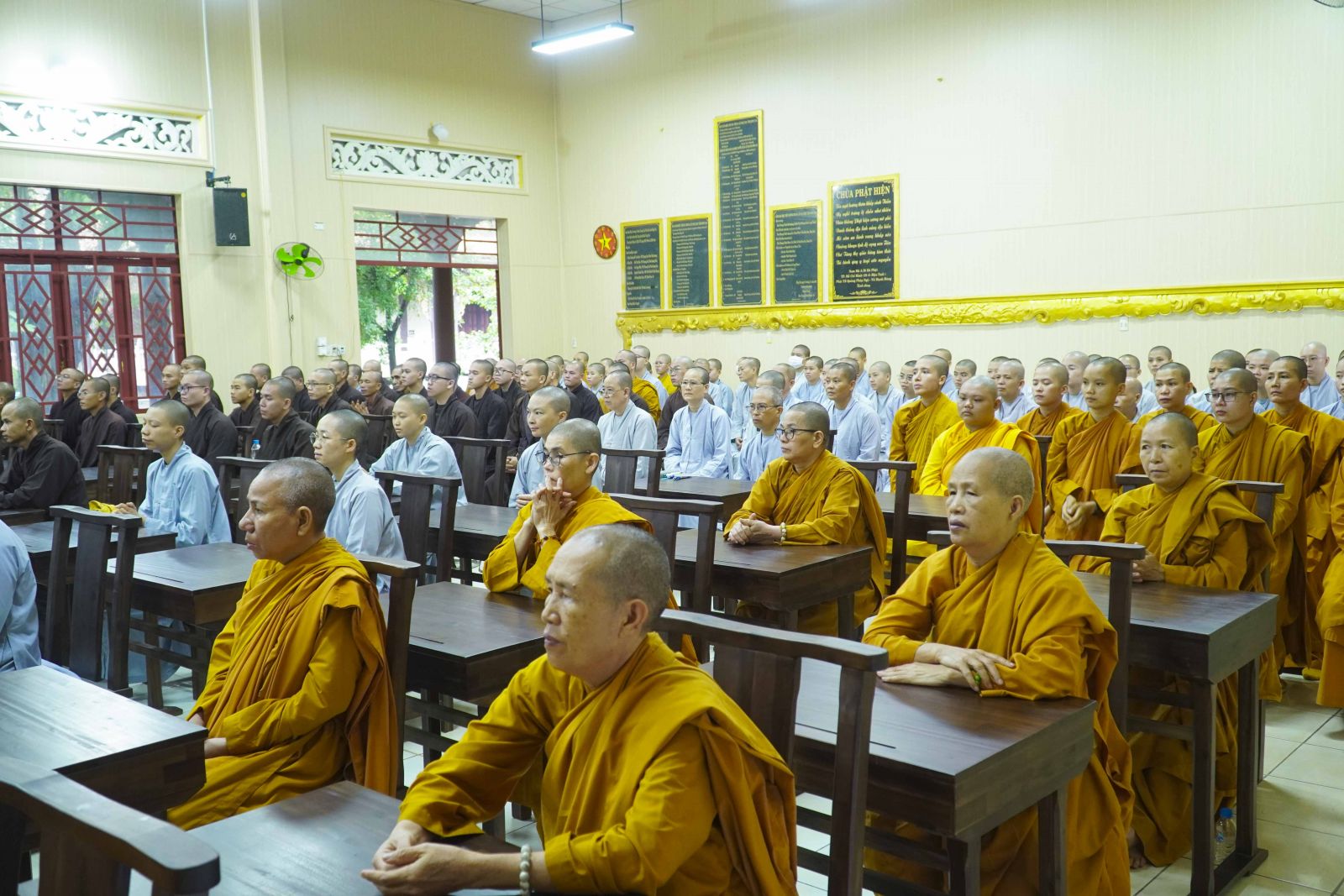 Sau lời Đạo từ của Hòa thượng Chứng minh, Tăng Ni sinh đã bước vào môn thi đầu tiên là Phật Pháp Căn Bản – thời gian: 90 phút và môn thi: Việt Văn – 90 phút.