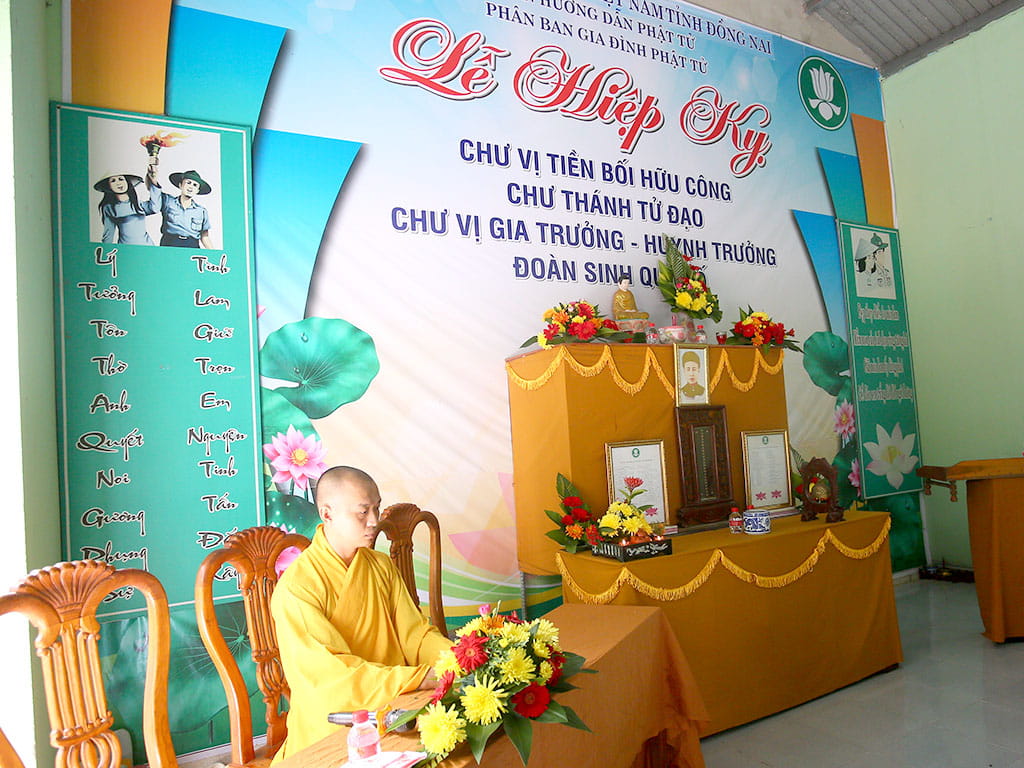 Buổi lễ được sự quang lâm chứng minh và khai lễ của Đại đức Thích Thạnh Thông – Uỷ viên Ban Trị sự GHPGVN tỉnh, trụ trì chùa Thanh Long. Huynh trưởng cấp Tấn Nguyên Tâm Phạm Thị Thanh Hằng – Trưởng BHD Phân ban GĐPT Đồng Nai; Huynh trưởng cấp Tấn Tâm Cường Nguyễn Hữu Anh – Phó trưởng Phân ban Thường trực; Huynh trưởng cấp Tấn Diệu Huệ Đoàn Thị Cúc – Phó trưởng Phân ban; Huynh trưởng cấp Tấn Đức Minh Nguyễn Tấn Tuyến – Phó trưởng Phân ban, các Huynh trưởng là Uỷ viên Phân ban cùng Huynh trưởng thuộc các đơn vị GĐPT tại phường Đồng Xoài, xã Đồng Phú và các khu vực lân cận.