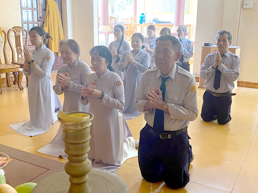 Trong không khí trang nghiêm và ấm áp tình lam, buổi lễ diễn ra với đầy đủ nghi thức truyền thống, thể hiện tinh thần đoàn kết, tinh tấn tu học và sinh hoạt của Gia đình Phật tử.