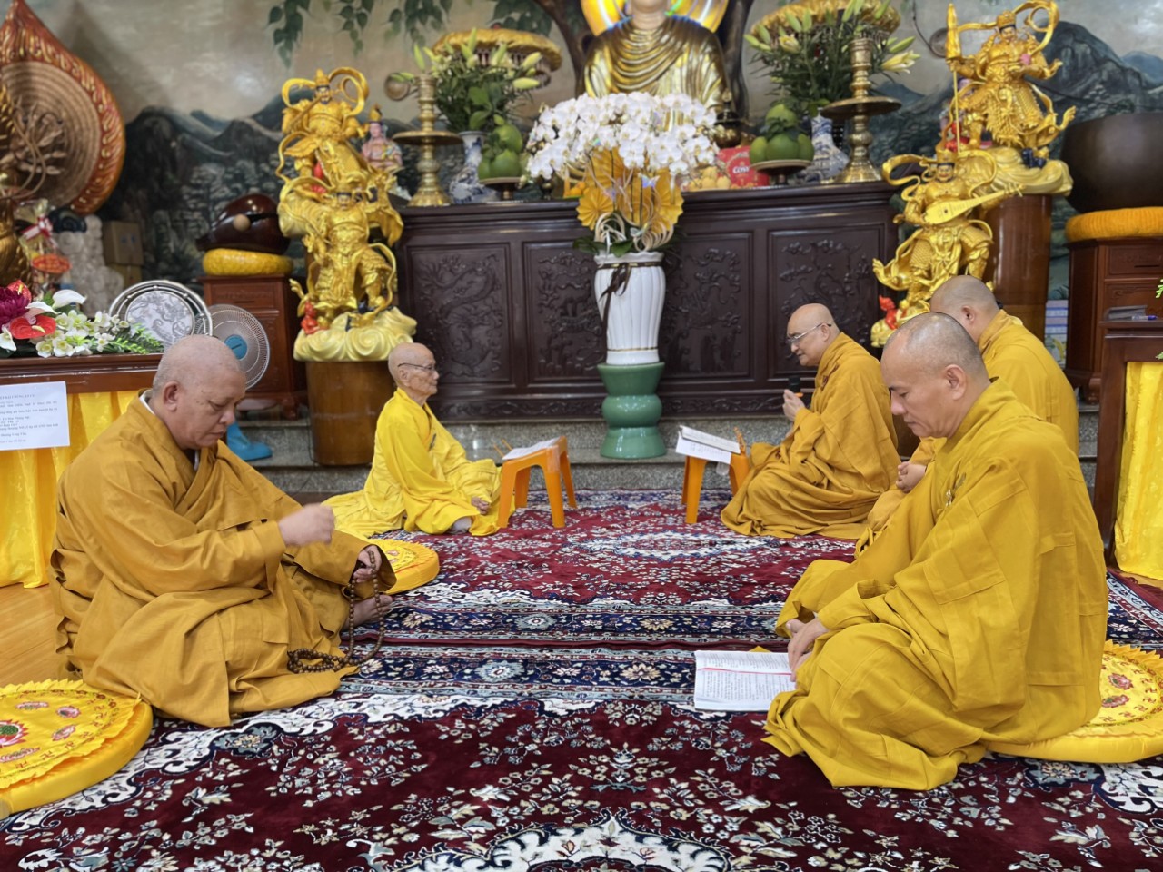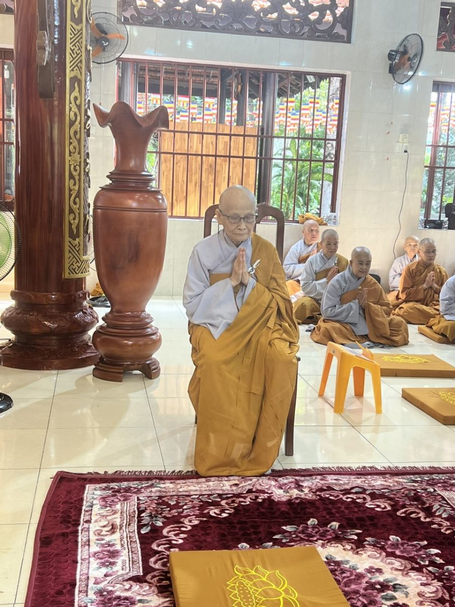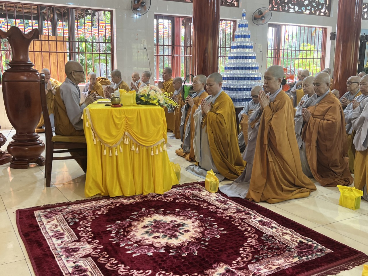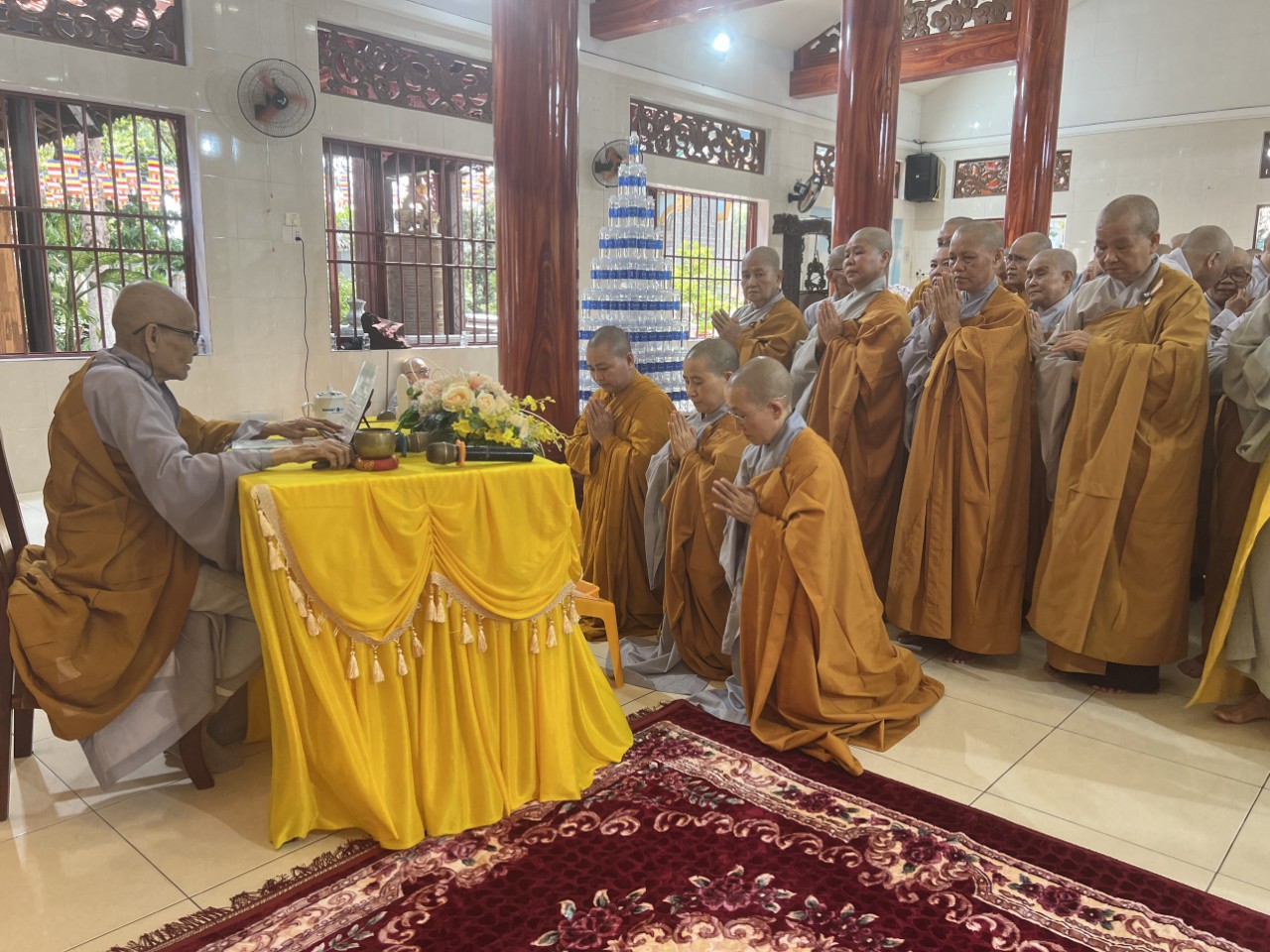 Sau buổi lễ tác Pháp An Cư, chư Tôn Đức Ni ban chức sự đã cung thỉnh Ni Trưởng TN Như Thuận chánh Thiền chủ trường hạ ban lời sách tấn để chư hành giả nương đức Ni Trưởng tinh tấn tu học trong ba tháng được viên mãn.
