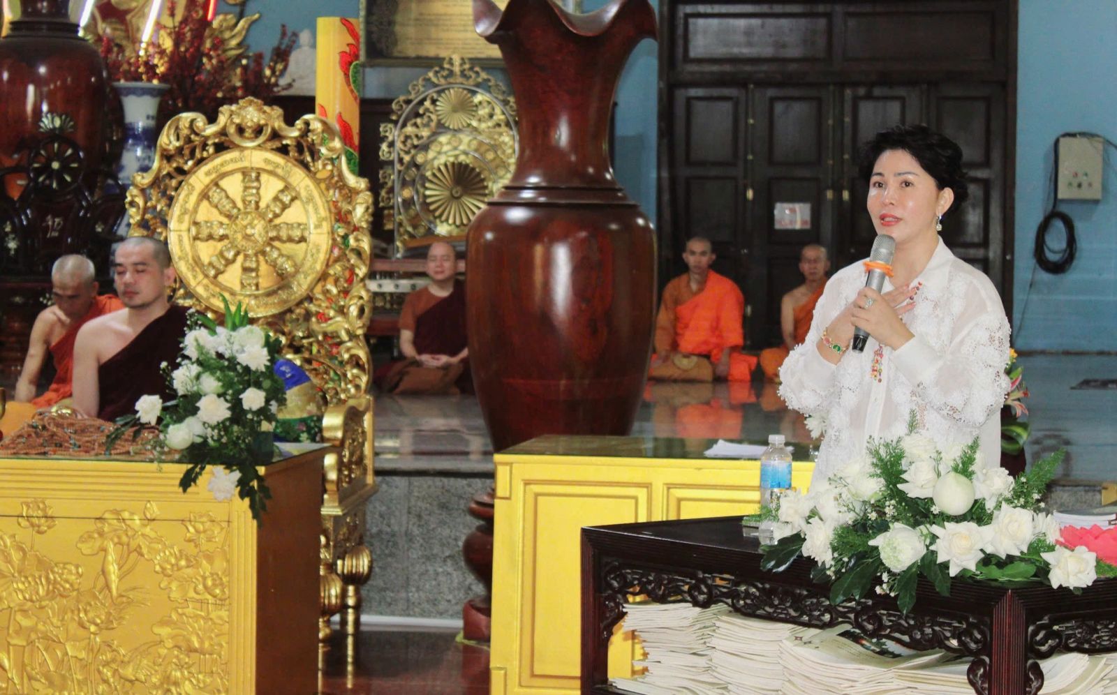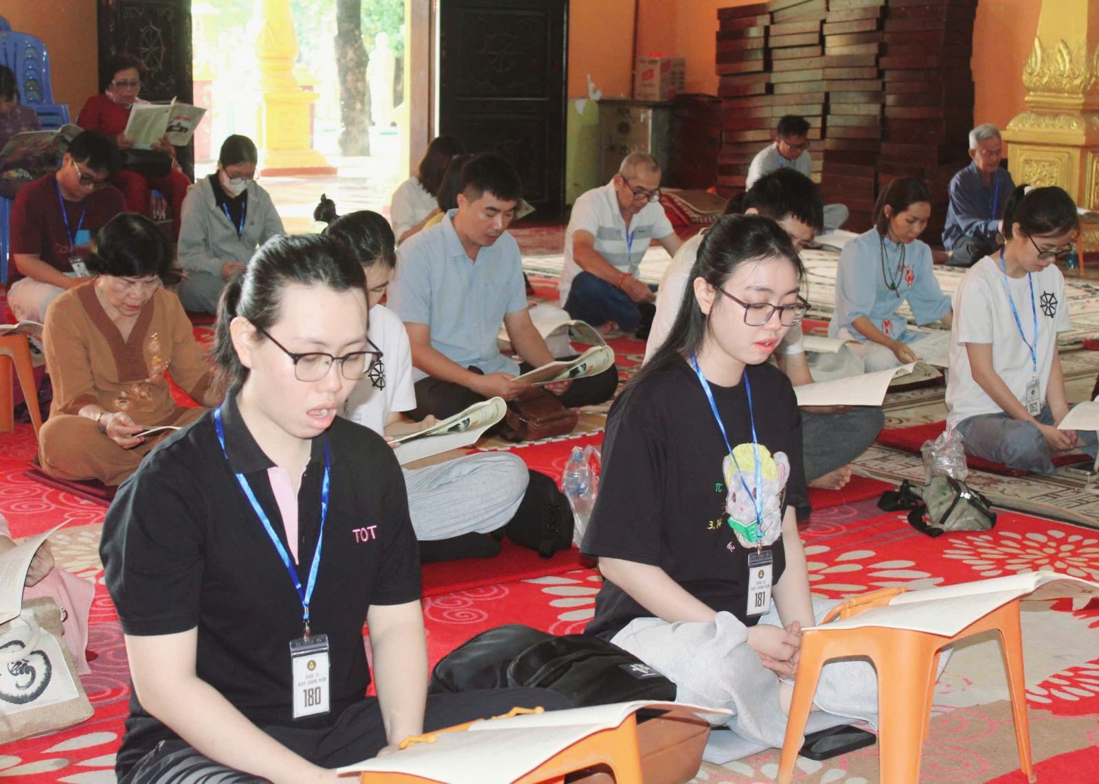 Đại đức Thích Phước Toàn điều hành khóa tu Ngày Chánh Niệm lần II, hướng dẫn đại chúng tọa thiền tĩnh lặng, tụng kinh Chuyển Pháp Luân - Rải Tâm Từ. Dịp này, Phật tử Đinh Thị Kim Dung - Phó tổng giám đốc khu du lịch Suối Tiên & Sơn Tiên) chia sẻ diễn thuyết "Quyến thuộc Bồ Đề".