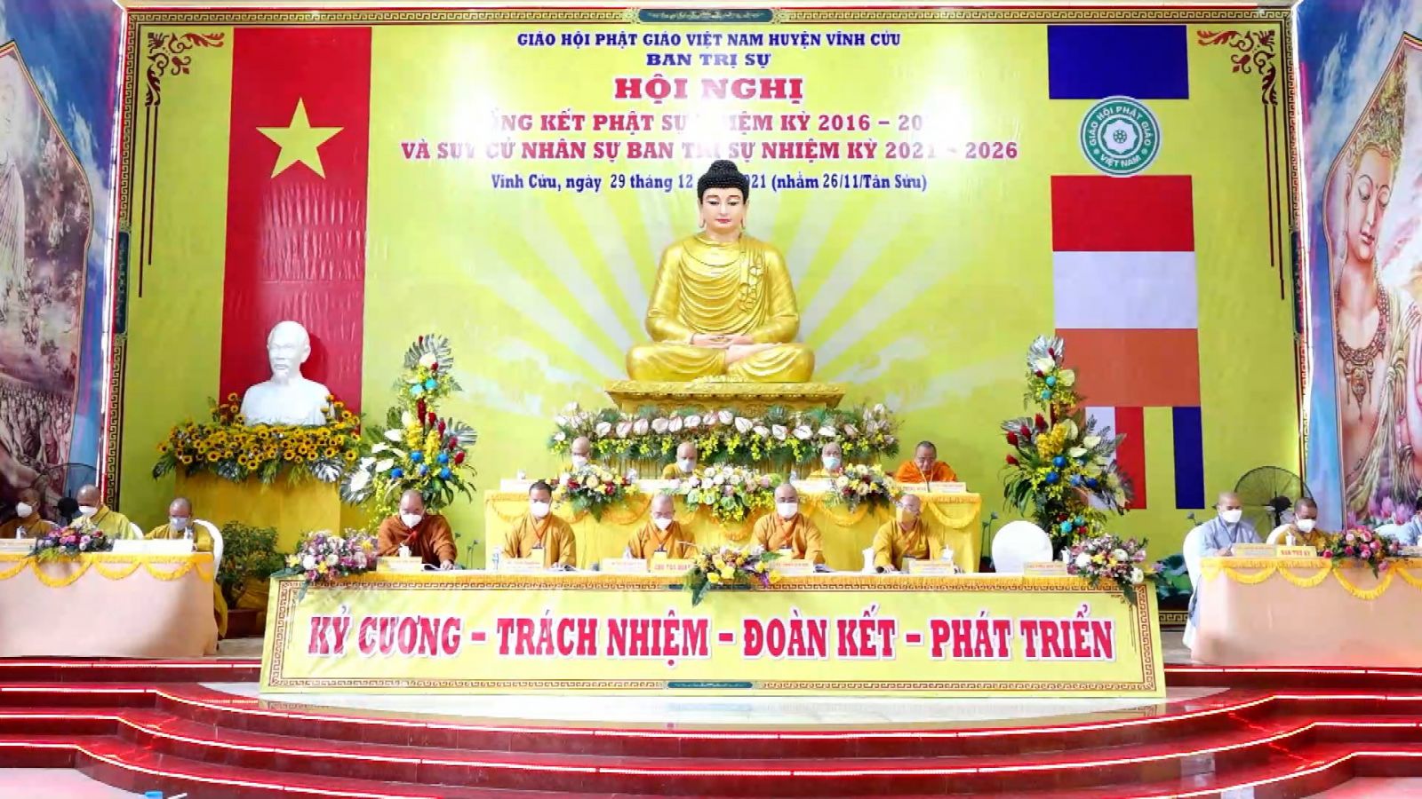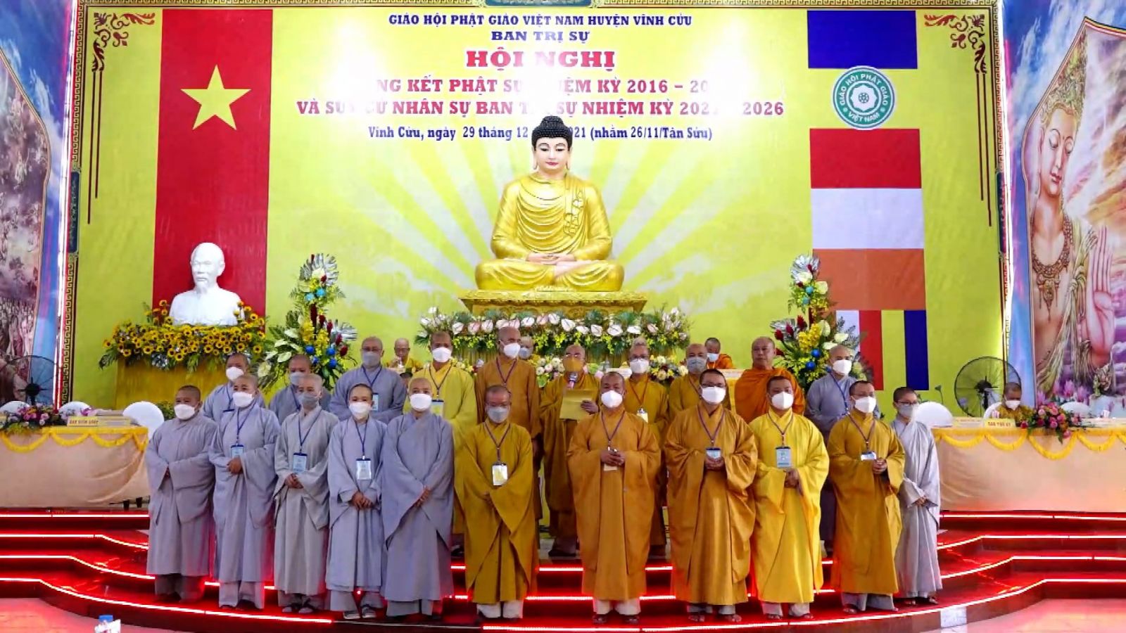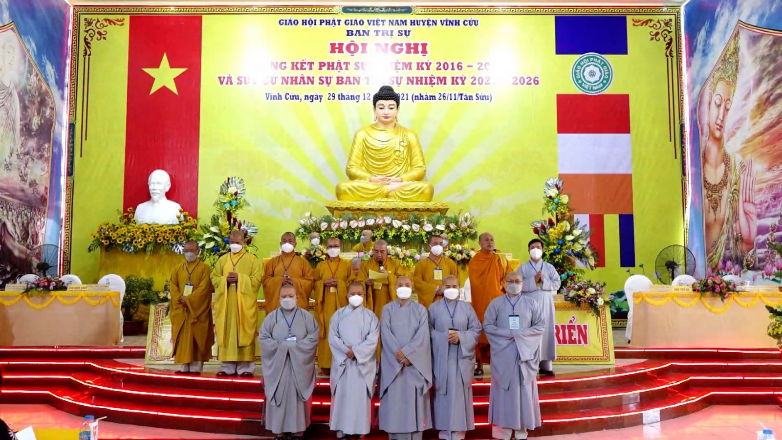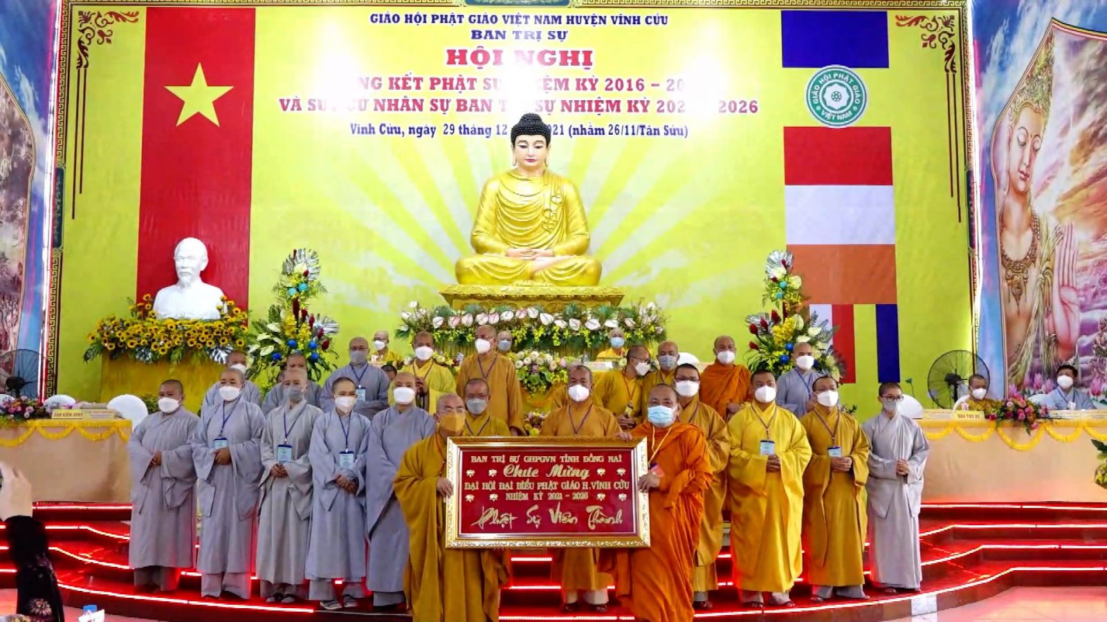 sau bài tóm tắt công tác phật sự nhiệm kỳ VIII (2016-2021) Ban Trị sự GHPGVN huyện Vĩnh Cửu đã tuyên bố mãn nhiệm, trong đó đã tri ân chư tôn đức Tăng Ni huyện nhà trong nhiệm kỳ qua đã đóng góp tích cực trong công tác phát triển của giáo hội phật giáo huyện.