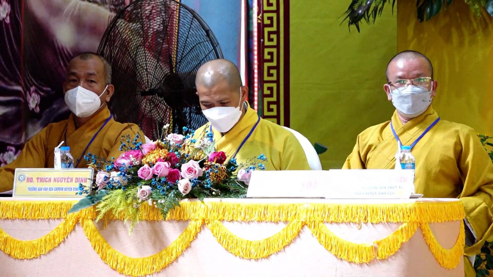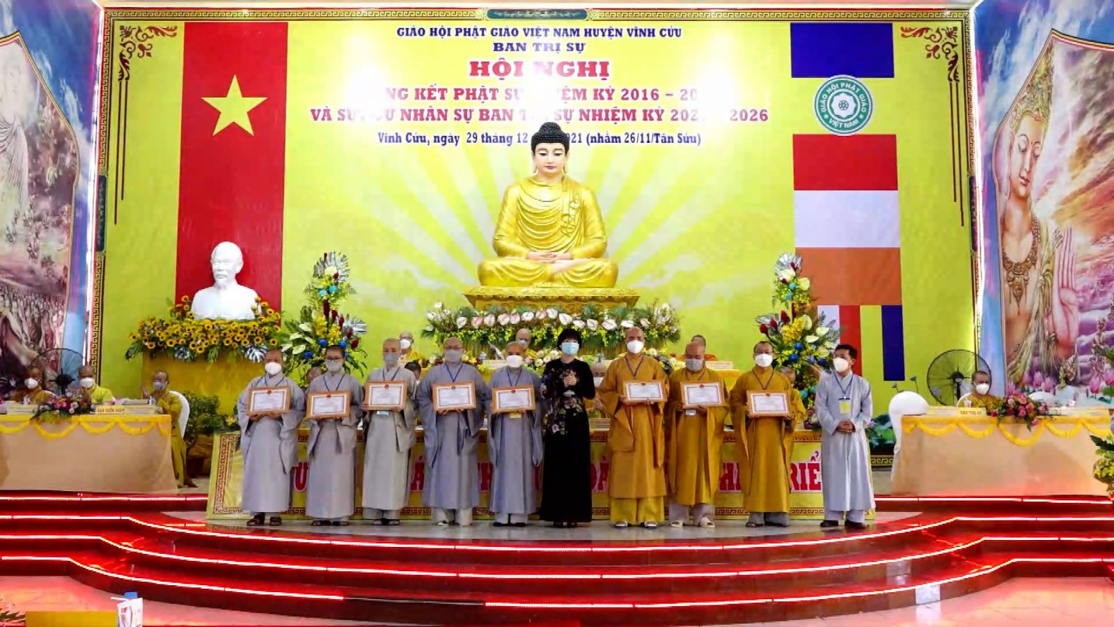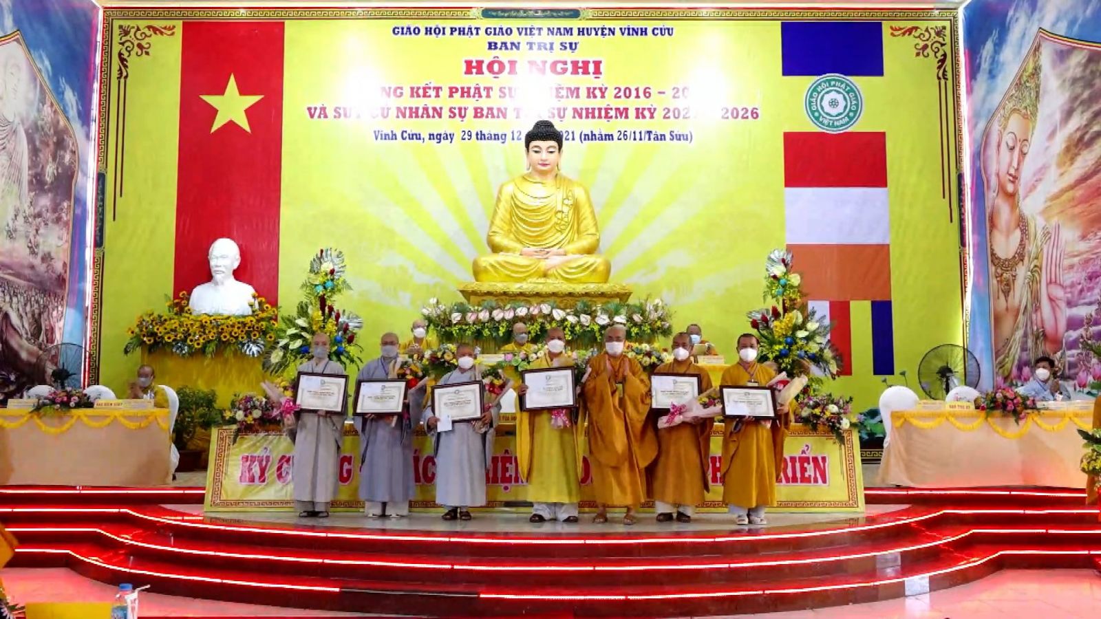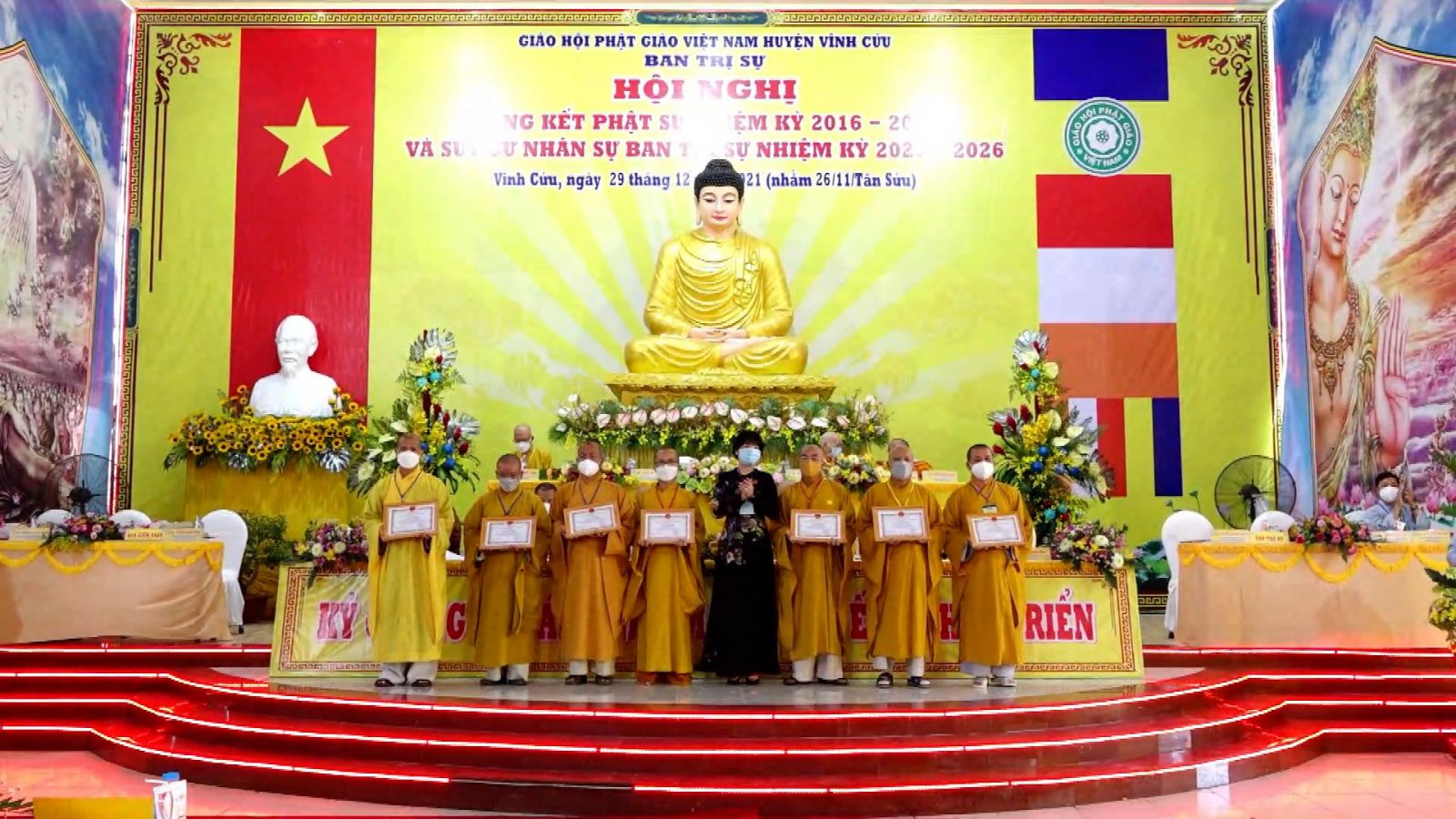 sau bài tóm tắt công tác phật sự nhiệm kỳ VIII (2016-2021) Ban Trị sự GHPGVN huyện Vĩnh Cửu đã tuyên bố mãn nhiệm, trong đó đã tri ân chư tôn đức Tăng Ni huyện nhà trong nhiệm kỳ qua đã đóng góp tích cực trong công tác phát triển của giáo hội phật giáo huyện.