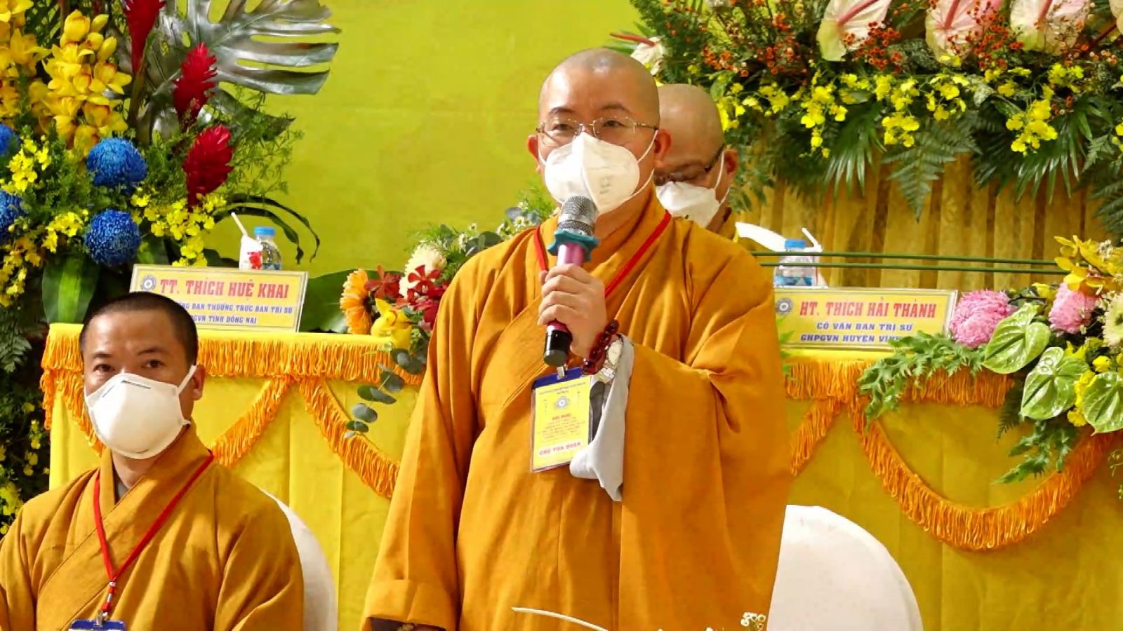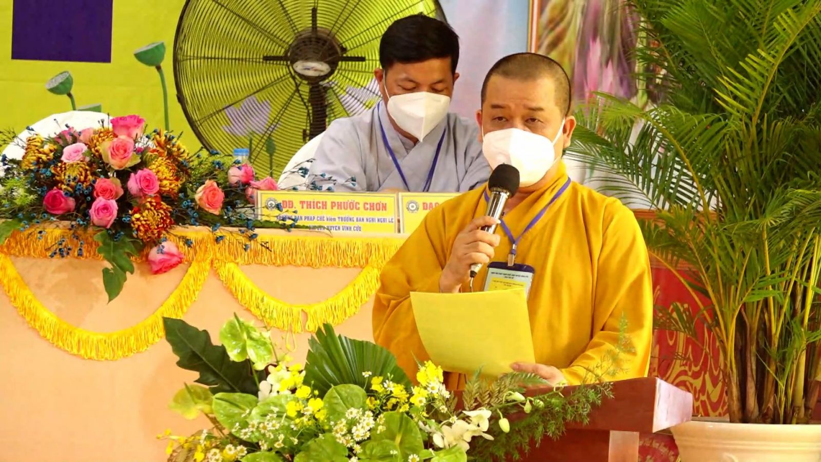 Để thực hiện truyền thống tốt đẹp và tiếp tục phát huy những thành quả đã đạt được để xiển dương chánh pháp, phát triển Giáo hội để phụng đạo xây đời, lợi lạc quần sanh. Kỷ cương, trách nhiệm, đoàn kết, phát triển. ĐĐ. Thích Thiện Thuận đã đọc danh sách dự kiến nhân sự cho nhiệm kỳ IX (2021 - 2026) và phát biểu nhận nhiệm vụ tiếp tục thực hiện chỉ đạo của BTS GHPGVN tỉnh Đồng Nai cho nhiệm kỳ mới phát triển tốt đẹp hơn nữa cho BTS PG huyện Vĩnh Cửu.