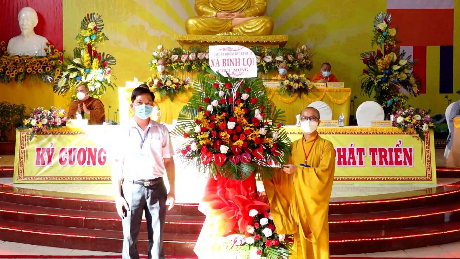 Chúc mừng Tân Ban Trị sự vừa ra mắt, đại diện BTS GHPGVN tỉnh và các cấp lãnh đạo đã trao tặng khánh vàng và hoa chúc mừng Tân Ban Trị sự và chúc mừng hội nghị thành công tốt đẹp.