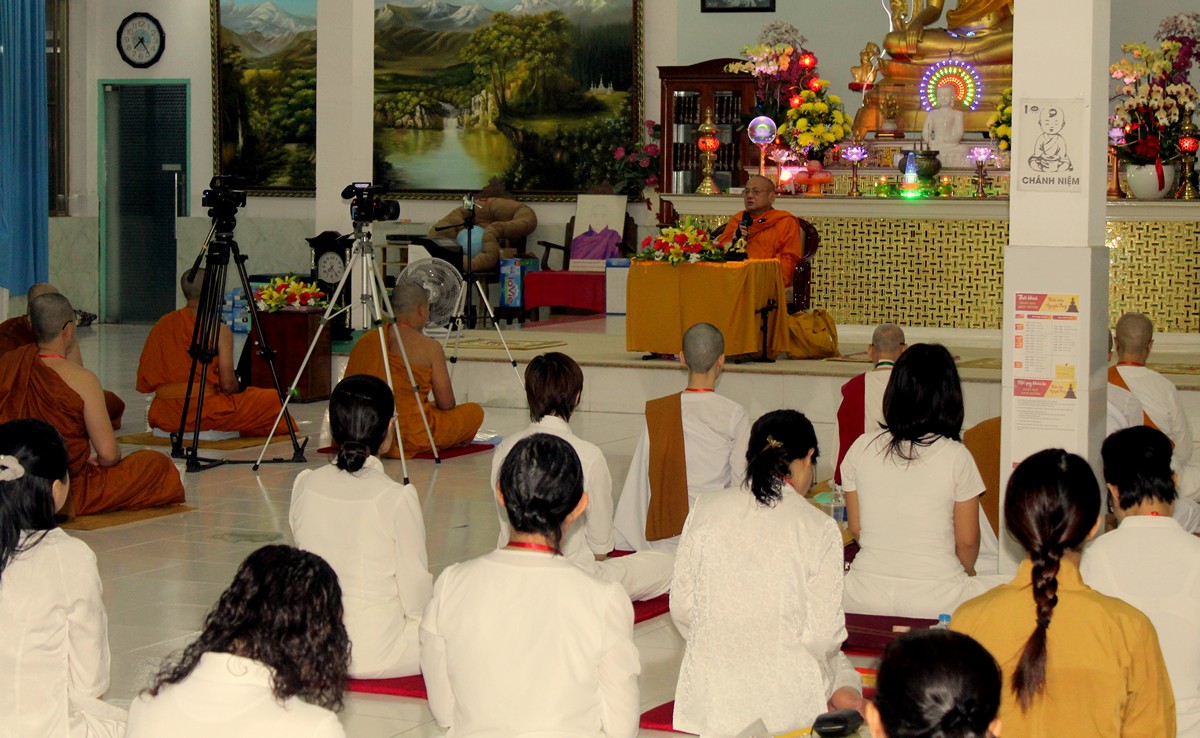 Thời gian khóa tu xuất gia gieo duyên 7 ngày, những ai có thắng duyên mặc Y ca sa, áo tu nữ, HT mong rằng Phật tử cư sĩ luôn hộ trì đắc lực cho Phật pháp. Sau khi hoàn mãn khóa tu, trở về nhà tiếp tục gieo duyên chánh niệm xứ, chú ý vào hơi thở, tăng trưởng tâm từ, đặc biệt lúc cận kề cái chết… Hòa thượng có lời khuyên dưới hình thức XGGD, hàng tại gia phải tiếp tục học Phật pháp, tâm mát mẻ an trú, hạnh phúc trong hiện tại. Hãy tự thắp đuốc lên mà đi, tự xây hải đảo, hạnh phúc trong chính tầm tay của mình, vì ta chính là chủ nhân của nghiệp.