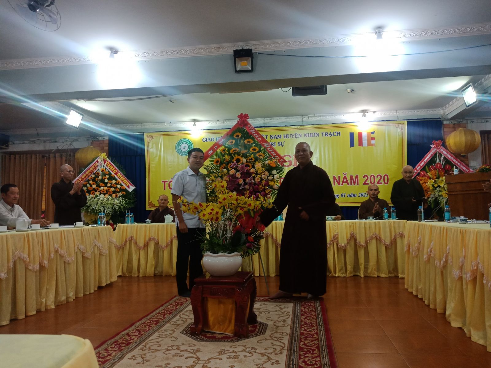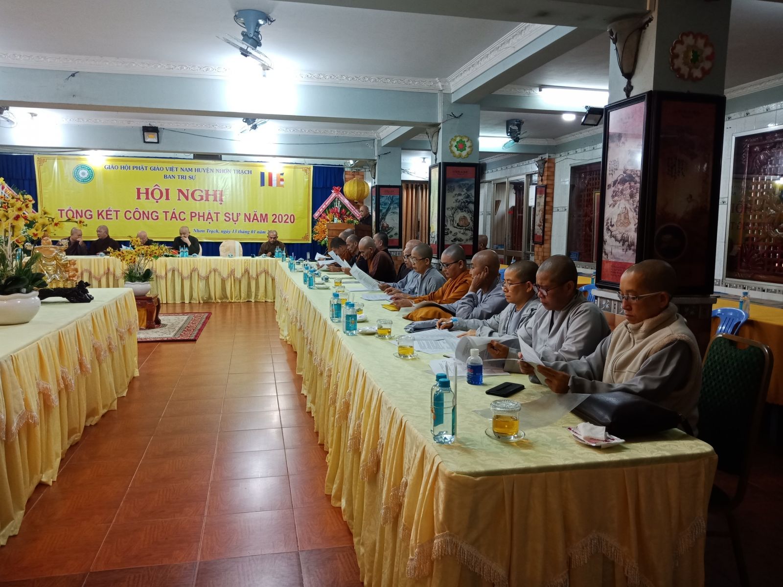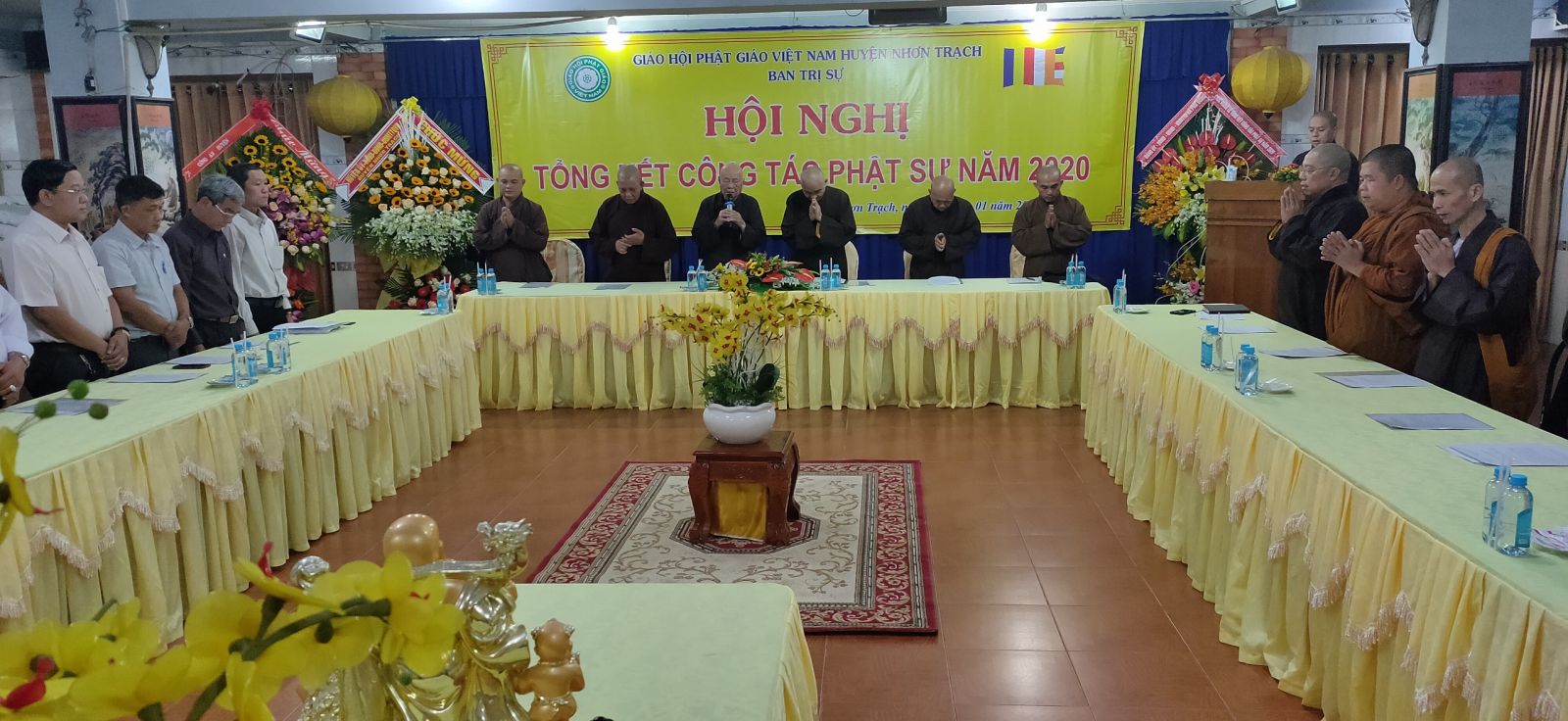 Chứng minh và chủ trì hội nghị có: TT. Thích Thiện Bửu – Cố vấn BTS GHPGVN huyện Nhơn trạch; TT. Thích Thiện Pháp – Trưởng BTS GHPGVN huyện Nhơn trạch, chủ trì Hội nghị; TT. Thích Thiện Phát – Phó BTS kiêm Trưởng ban Nghi lễ GHPGVN huyện Nhơn trạch; ĐĐ. Thích Thông Nhàn – Phó BTS kiêm trưởng ban Tăng sự GHPGVN huyện Nhơn trạch; ĐĐ.Thích Chơn Khương – Chánh thư ký BTS GHPGVN huyện Nhơn trạch; ĐĐ.Thích Minh Hạnh – Chánh văn phòng BTS GHPGVN huyện Nhơn trạch; Ni trưởng Thích Như Hiền – Trụ trì Chùa Phước Thanh cùng chư tôn Đức Tăng, Ni trong Ban Trị sự huyện, chư tôn Đức Trụ trì các Tự viện đồng tham dự.
