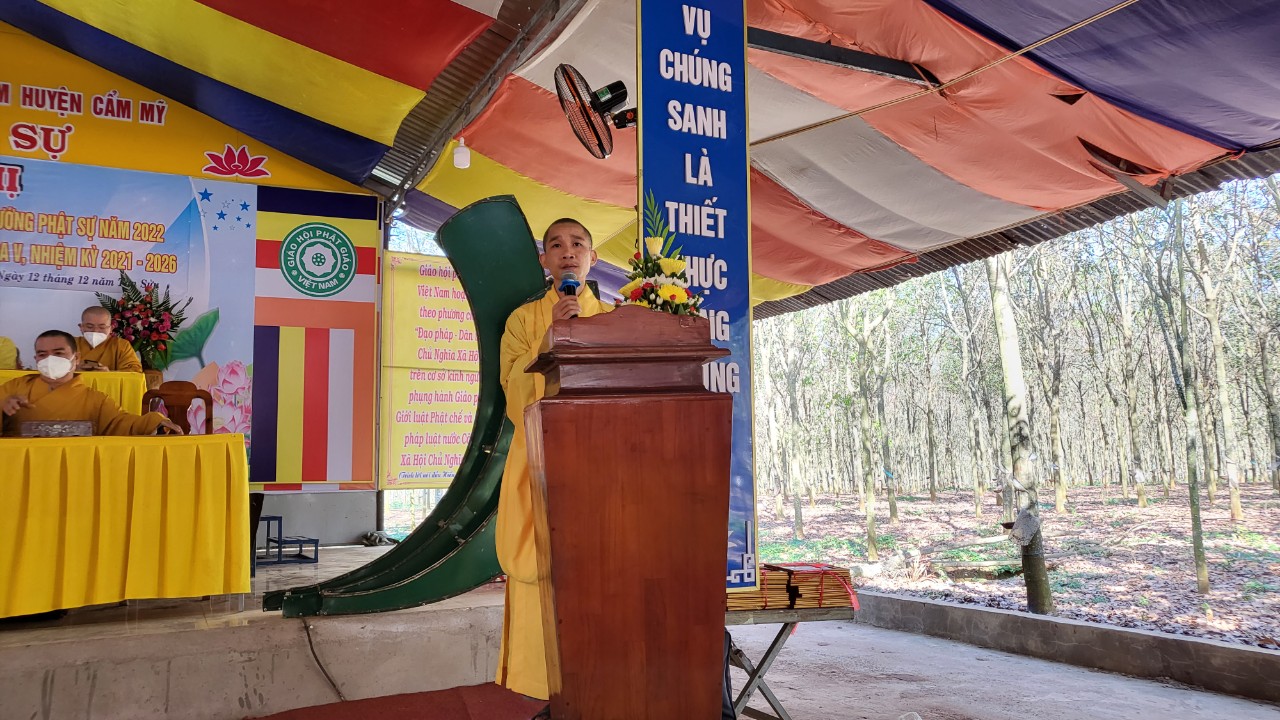 Ban đạo từ, Hòa thượng Thích Bửu Chánh đã tán dương công đức tập thể Ban Trị sự Phật giáo huyện Cẩm Mỹ. Tuy số lượng cơ sở tự viện cũng như Tăng Ni rất ít nhưng công tác từ thiện, an sinh xã hội trong năm qua đạt những thành quả đáng biểu dương. Hòa thượng kỳ vọng, các thành viên Ban Trị sự tiếp tục phát huy tinh thần đoàn kết, hòa hợp để cùng nhau phát triển Phật giáo huyện nhà.