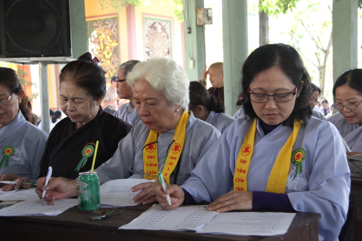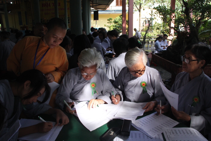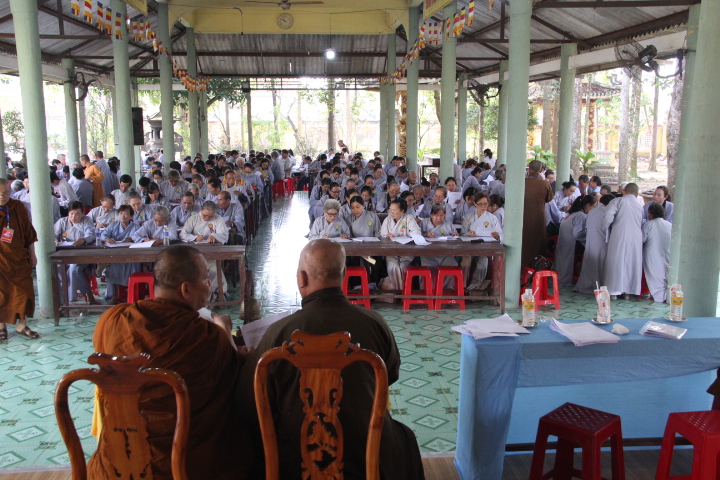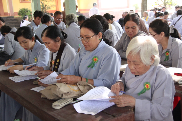 Từ 7 giờ sáng, từng đoàn Phật tử đã vân tập về địa điểm dự thi với phong thái tự tin, hoan hỷ tiến hành hoàn thành thủ tục ghi danh và nhận phù hiệu, bút viết, được BTC sắp xếp vào vị trí ổn định. Đại đức Thích Nhuận Đức – Phó BTS, Phó ban tổ chức tuyên bố lý do hội thi nhằm đánh giá hiệu quả sau một quá trình triển khai các lớp giáo lý cơ bản tại các tự viện thời gian qua, khuyến khích Phật tử tu học giáo pháp của nhà Phật.