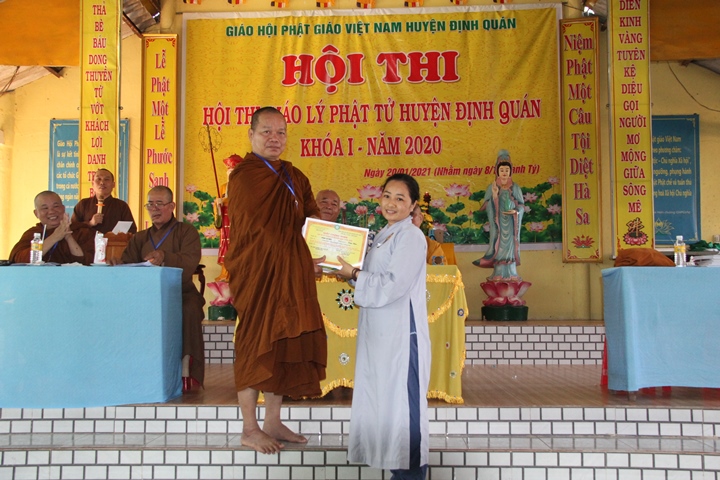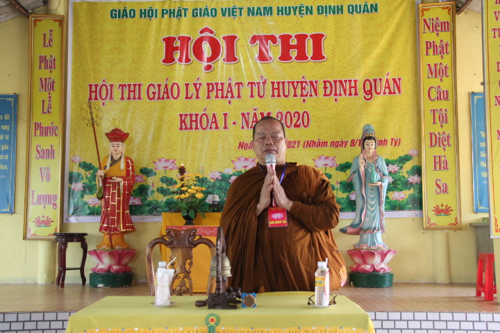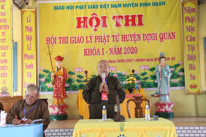 Hội thi diễn ra với sự chứng minh của Hoà thượng Thích Quảng Trí – Cố vấn BTS GHPGVN huyện Định Quán; Thượng toạ Thích Đồng Ngạn – Trưởng BTS GHPGVN huyện Định Quán, Trưởng ban tổ chức; Hội đồng khảo thí là chư tôn Đức Tăng, Ni thuộc BTS GHPGVN huyện Định Quán.