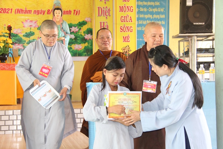 Ban tổ chức đã tuyên dương và trao thưởng Giải Nhất cho Phật tử Từ Khánh Linh thuộc Đạo tràng Chùa Linh Quang; Giải Nhì cho Phật tử Diệu Công thuộc Đạo tràng Chùa Phước Quang, Giải Ba cho Phật tử Diệu Hoà thuộc Đạo tràng Chùa Trúc Lâm và 2 Giải Tư cho Phật tử Chúc Huyền thuộc Đảo tràng Chùa Pháp Quang và Phật tử Quảng Tiến thuộc Đạo tràng Hiền Lương; Giải Người lớn tuổi nhất cho cụ bà Chúc Viên - Nguyễn Thị Tạo thuộc Đạo tràng Chùa Pháp Quang, cụ đã trên 80 tuổi, Giải Thí sinh nhỏ tuổi nhất cho Phật tử Huệ Nhẫn thuộc Đạo tràng Chùa Long Ẩn.