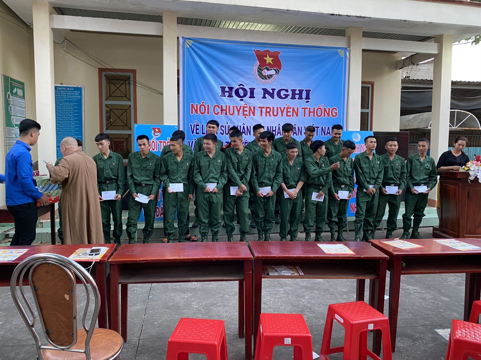 Tại buổi lễ, Đại Đức Thích Nguyên Thông đã gửi lời chúc sức khỏe và lời động viên ân cần tới các thanh niên trước khi lên đường nhập ngũ. Đồng thời, trao tặng 63 phần quà cho thanh niên của 3 xã (Phước Thái, Phước Bình, Tân Hiệp). Mỗi phần quà trị giá 400.000 đồng. Xuất quà tuy nhỏ nhưng đã góp phần nói lên tinh thần tôn giáo luôn luôn đồng hành, đoàn kết cùng Chủ nghĩa xã hội và dân tộc.