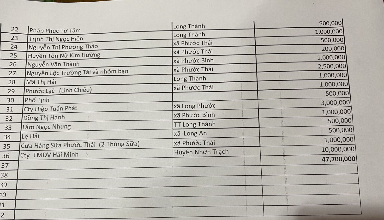 Danh sách quý phật tử và mạnh thường quân phát âm ủng hộ cho anh Nguyễn Minh Dự