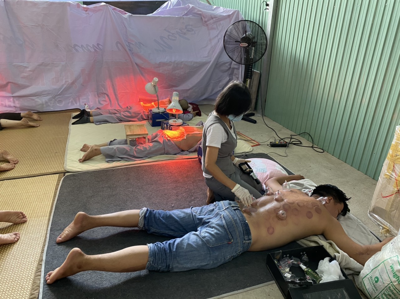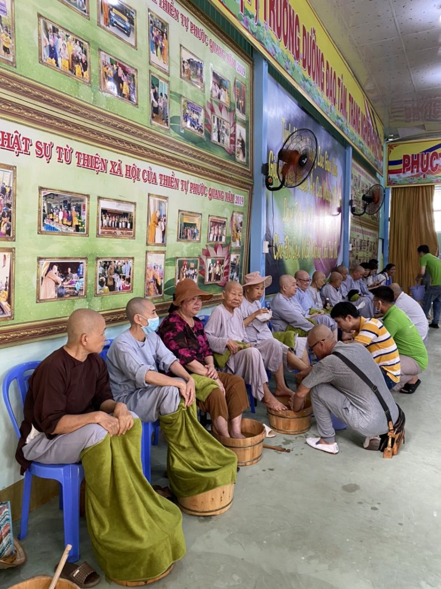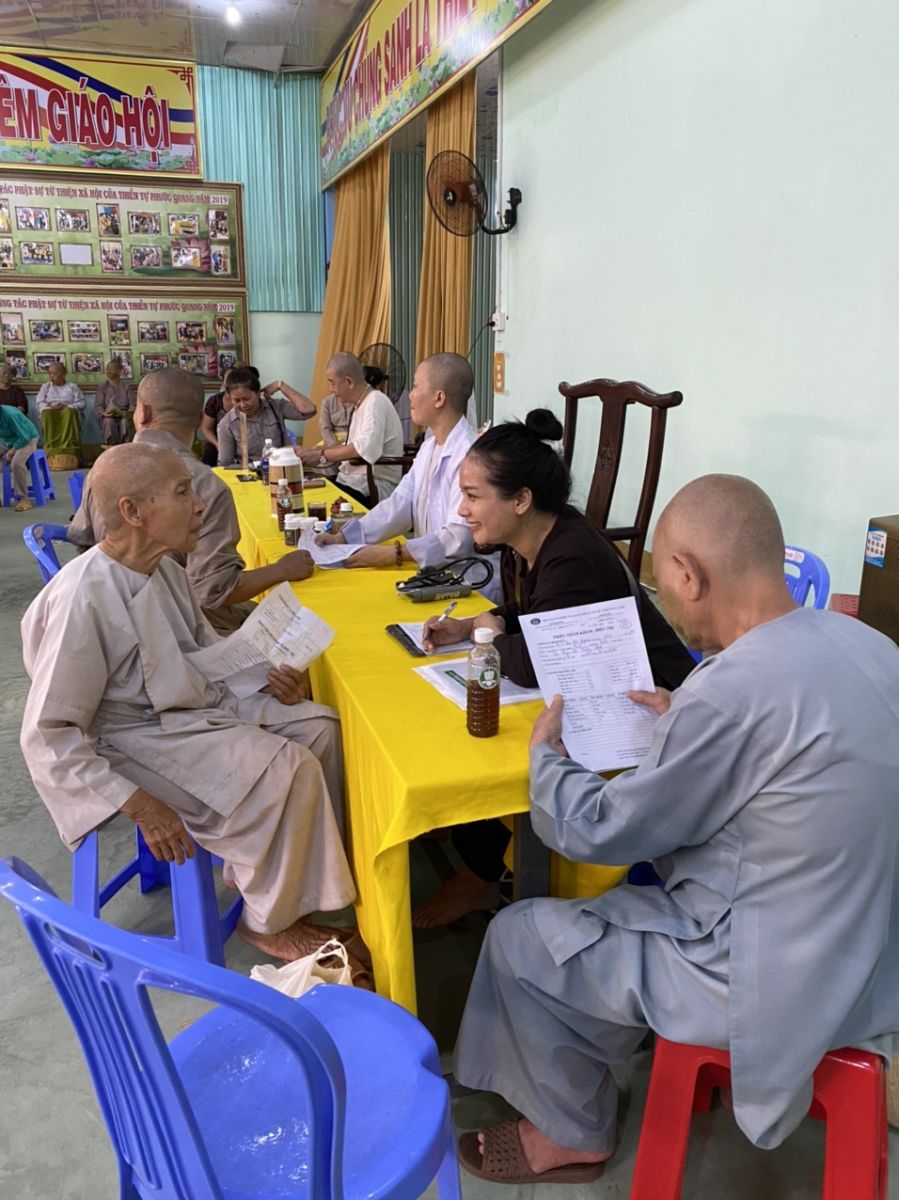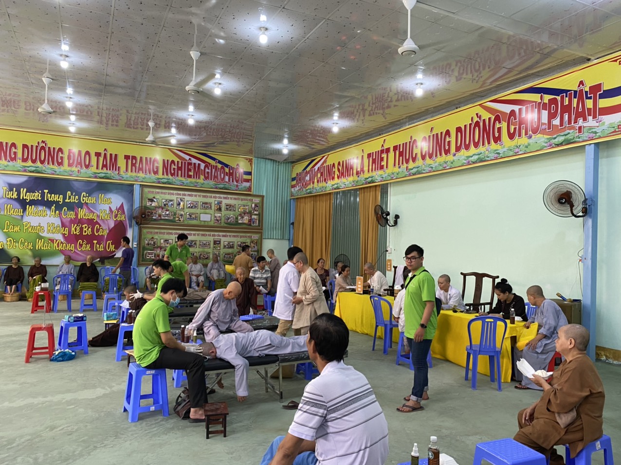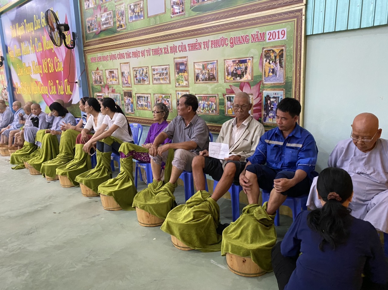 Cụ thể, đoàn từ thiện đã tham gia phục vụ thuốc ngâm chân, châm cứu, day ấn huyệt, đắp thuốc cho Chư tôn Đức Tăng, Ni khu vực Ngoại viện Thường chiếu, bà con sinh sống tại địa bàn huyện Long Thành. Sau 2 ngày thăm khám, đoàn đã hỗ trợ và phục vụ trên 700 bệnh nhân.