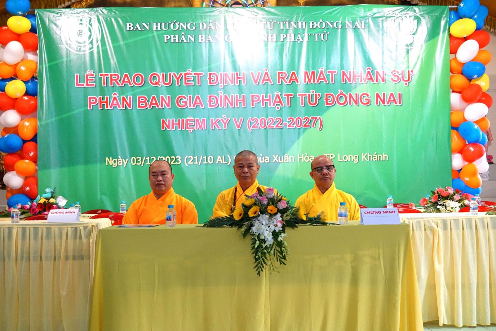 Đối với Tổ chức Phân ban Gia đình Phật tử tỉnh Đồng Nai, Thượng tọa Trưởng ban, cố vấn Giáo hạnh Phân ban Gia đình Phật tử tỉnh đã phát biểu nhắc lại quá trình lịch sử phát triển và mục đích cao cả của Gia đình Phật tử Việt Nam. Qua đó, chúng ta cần lưu giữ những cái cũ, cái có giá trị cốt lõi để đạt được những mục đích của tổ chức, nhưng trong thời kỳ hiện nay chúng ta cũng cần nhìn ra những cái mới, cái hay, những điều phù hợp với thực tiễn để phát triển. Gia đình Phật tử không nhận ra được những giá trị tất yếu đó thì sẽ trở thành một ngôi “’nhà cổ” chỉ có giá trị “lịch sử” nhưng mất đi sức sống và sự nhập thế của một tổ chức vốn là một con đường, một mô hình nhập thế tích cực từ thời kỳ chấn hưng Phật giáo của những năm đầu thế kỷ 20. Trong điều hành tổ chức Gia đình Phật tử, việc điều hành, quản lý là mang tính giáo dục nó cũng đồng nghĩa với giáo dục thân giáo, chúng ta không xem việc điều hành quản lý là một nguyên tắc hành chính cứng nhắc, bất di bất dịch mà phải khế lý, khế thời để cùng nhau xây dựng và phát triển.
