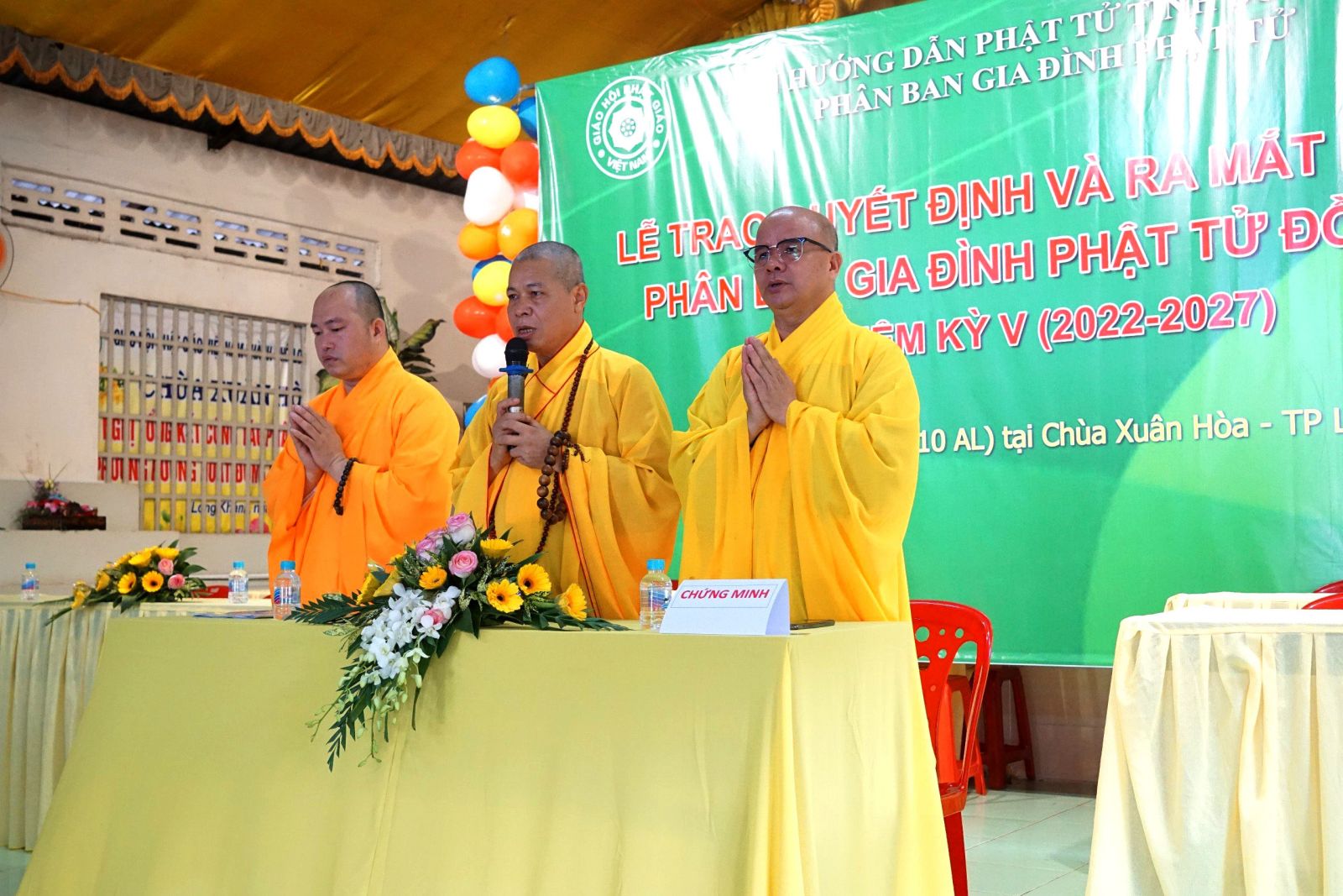 Quang lâm chứng minh và ban đạo từ có Thượng tọa Đạo hiệu Thích Huệ Tánh - Trưởng Ban Hướng dẫn Phật tử GHPGVN tỉnh Đồng Nai, Trưởng BTS GHPGVN Tp. Long Khánh, Cố vấn Giáo hạnh Phân ban Gia đình Phật tử tỉnh Đồng Nai; Đại đức Thích Quảng Vinh - Phó Ban Hướng dẫn Phật tử tỉnh Đồng Nai, kiêm Chánh Thư ký; Đại đức Thích Thiện Thu - Phó Ban Hướng dẫn Phật tử tỉnh, trưởng Phân ban Phật tử Hải ngoại, kiêm Trưởng Ban Hướng dẫn Phật tử huyện Cẩm Mỹ; Đại đức Thích Huệ Trí - Ủy viên Ban Hướng dẫn Phật tử tỉnh, Trưởng Ban Hướng dẫn Phật tử huyện Định Quán.
