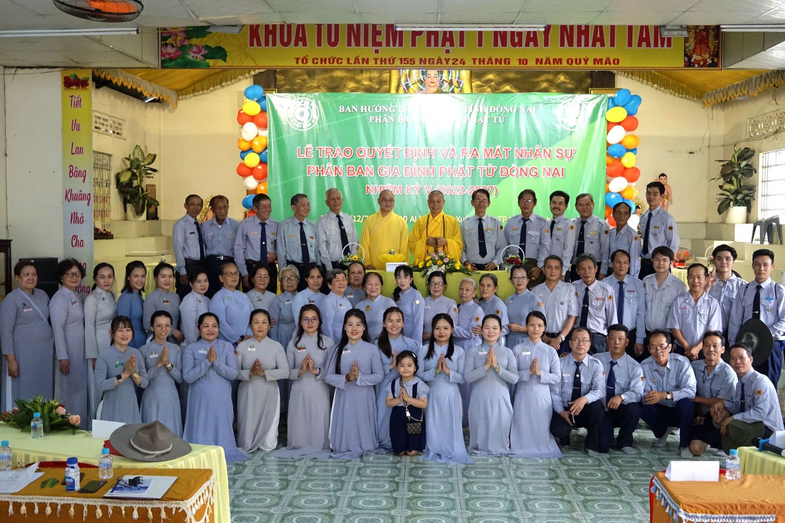 Ban Hướng dẫn Phân ban Gia đình Phật tử tỉnh Đồng Nai nhiệm kỳ 2022 – 2027 được chuẩn y theo Quyết định số 590/QĐ-BTS của Thường trực Ban Trị sự Giáo hội Phật giáo Việt Nam tỉnh Đồng Nai ngày 29/09/2023, theo đó toàn Ban Hướng dẫn có 21 Huynh trưởng đảm nhận 22 chức vụ, trong đó có một vị trí kiêm nhiệm. Nhiệm kỳ này Phân ban Gia đình Phật tử tỉnh Đồng Nai đã cung thỉnh nhị vị Hòa thượng Thích Bửu Chánh - Ủy viên Thư ký, Phó trưởng Ban Thường trực Ban Văn hóa Trung ương, Phó trưởng Ban Thường trực Ban Trị sự Giáo hội Phật giáo Việt Nam tình Đồng Nai và Thượng tọa Thích Huệ Tánh - Ủy viên Ban Hướng dẫn phật tử Trung ương, Trưởng Ban Hướng dẫn Phật tử tỉnh Đồng Nai làm cố vấn Giáo hạnh, đồng thời mời Cư sĩ Lê Thị Giàu – Chủ tịch HĐQT Công ty cổ phần Thực phẩm Bình Tây làm Trưởng Ban Bảo trợ.