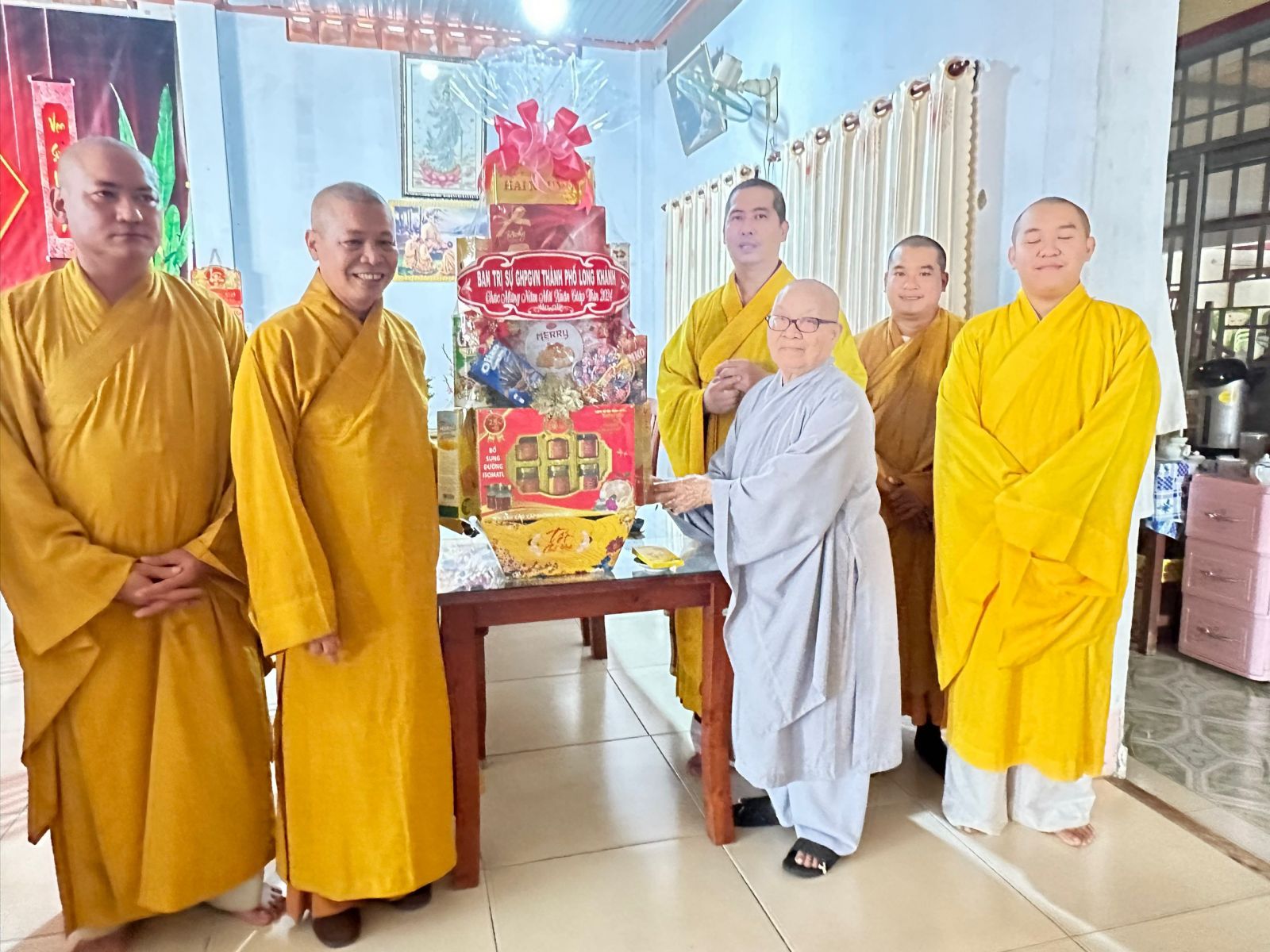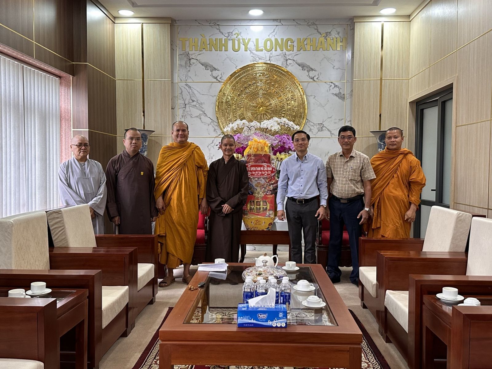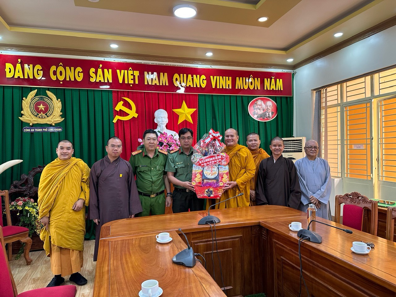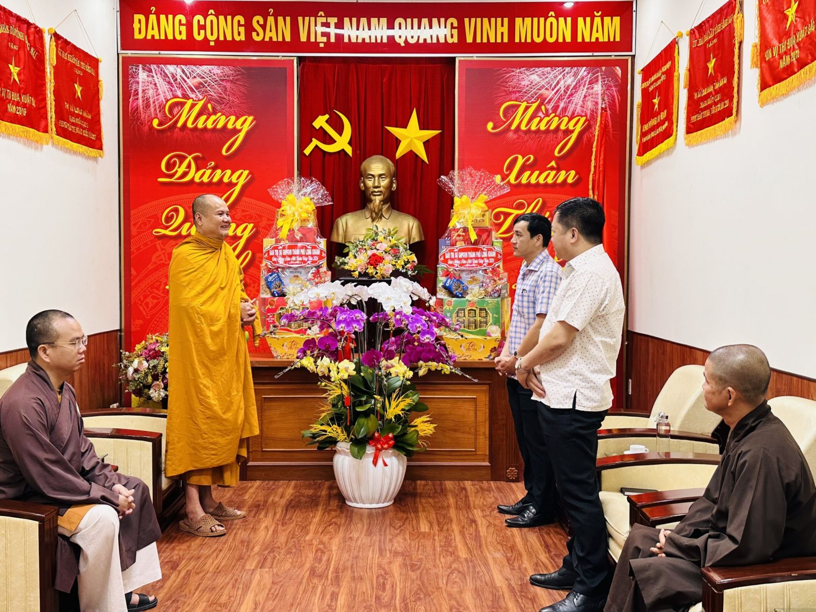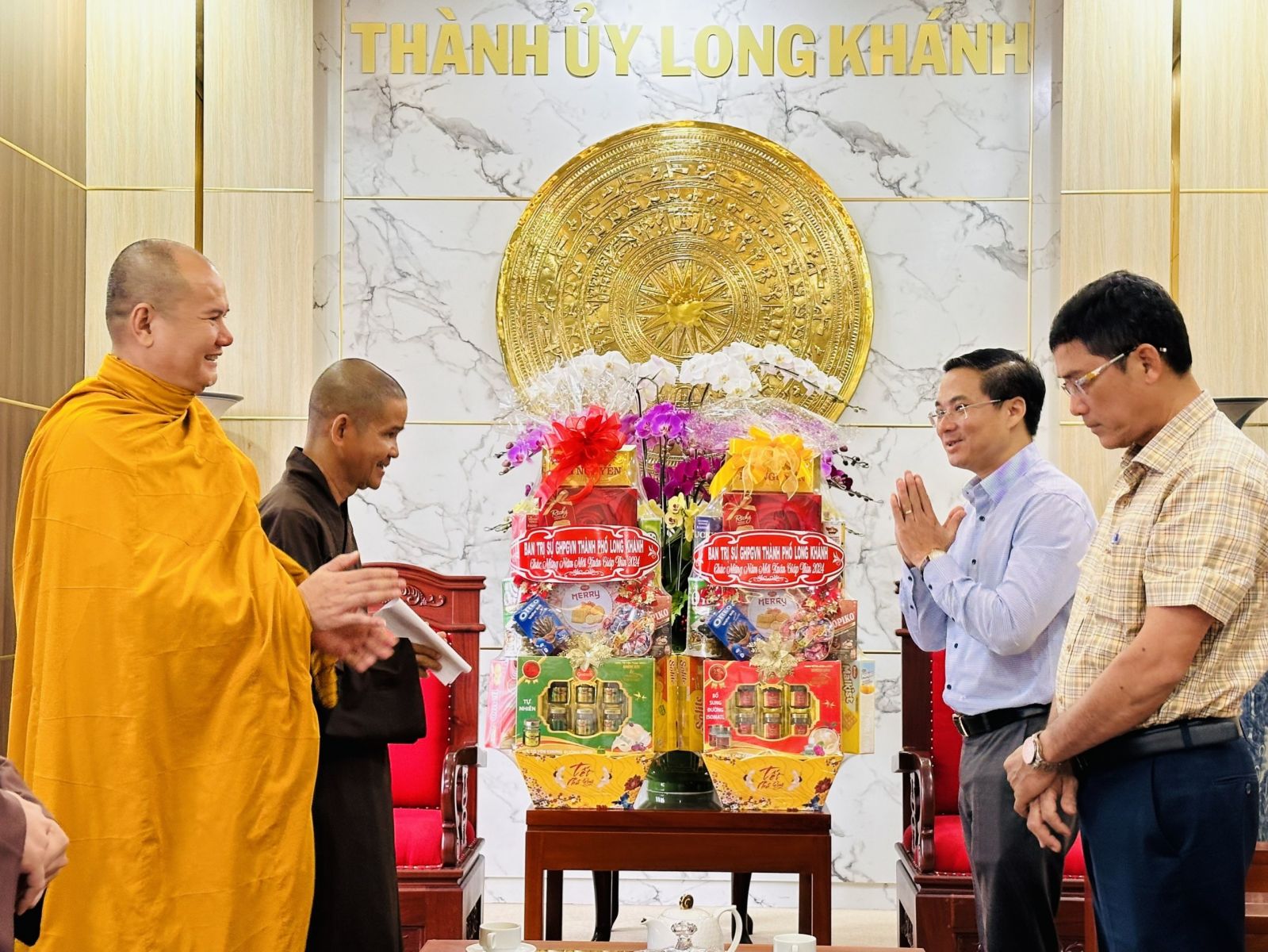 Chư tôn đức chia làm 2 đoàn. Đoàn 1: Ban Trị sự GHPGVN Tp. Long Khánh đã đến trụ sở Thành ủy Thành Phố để chúc Tết Thành ủy - HĐND - UBND - UBMTTQVN, và Công an Tp. Long Khánh. Phái đoàn đi do Đại Đức Thích Giác Đăng - phó ban thường trực làm trưởng đoàn, cùng chư tôn đức trong ban thường trực.