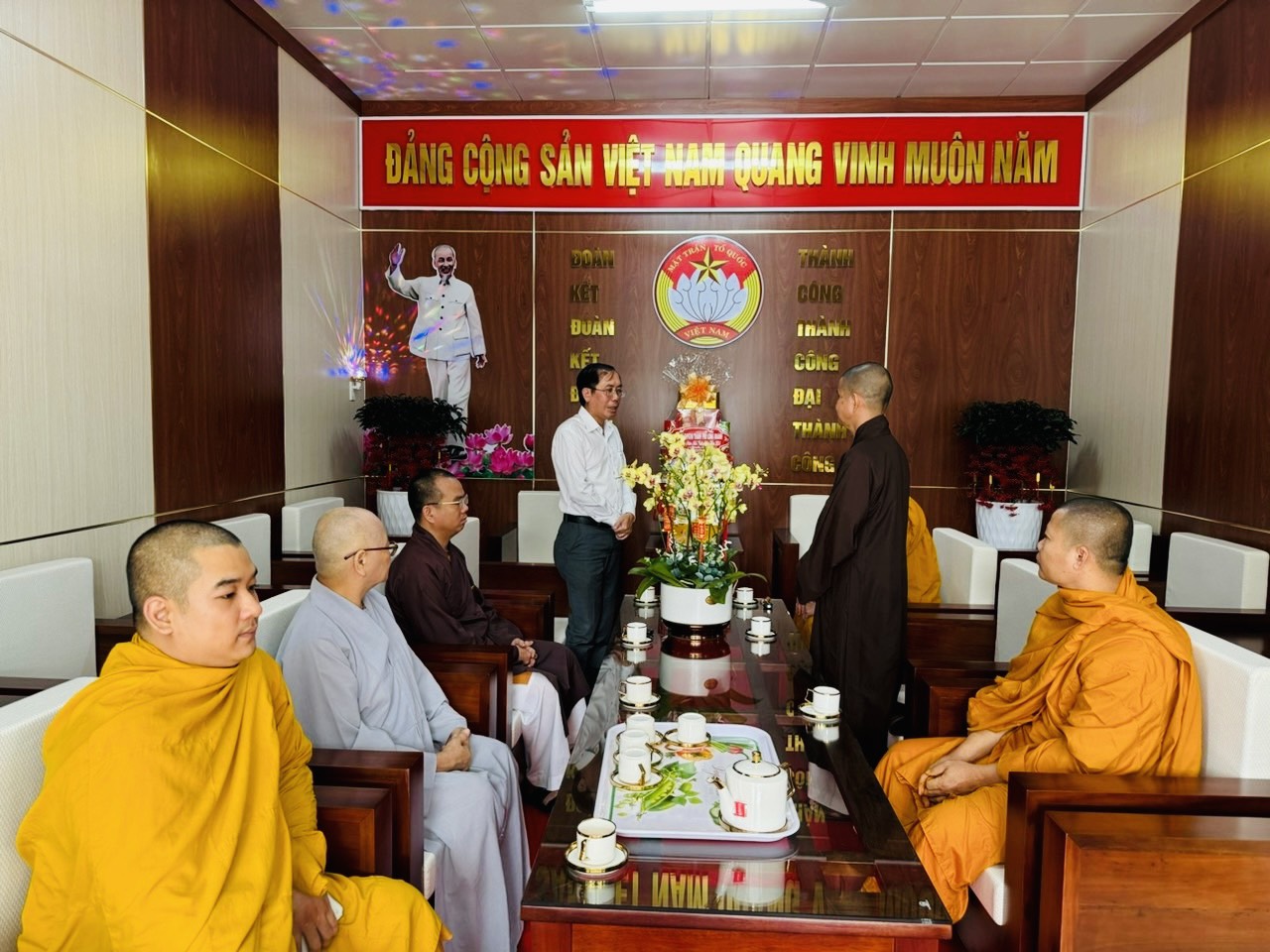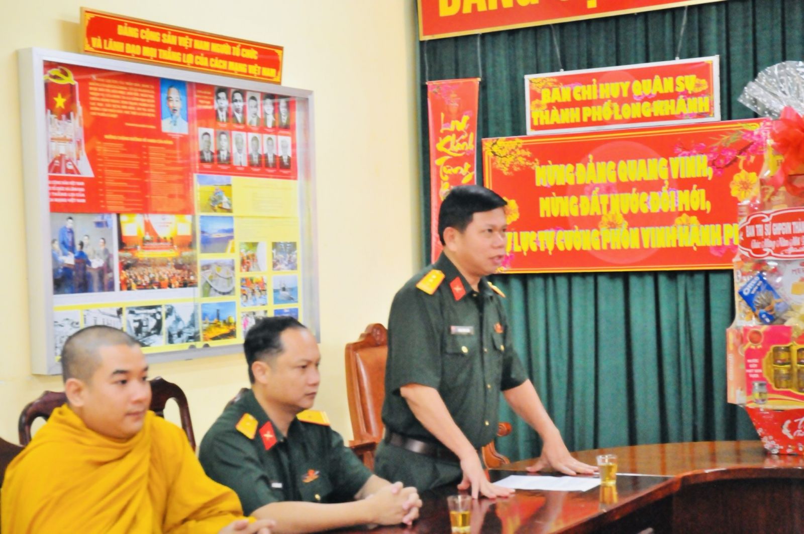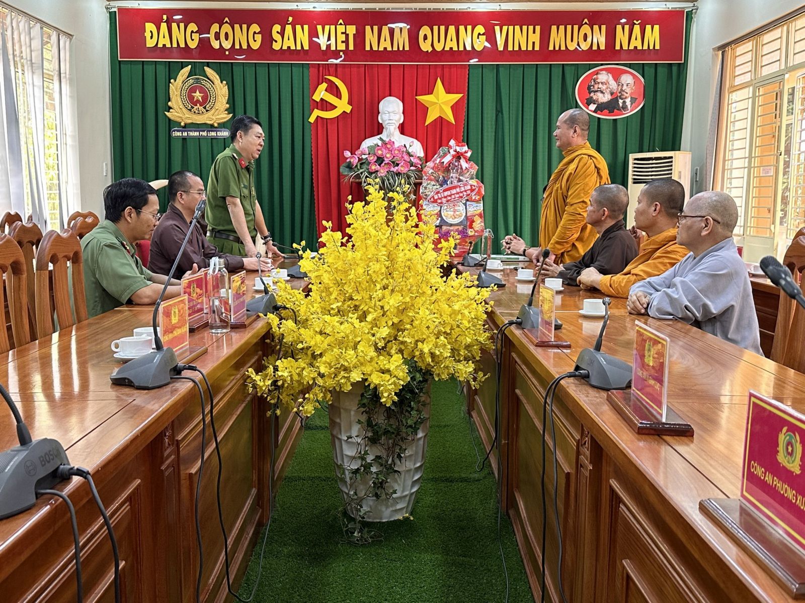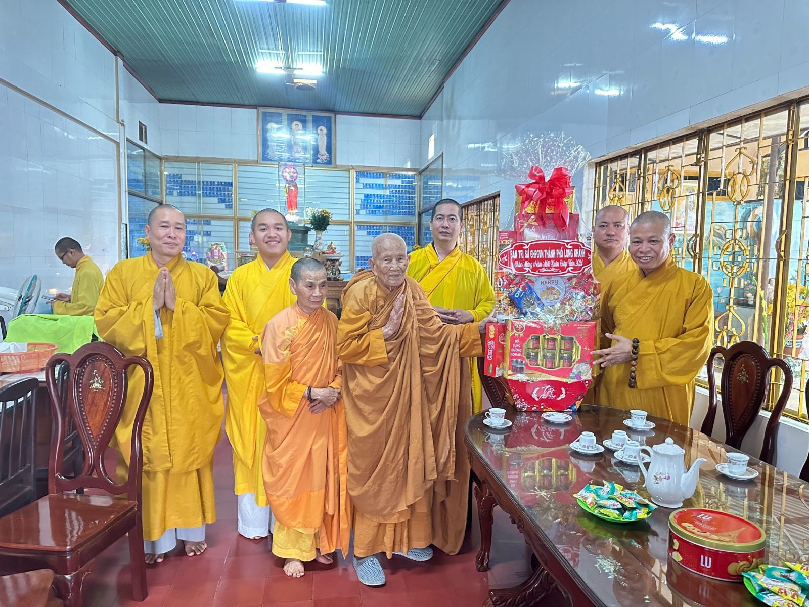 Chư tôn đức chia làm 2 đoàn. Đoàn 1: Ban Trị sự GHPGVN Tp. Long Khánh đã đến trụ sở Thành ủy Thành Phố để chúc Tết Thành ủy - HĐND - UBND - UBMTTQVN, và Công an Tp. Long Khánh. Phái đoàn đi do Đại Đức Thích Giác Đăng - phó ban thường trực làm trưởng đoàn, cùng chư tôn đức trong ban thường trực.